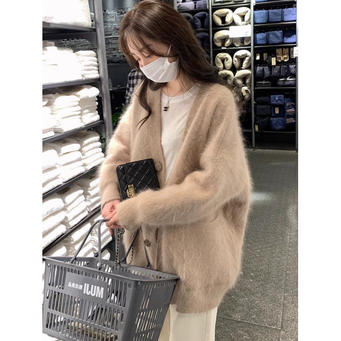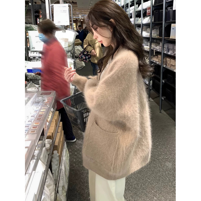 白色水貂毛開衫毛衣外套女秋冬季2025新款溫柔韓系慵嬾中長款針織