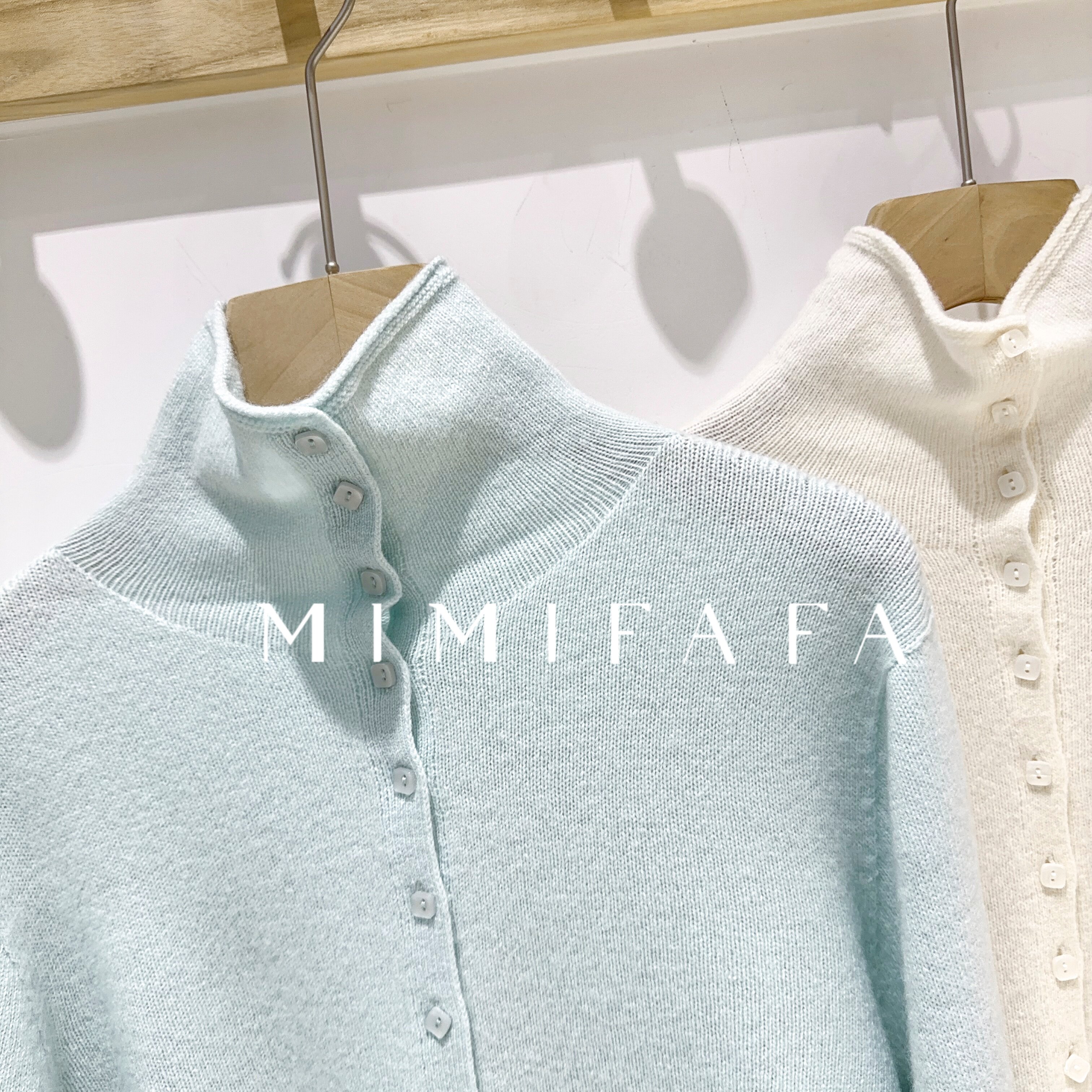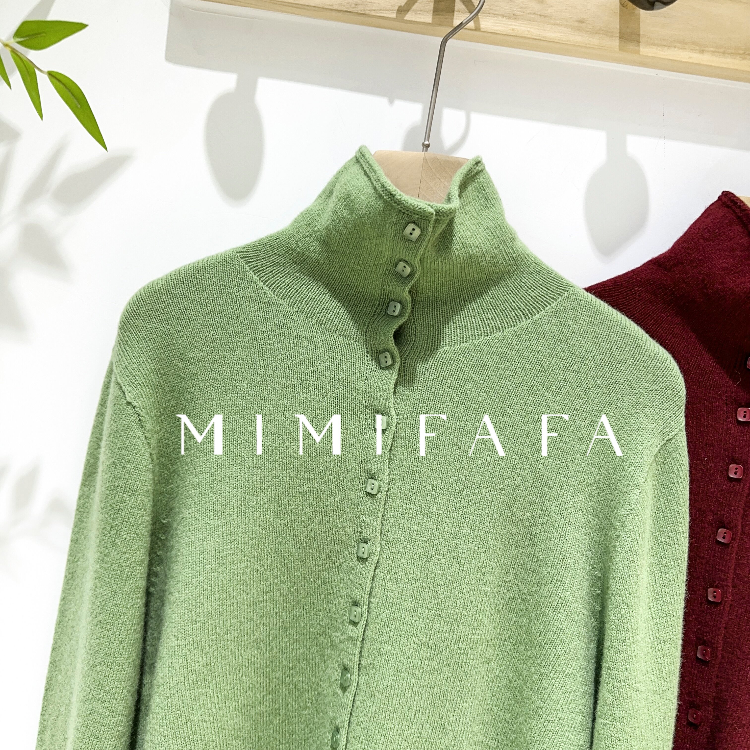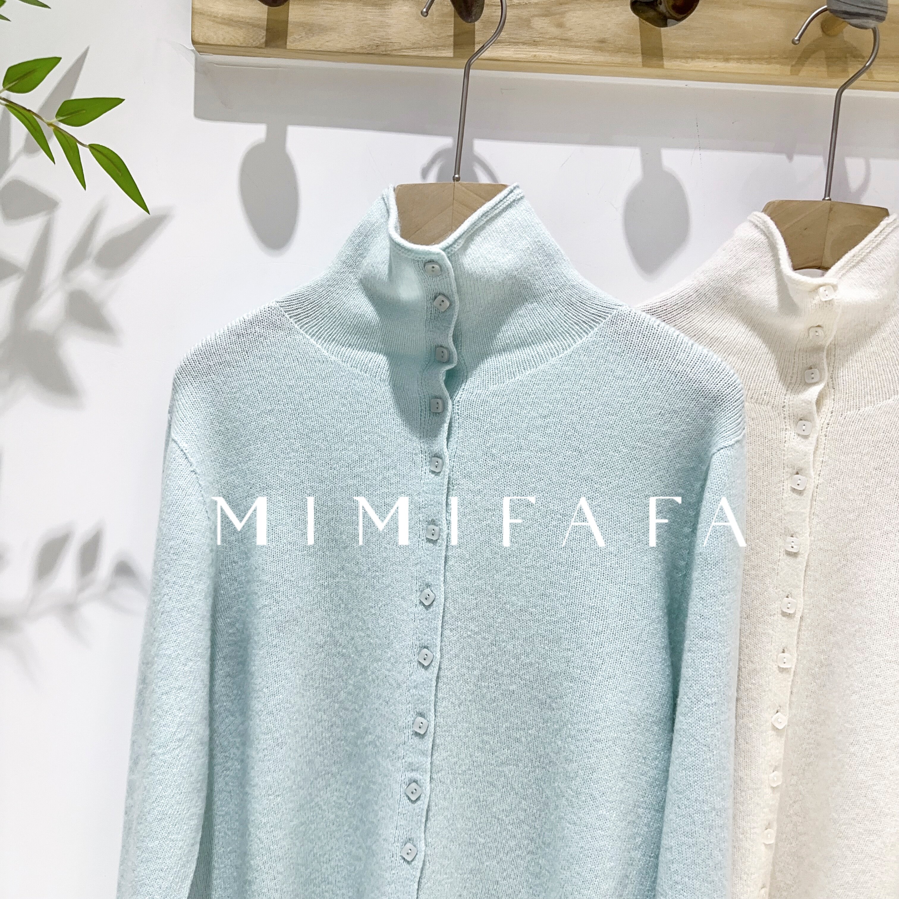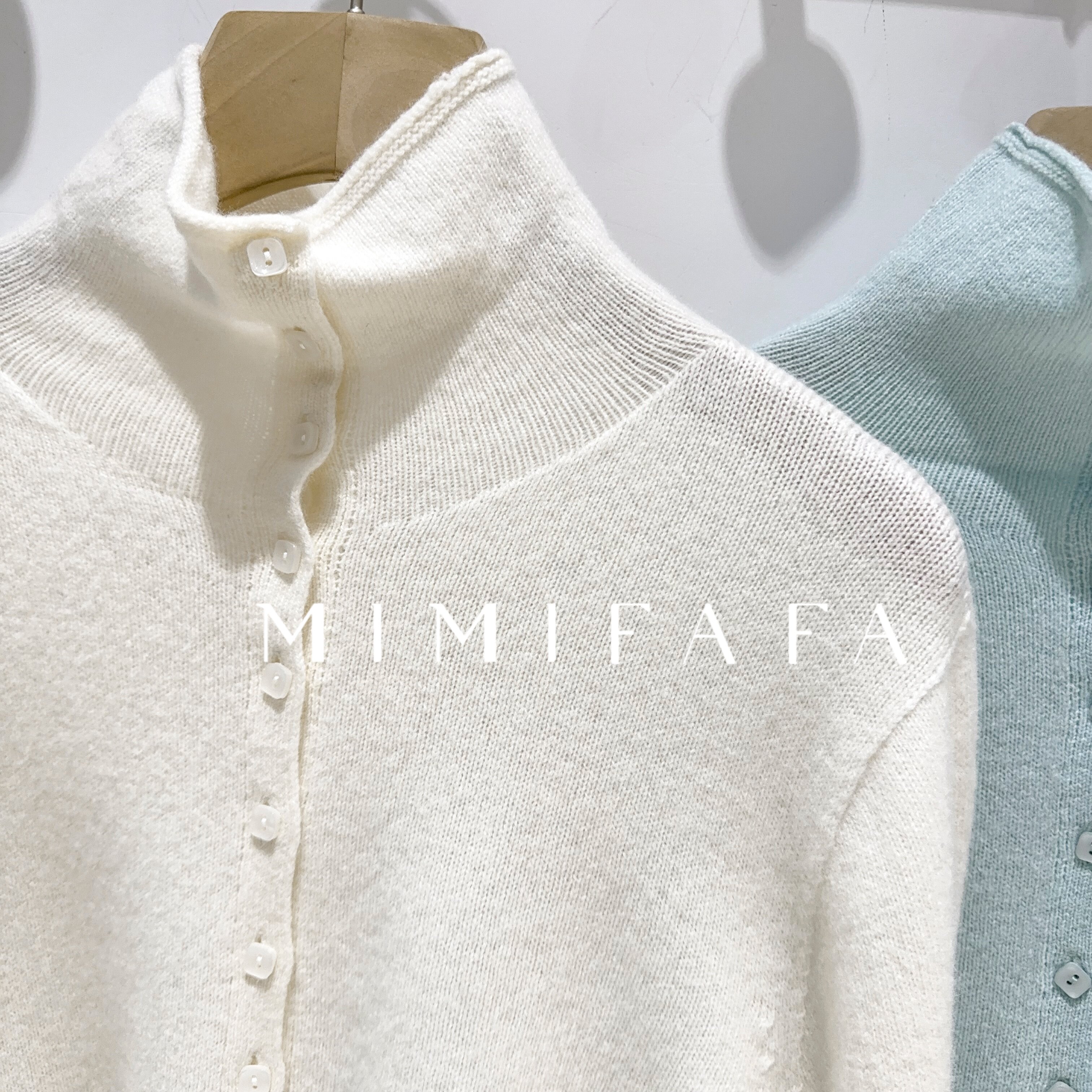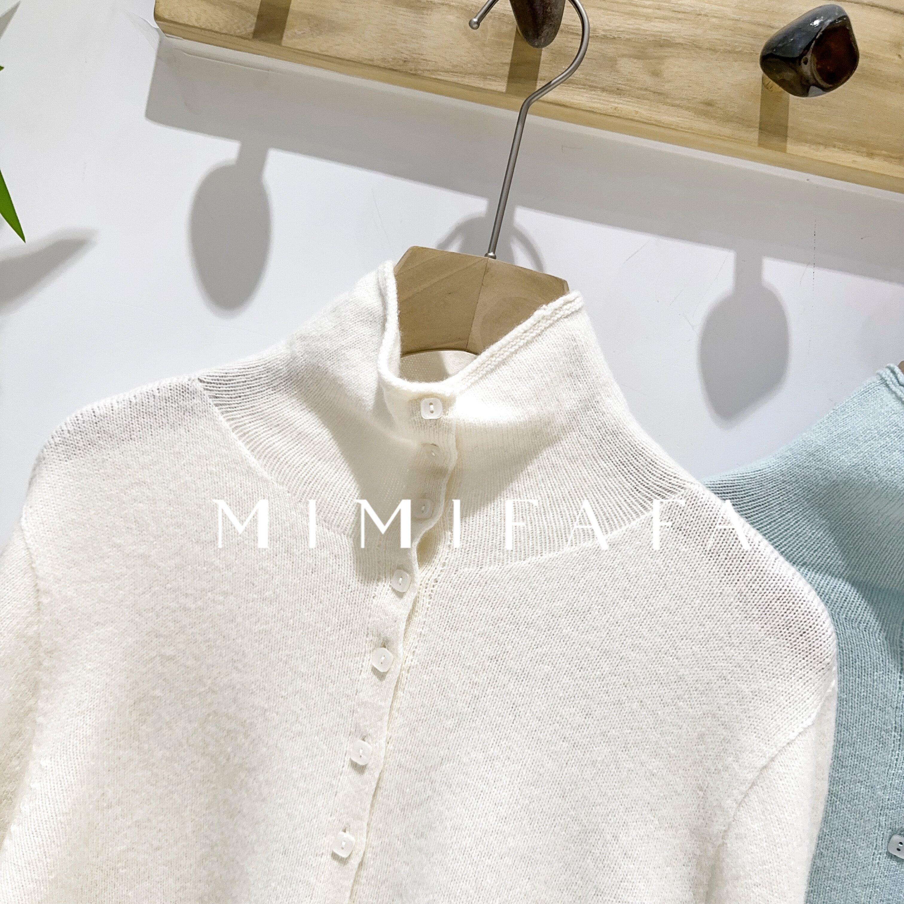 mimifafa 100澳毛韓系氛圍感高領針織開衫女秋冬季內搭軟糯打底衫