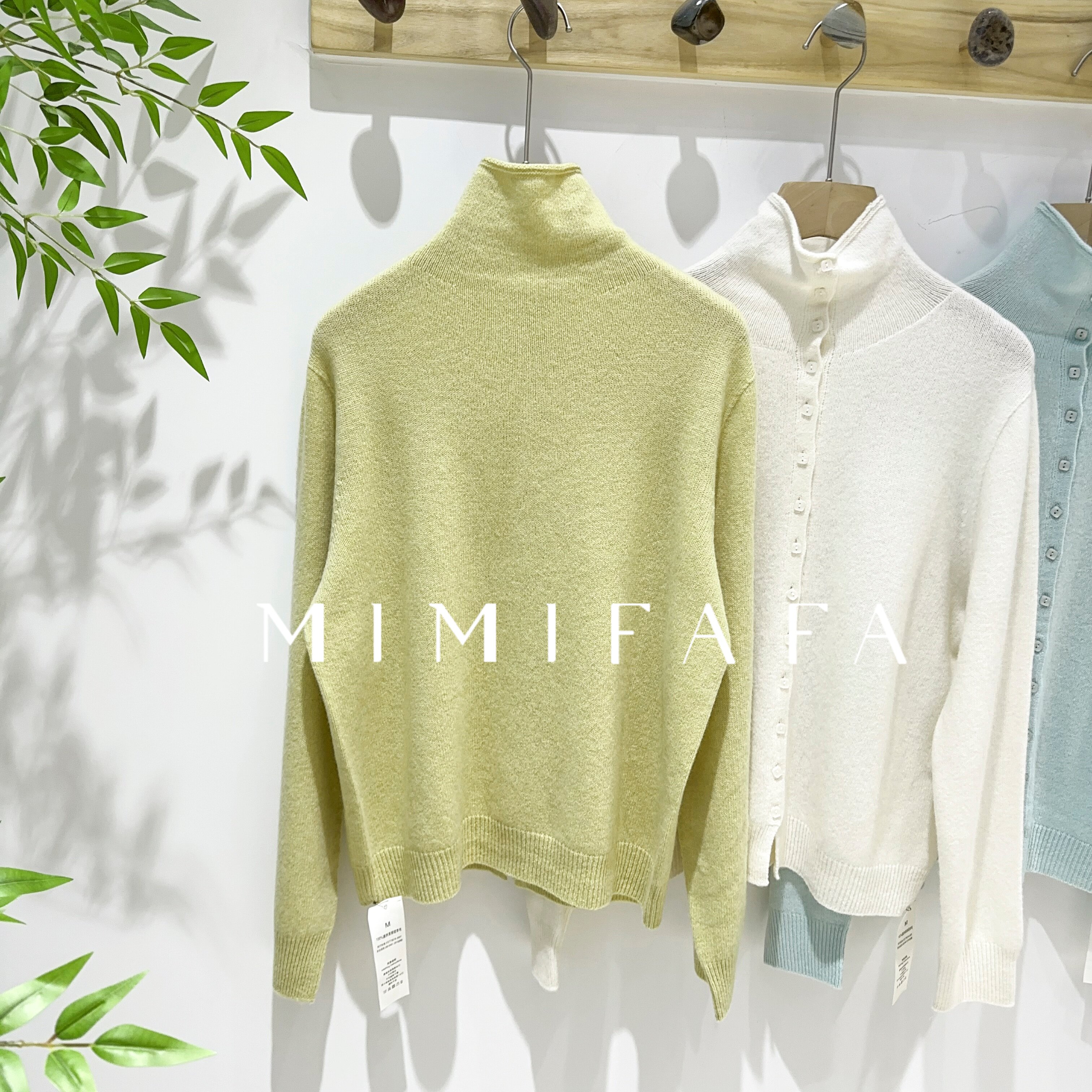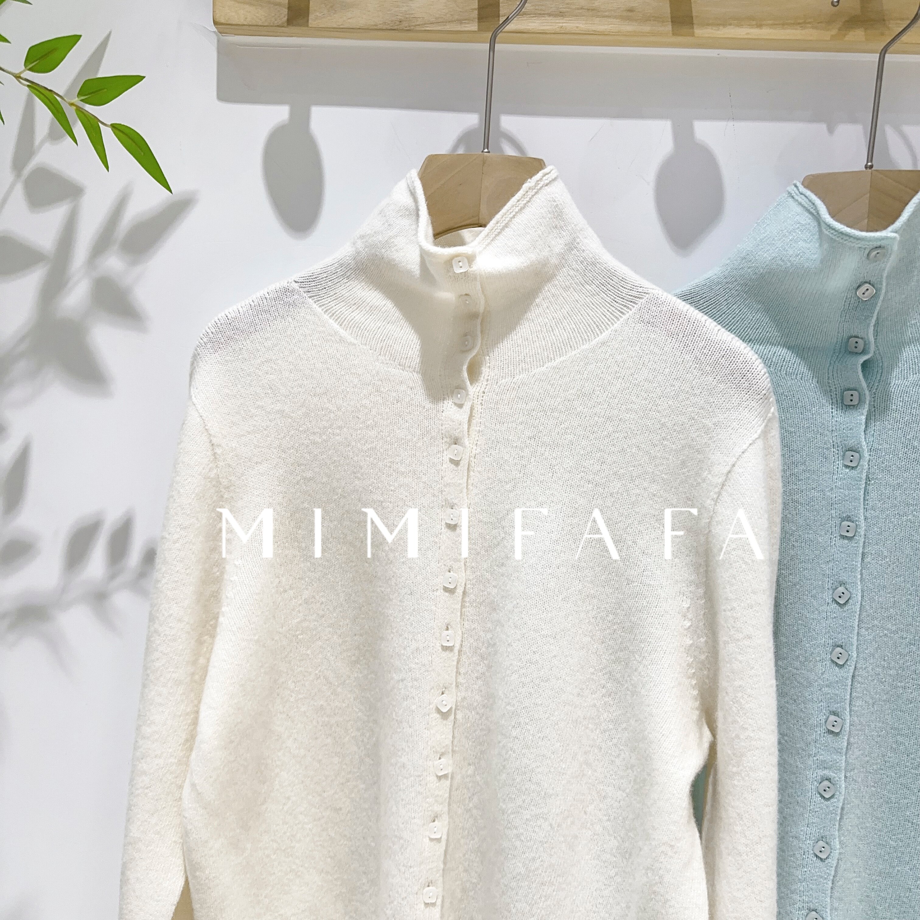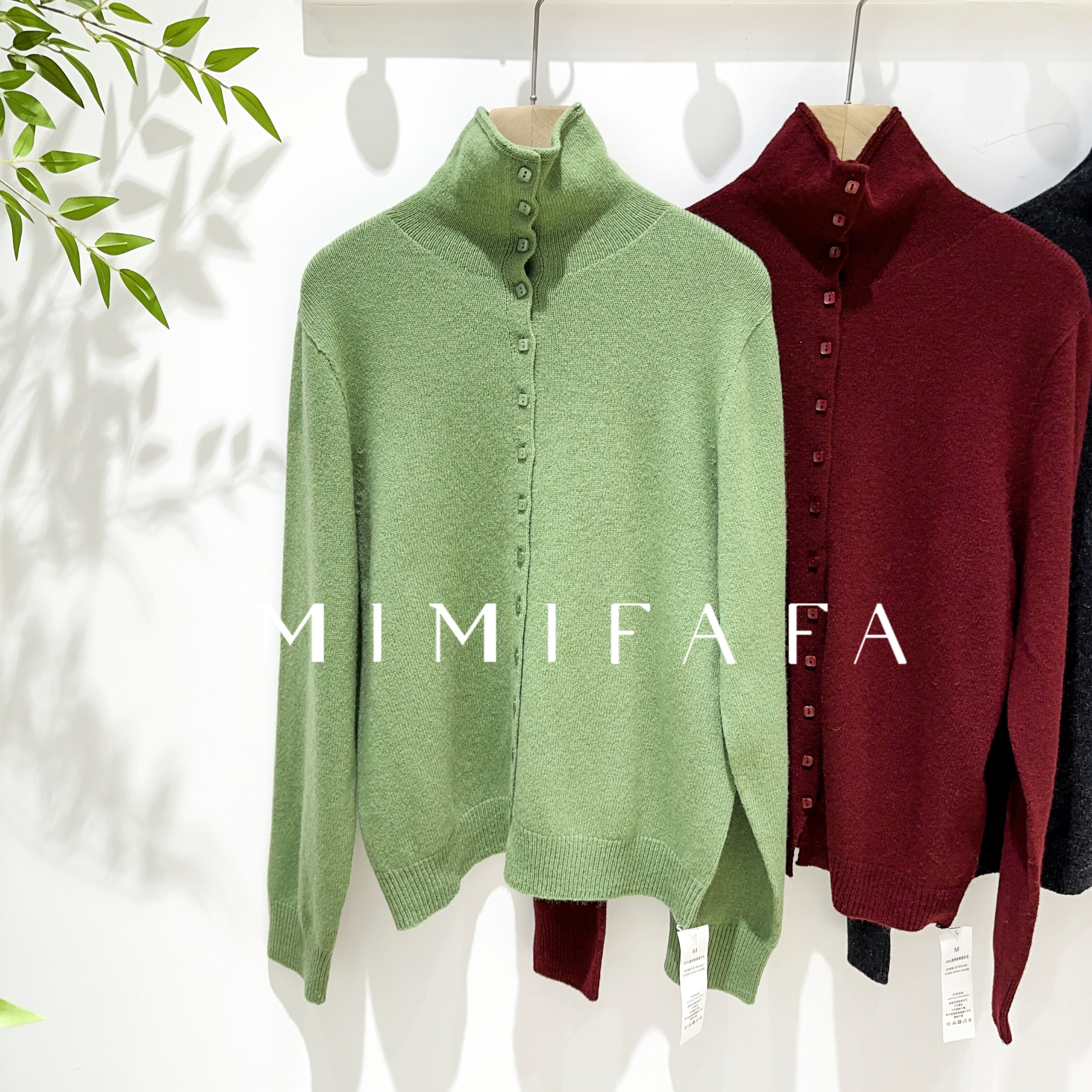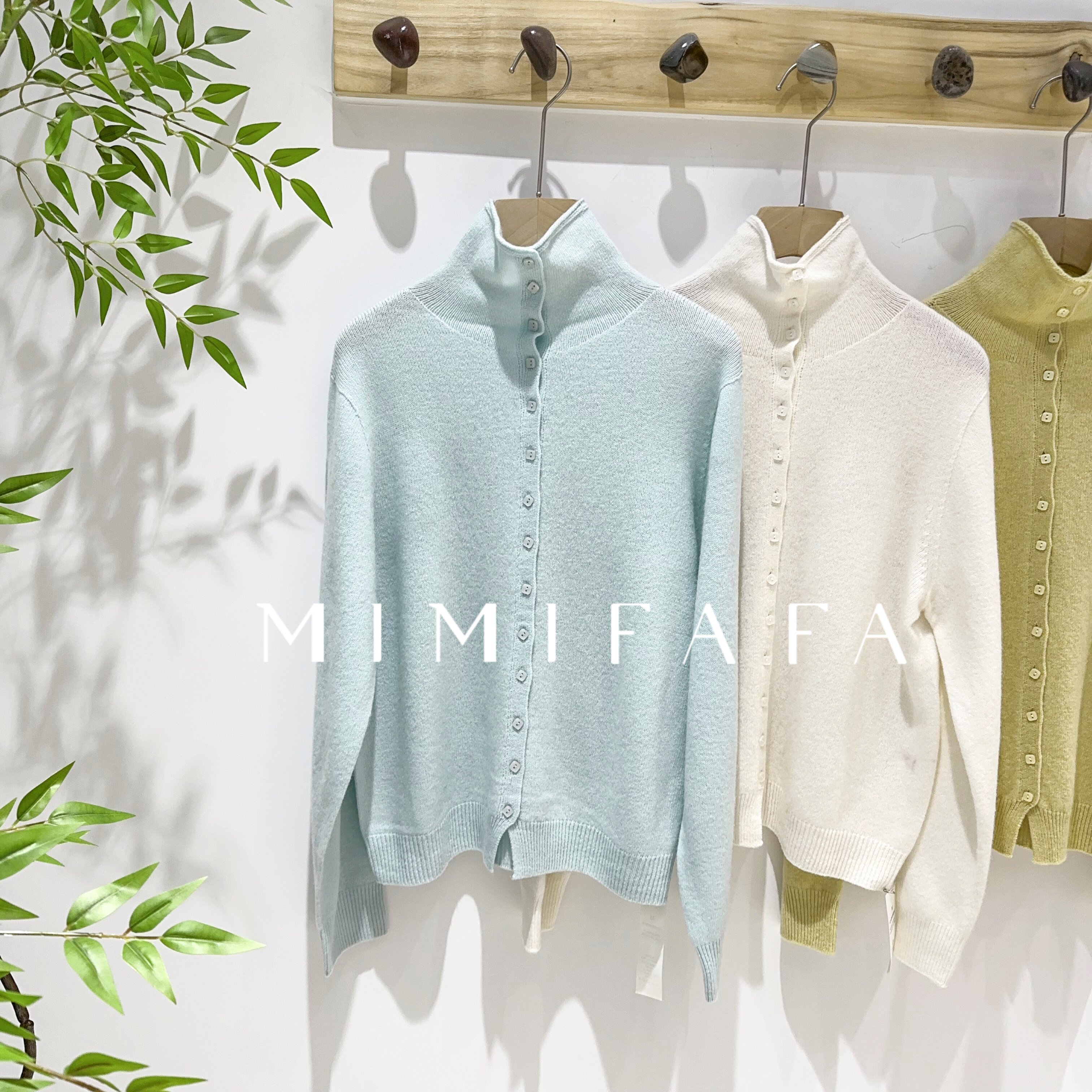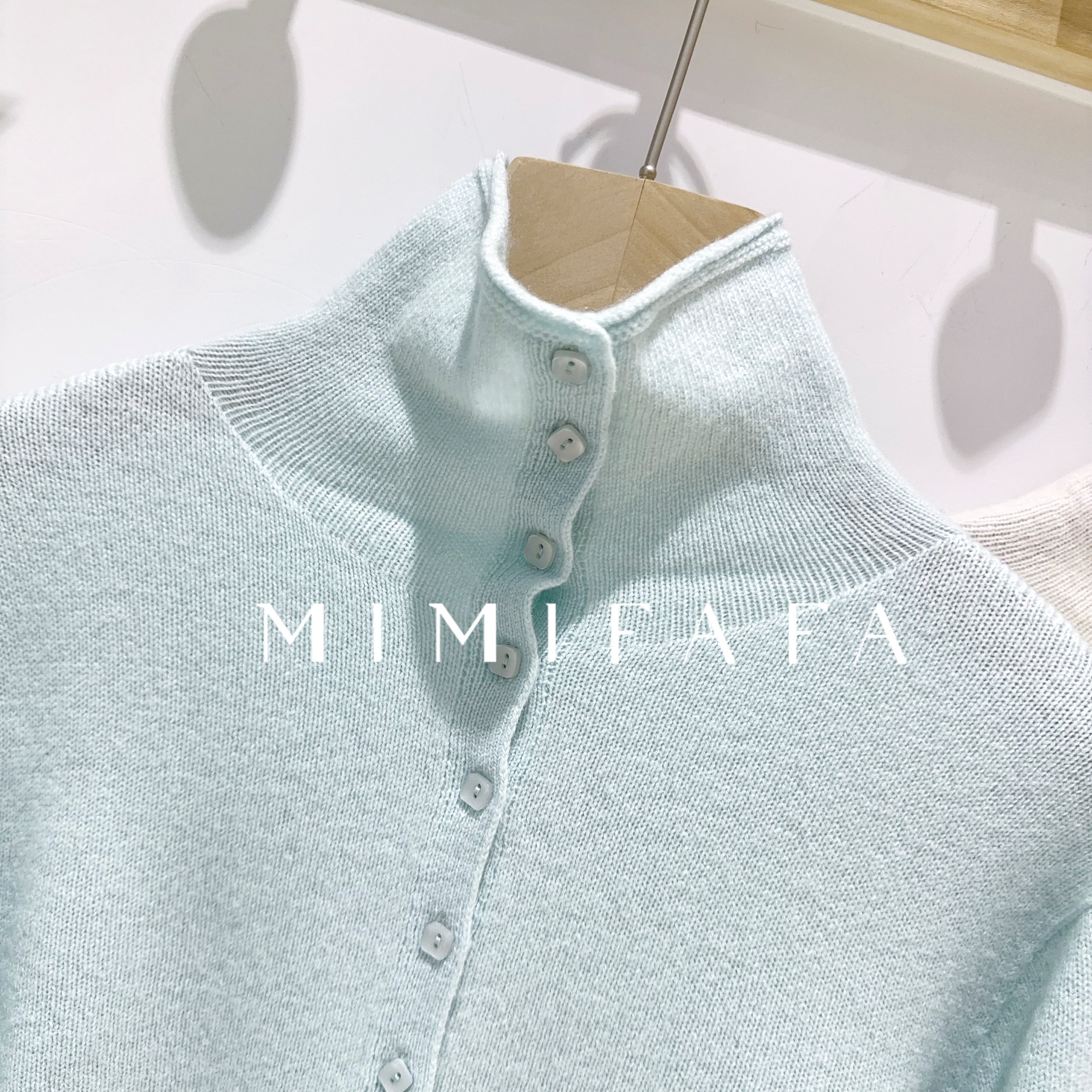 mimifafa 100澳毛韓系氛圍感高領針織開衫女秋冬季內搭軟糯打底衫