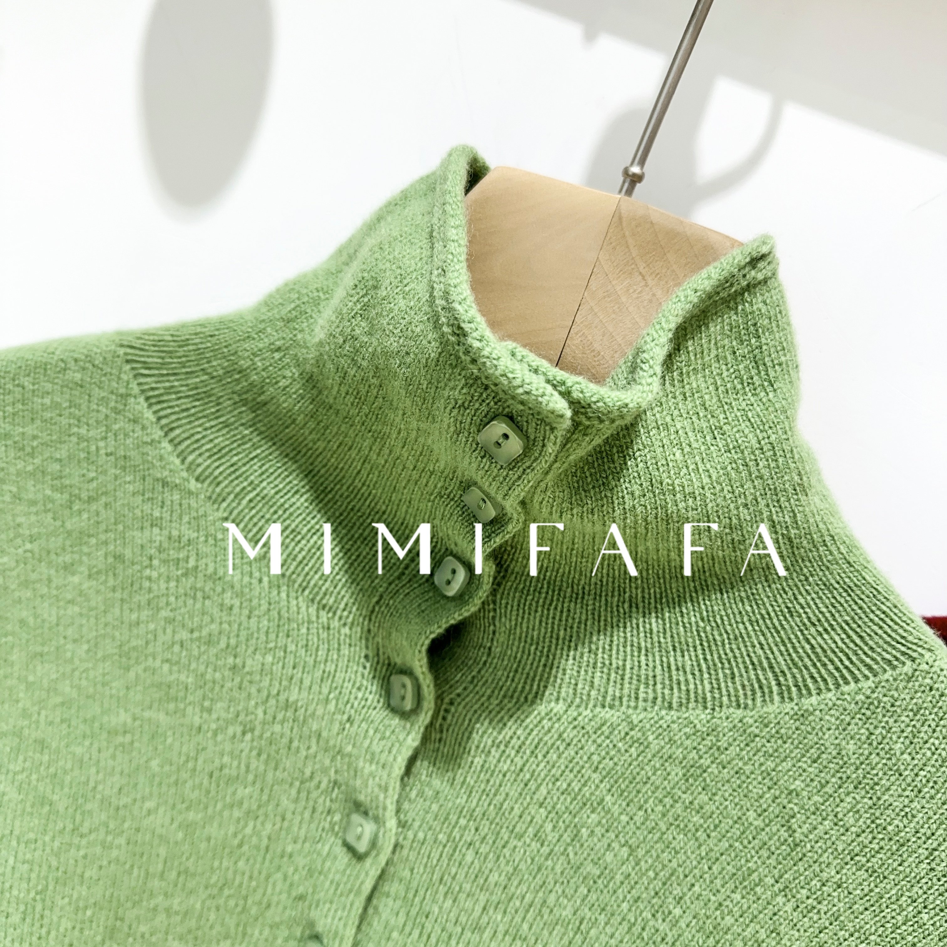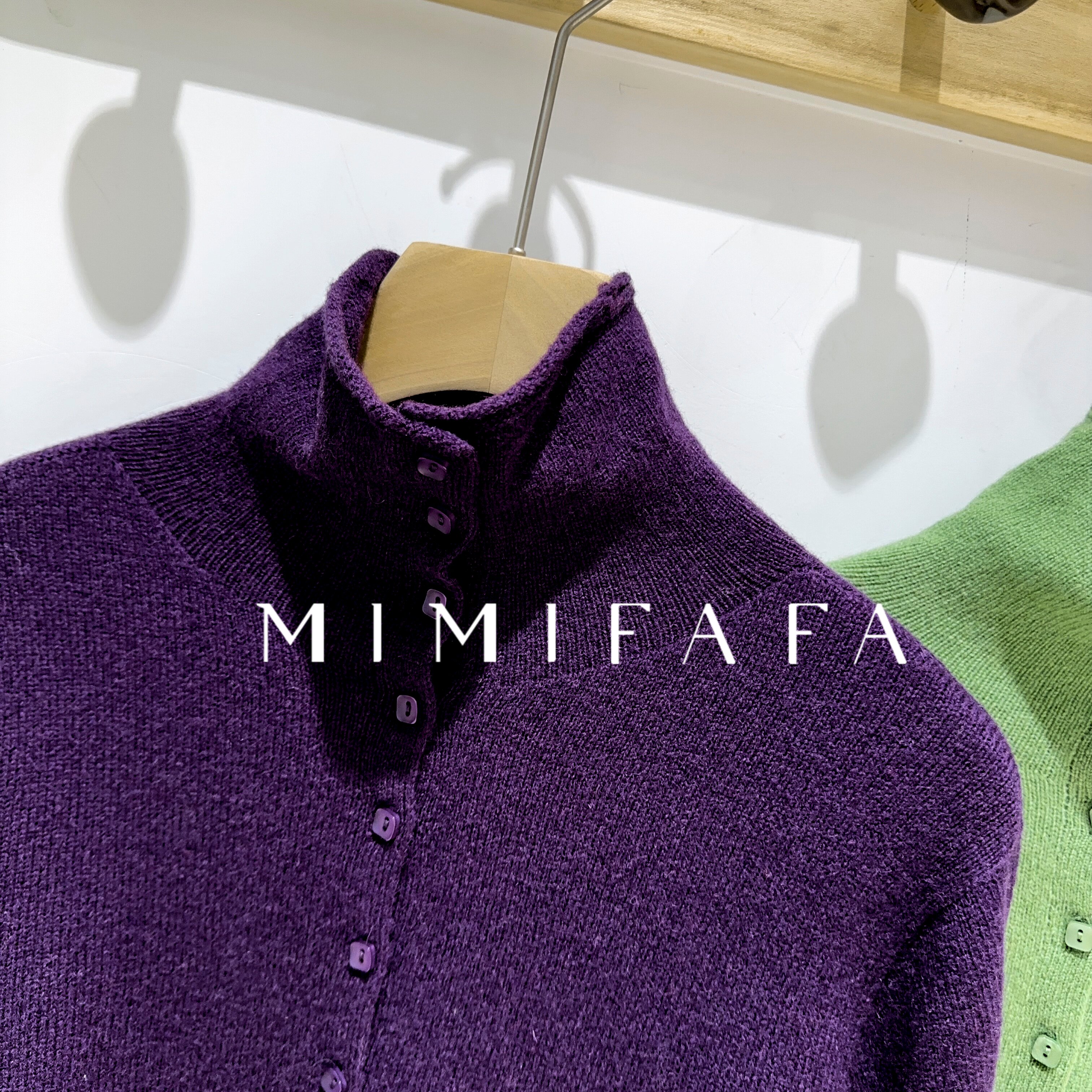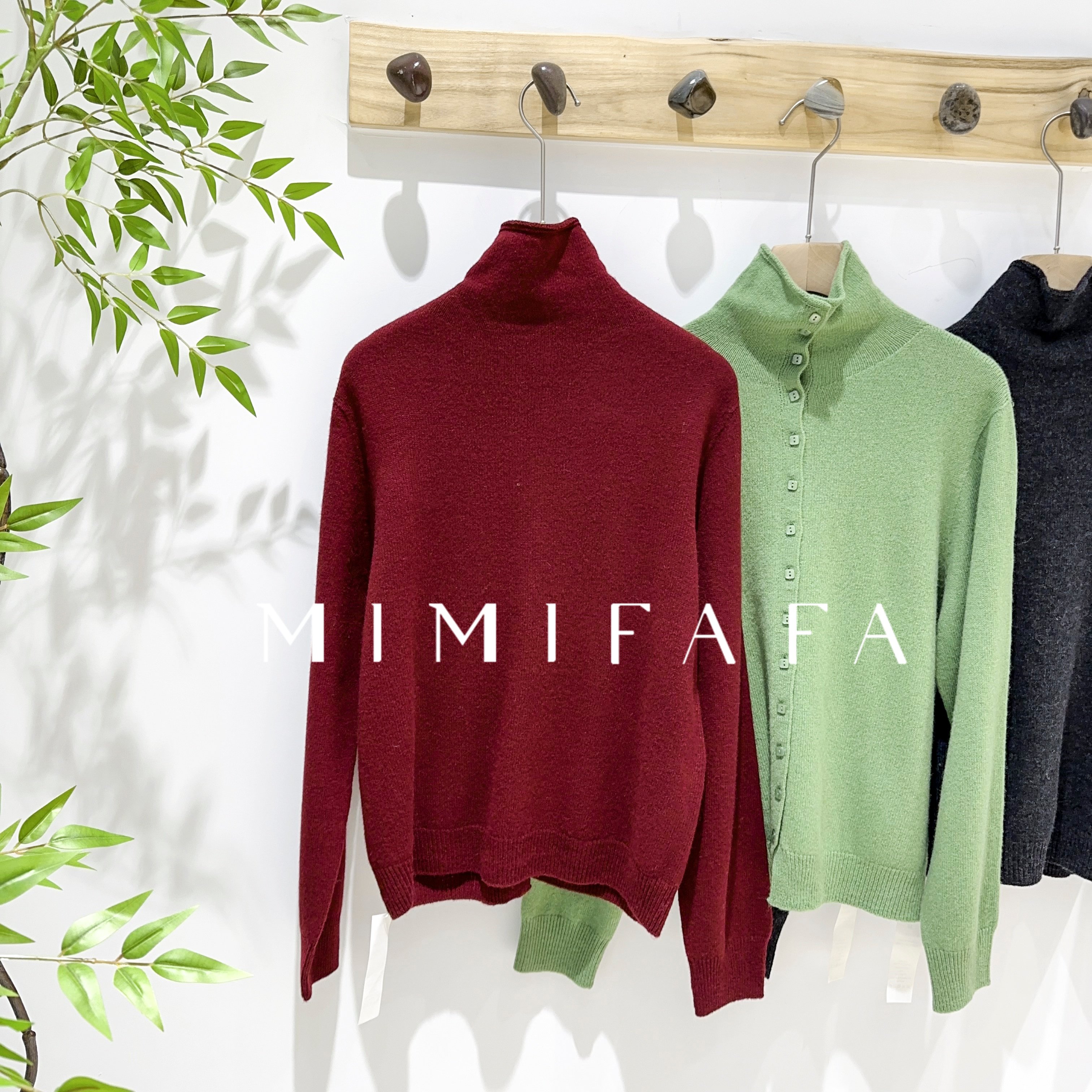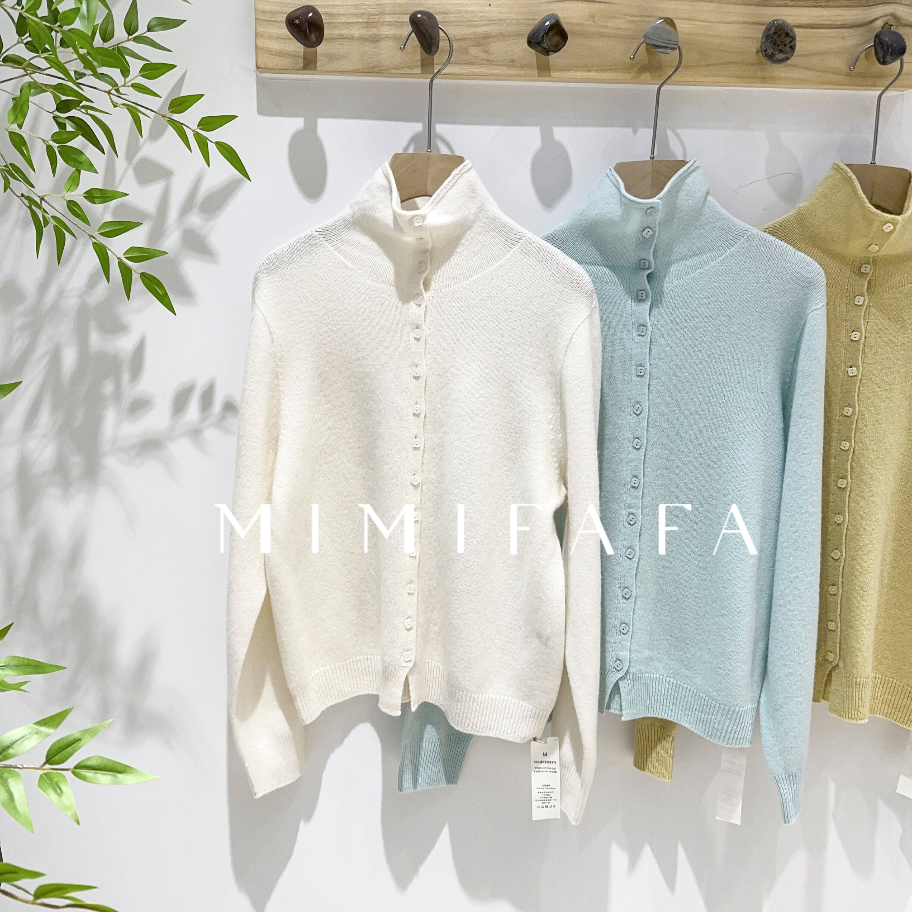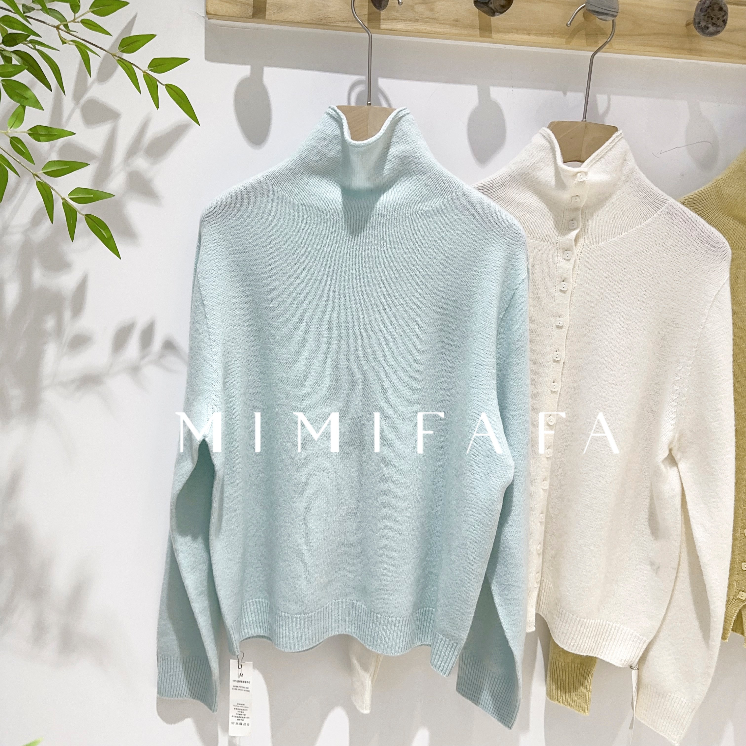 mimifafa 100澳毛韓系氛圍感高領針織開衫女秋冬季內搭軟糯打底衫