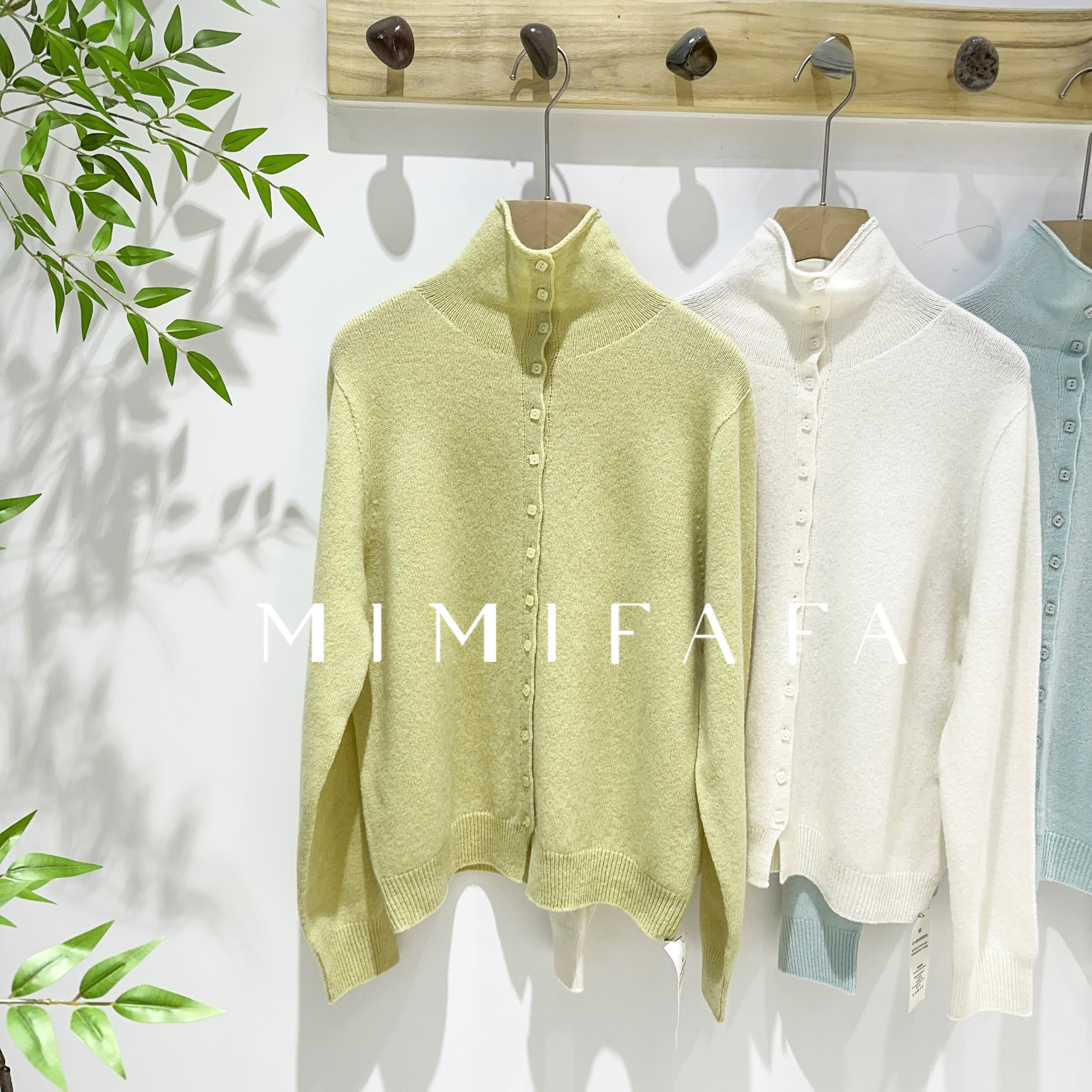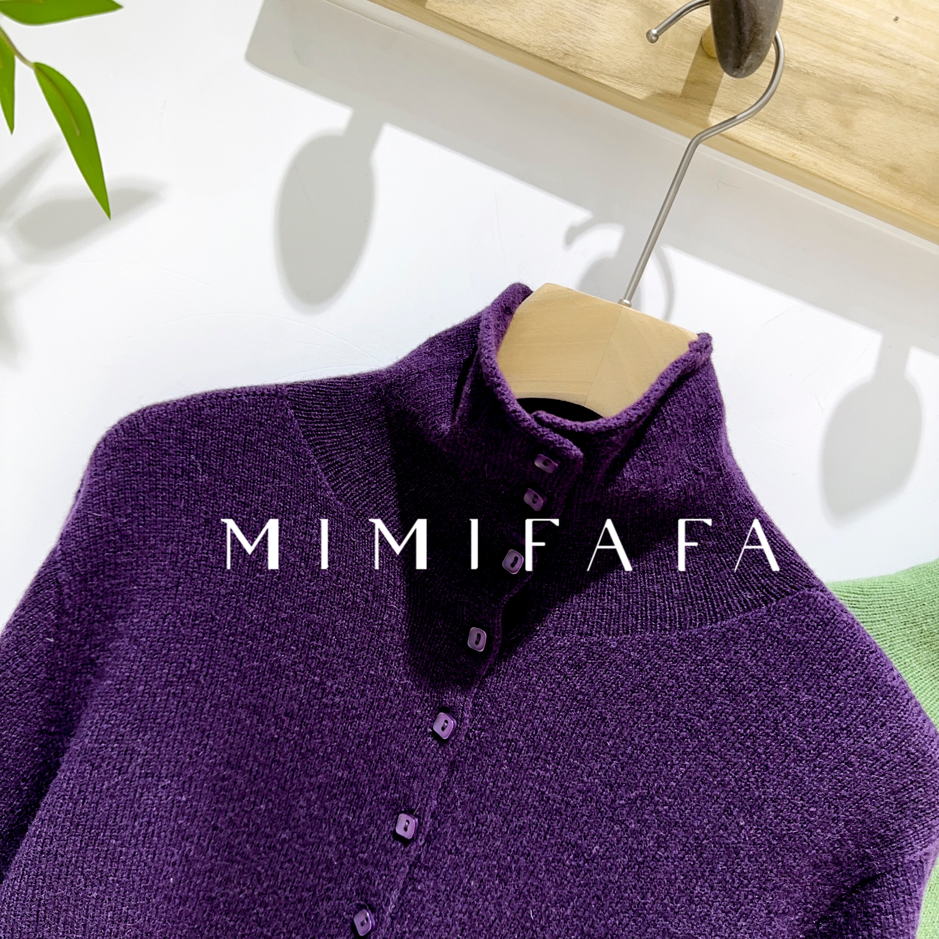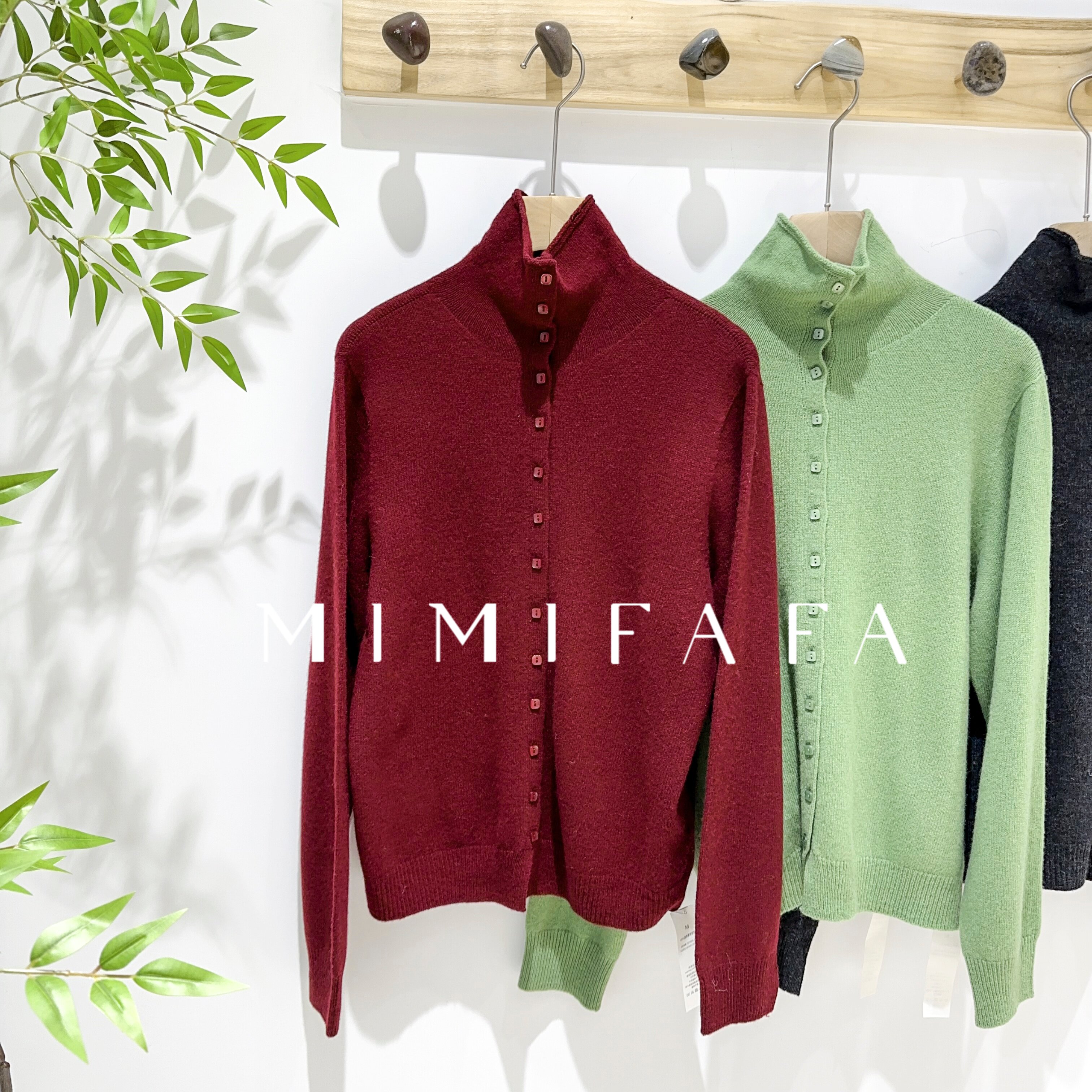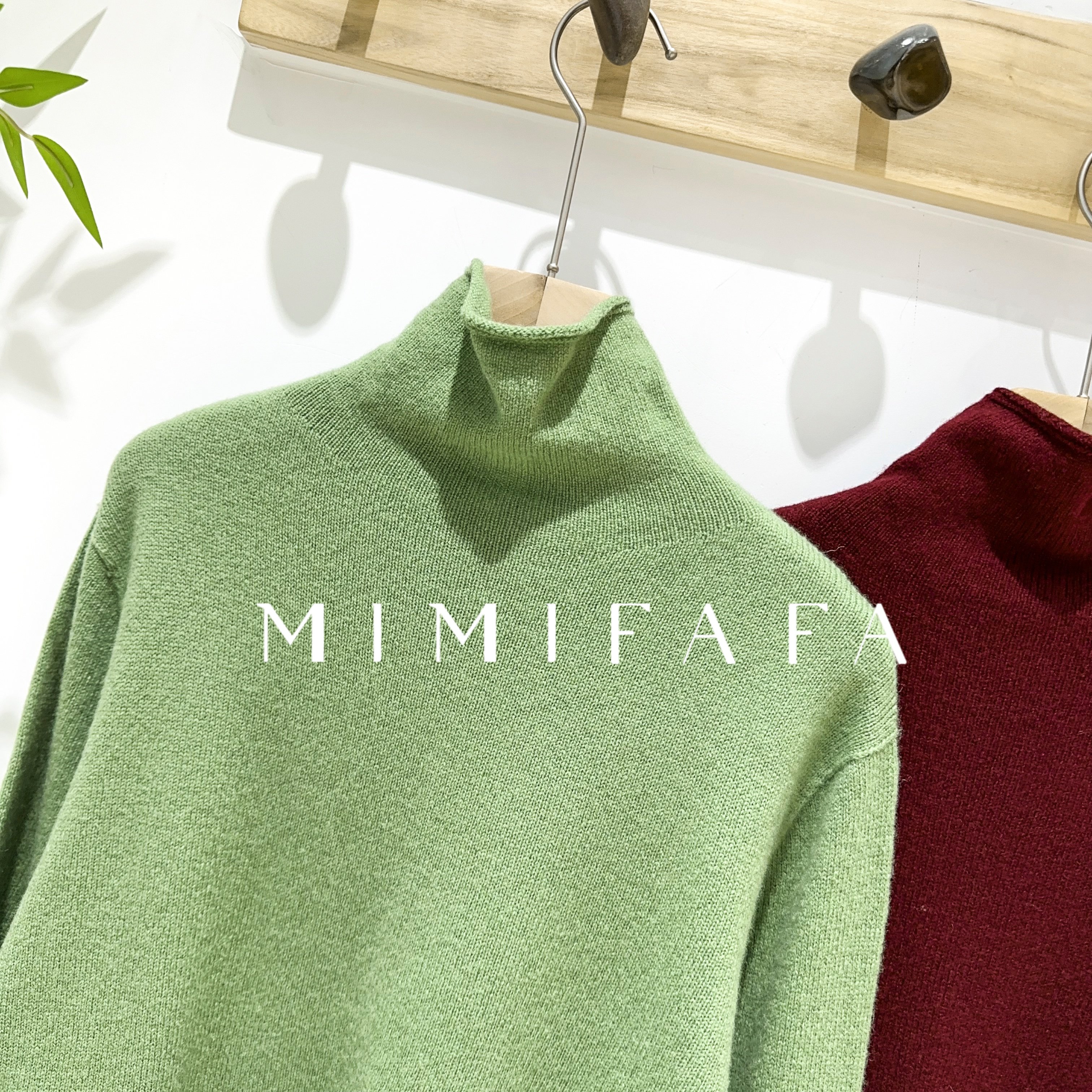 mimifafa 100澳毛韓系氛圍感高領針織開衫女秋冬季內搭軟糯打底衫
