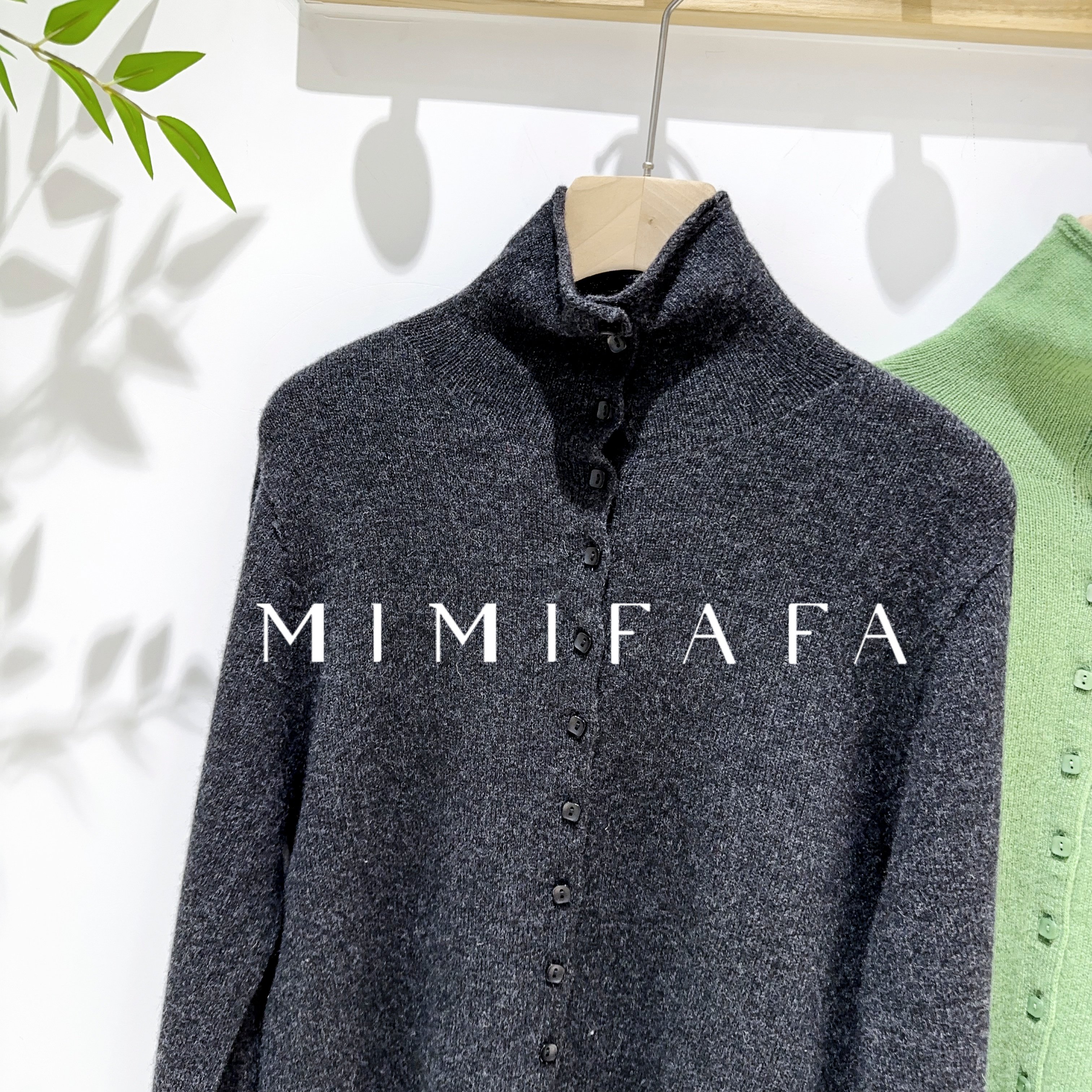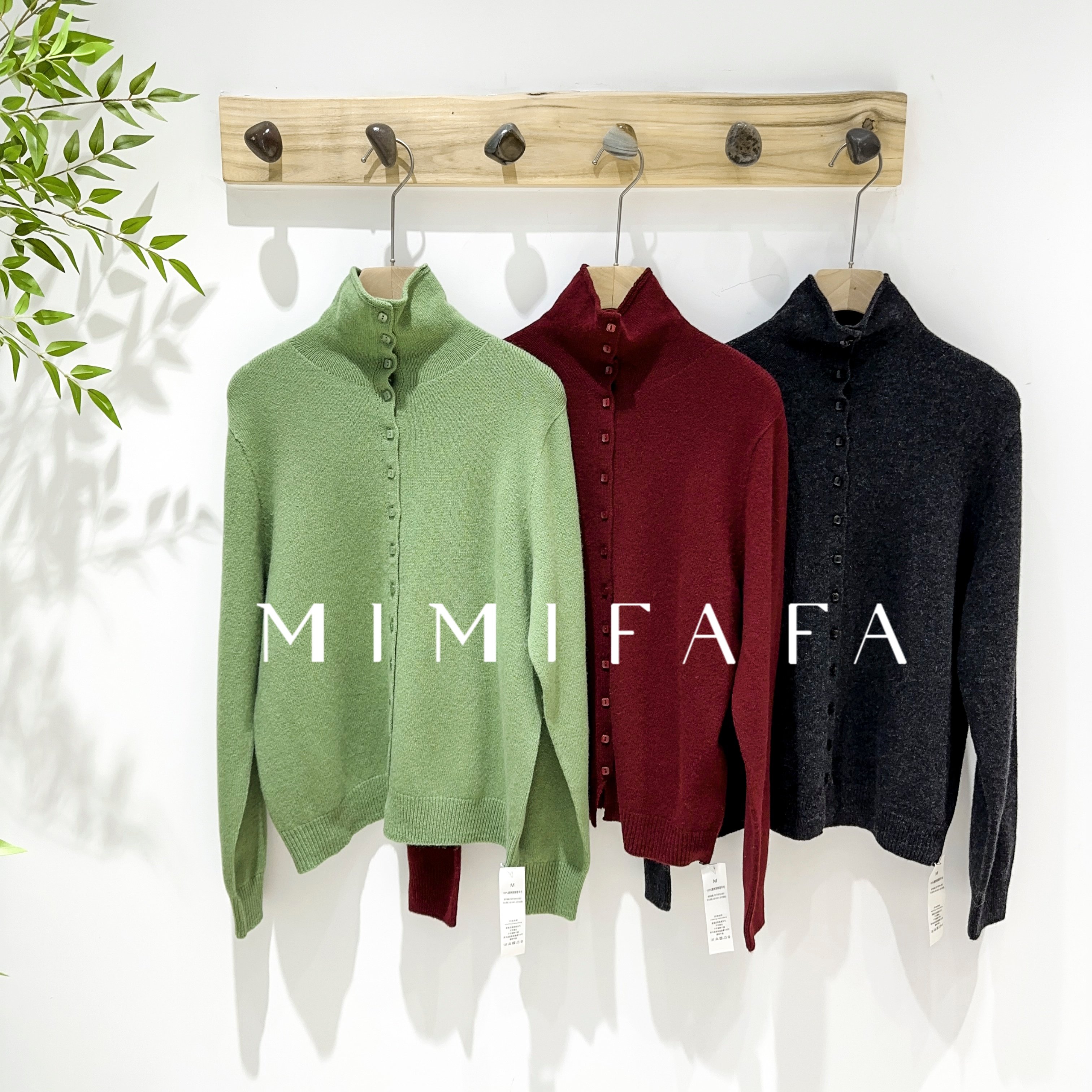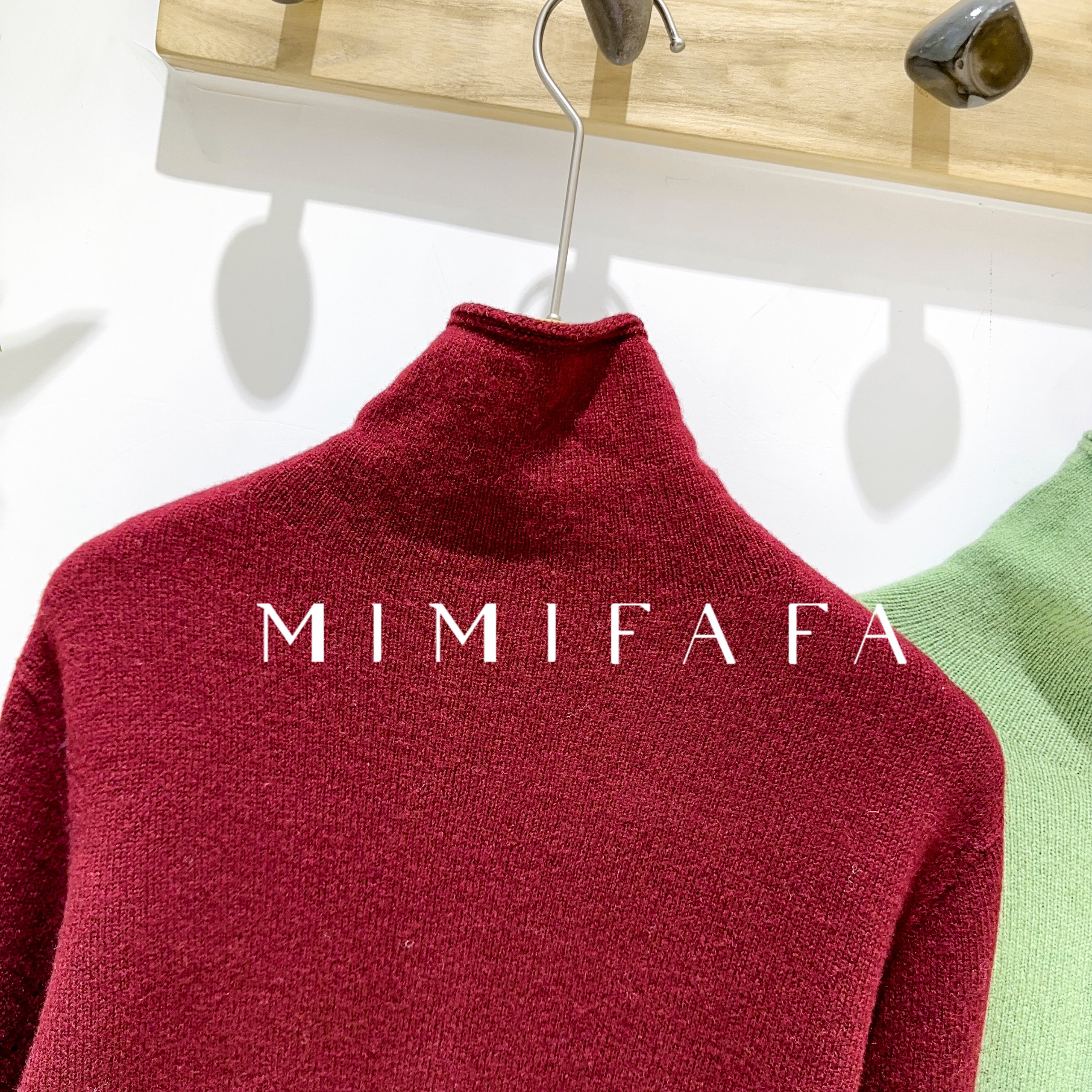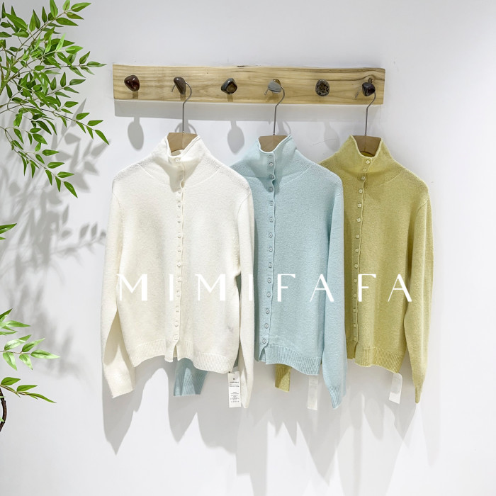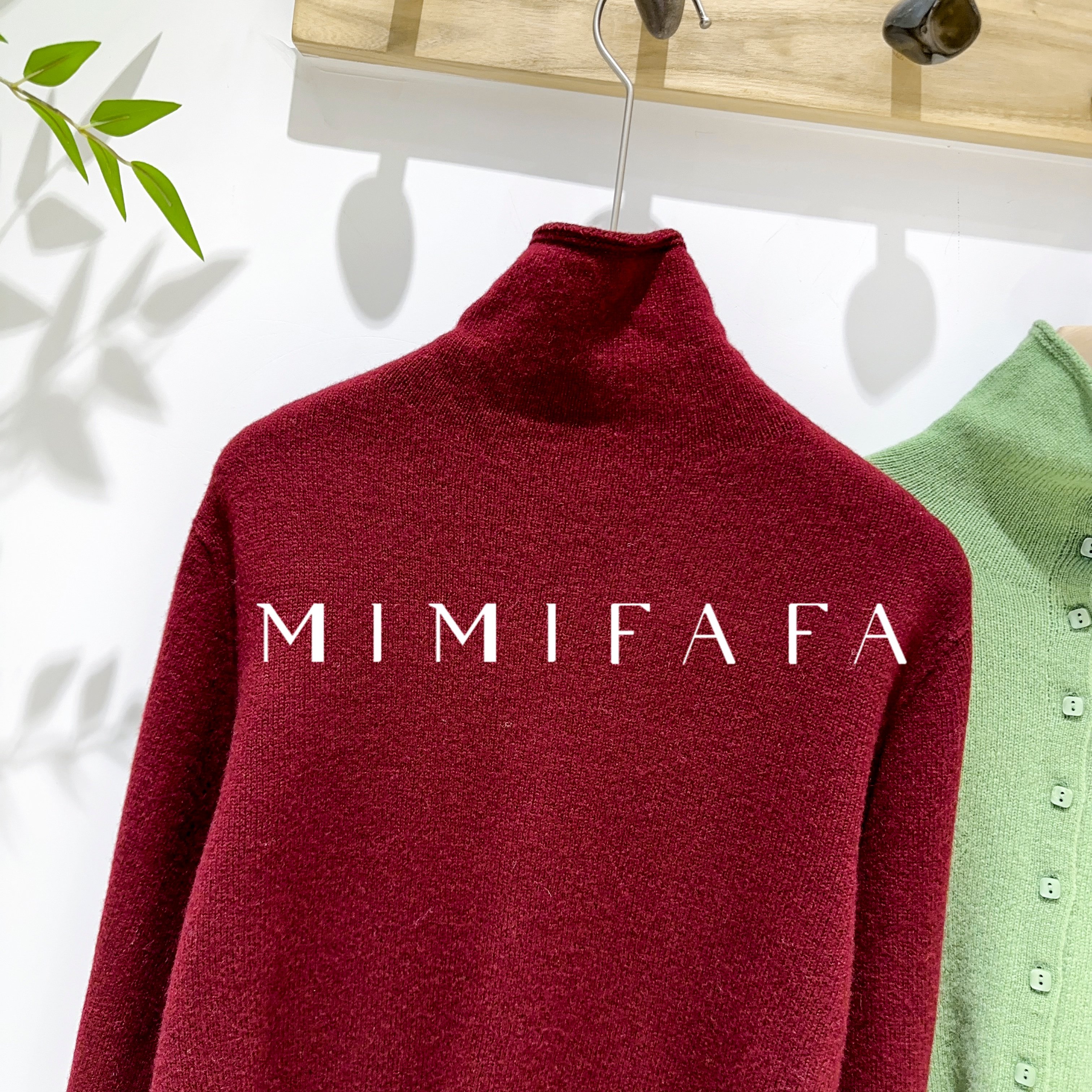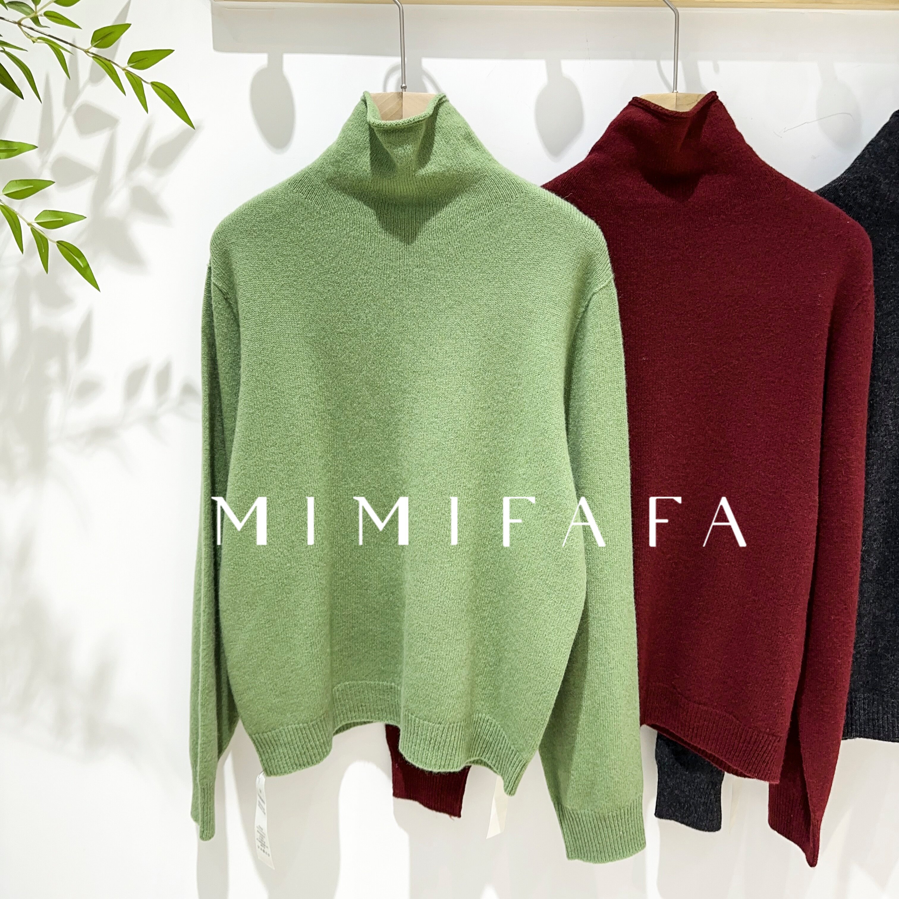 mimifafa 100澳毛韓系氛圍感高領針織開衫女秋冬季內搭軟糯打底衫