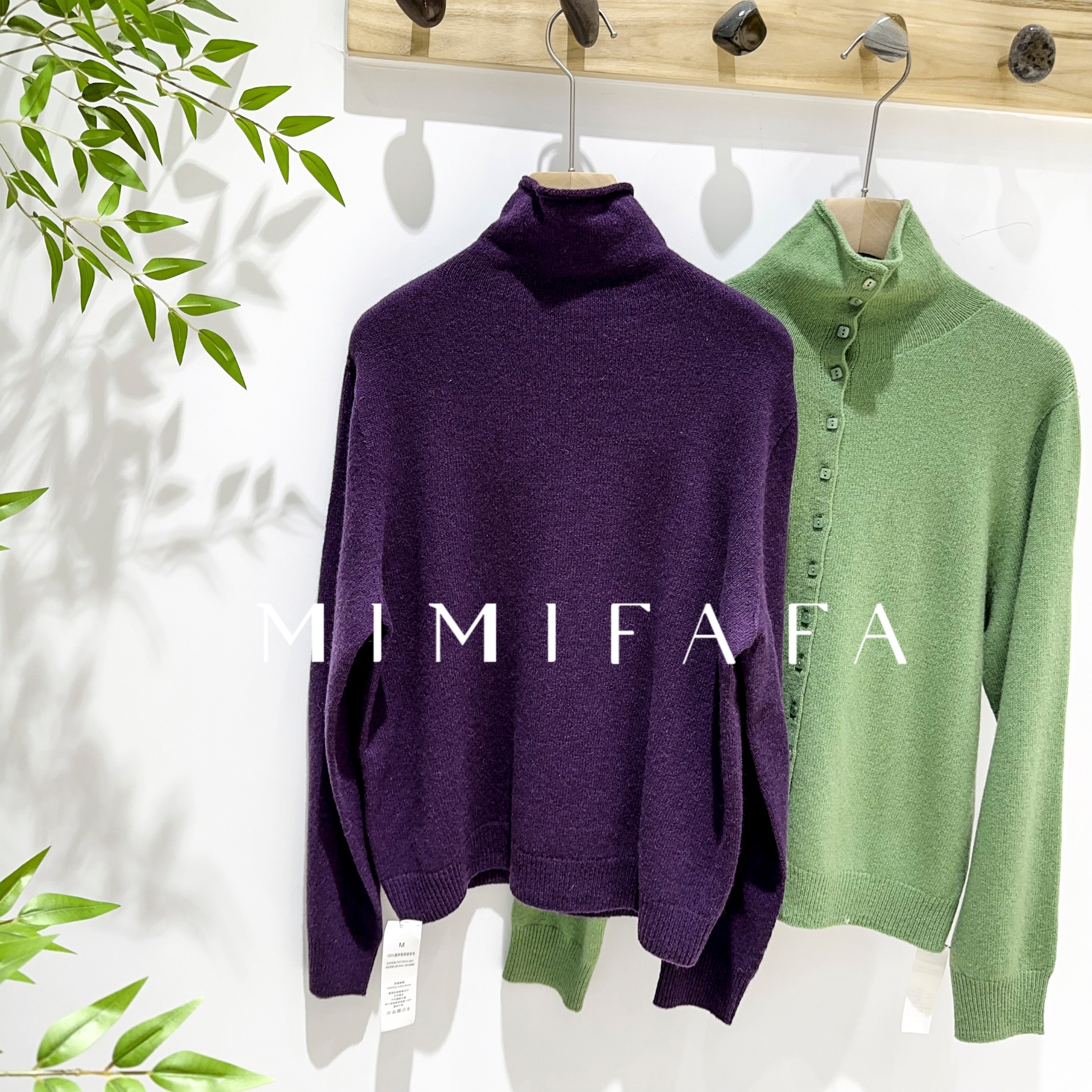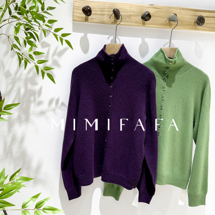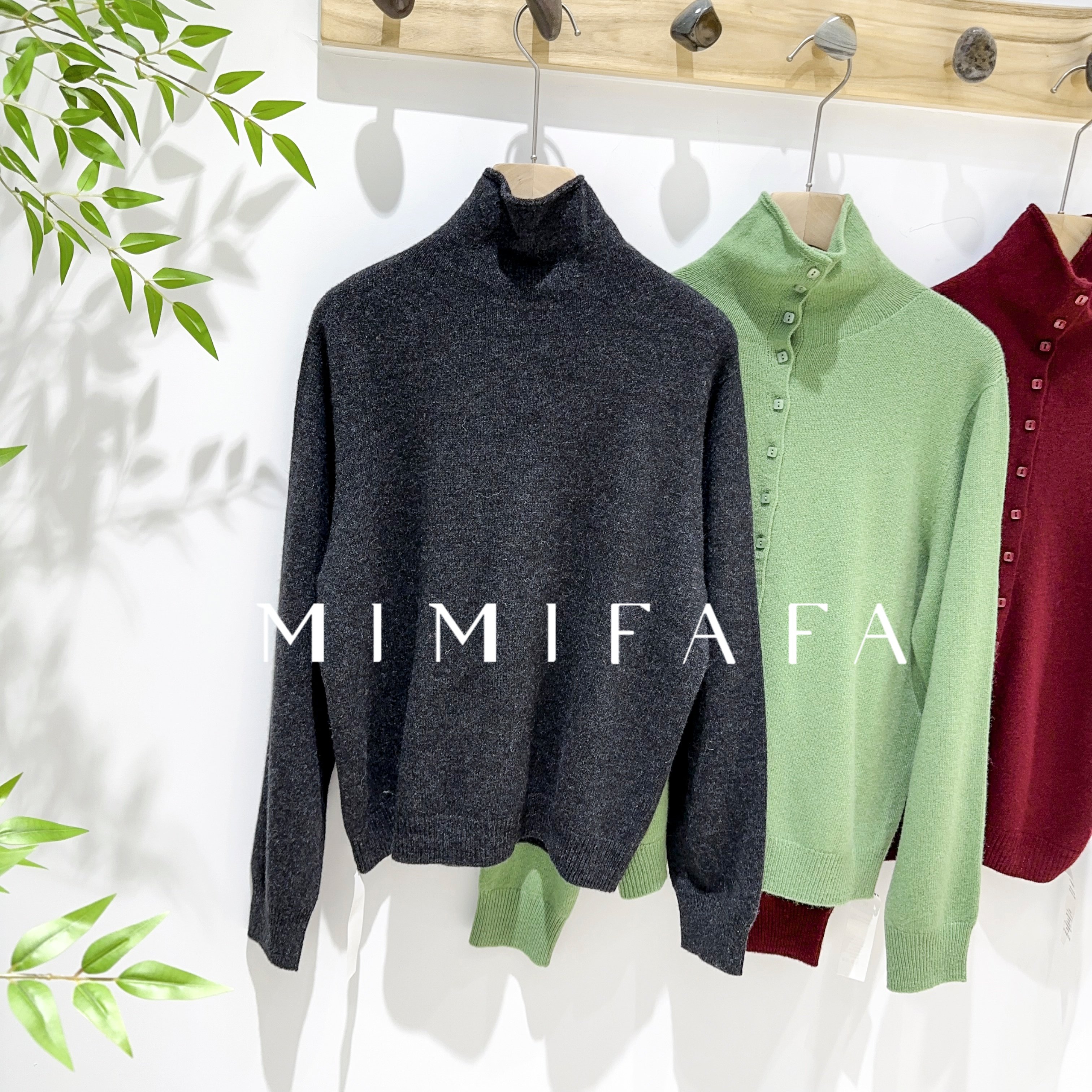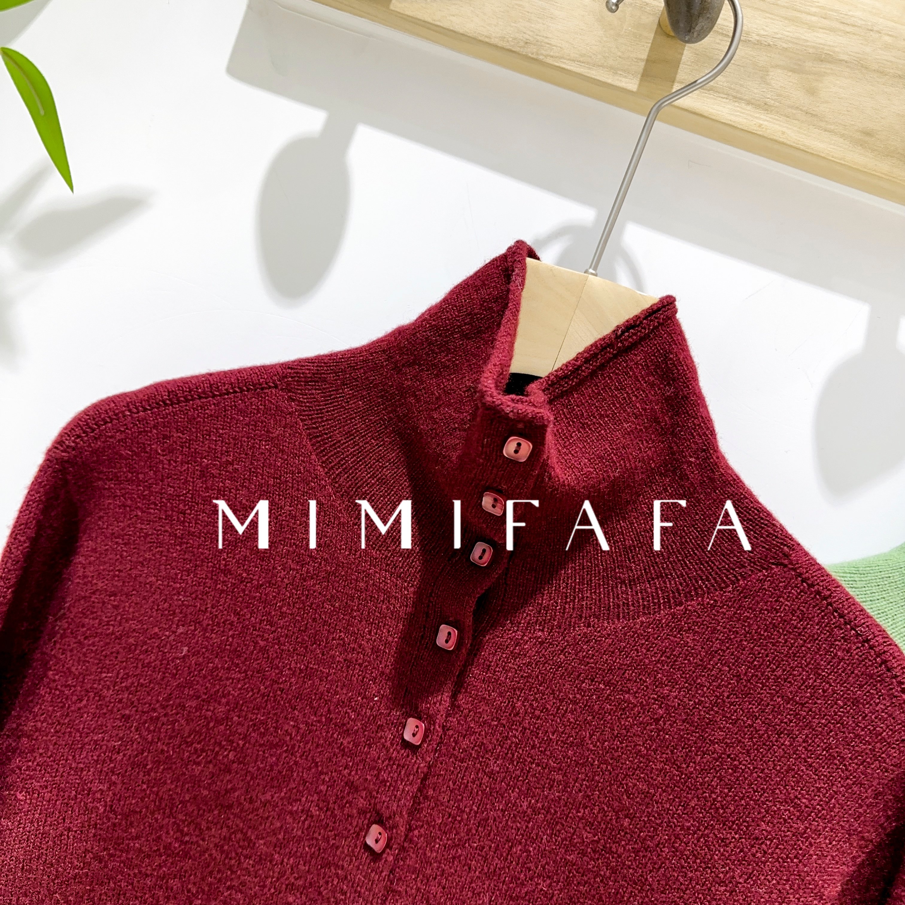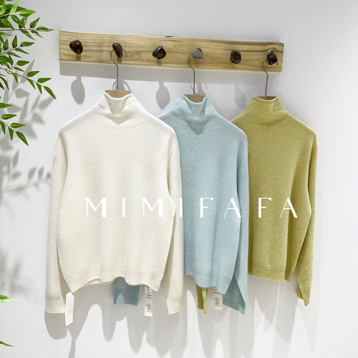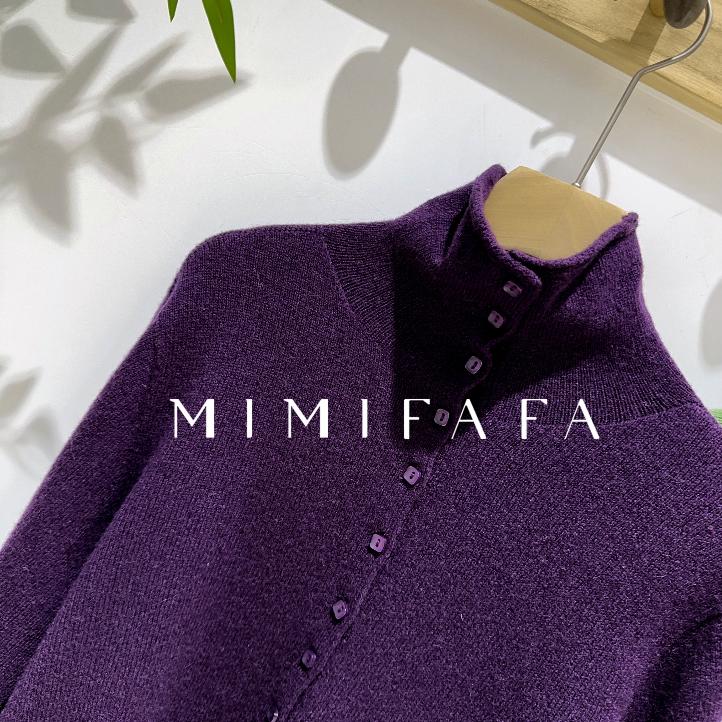 mimifafa 100澳毛韓系氛圍感高領針織開衫女秋冬季內搭軟糯打底衫
