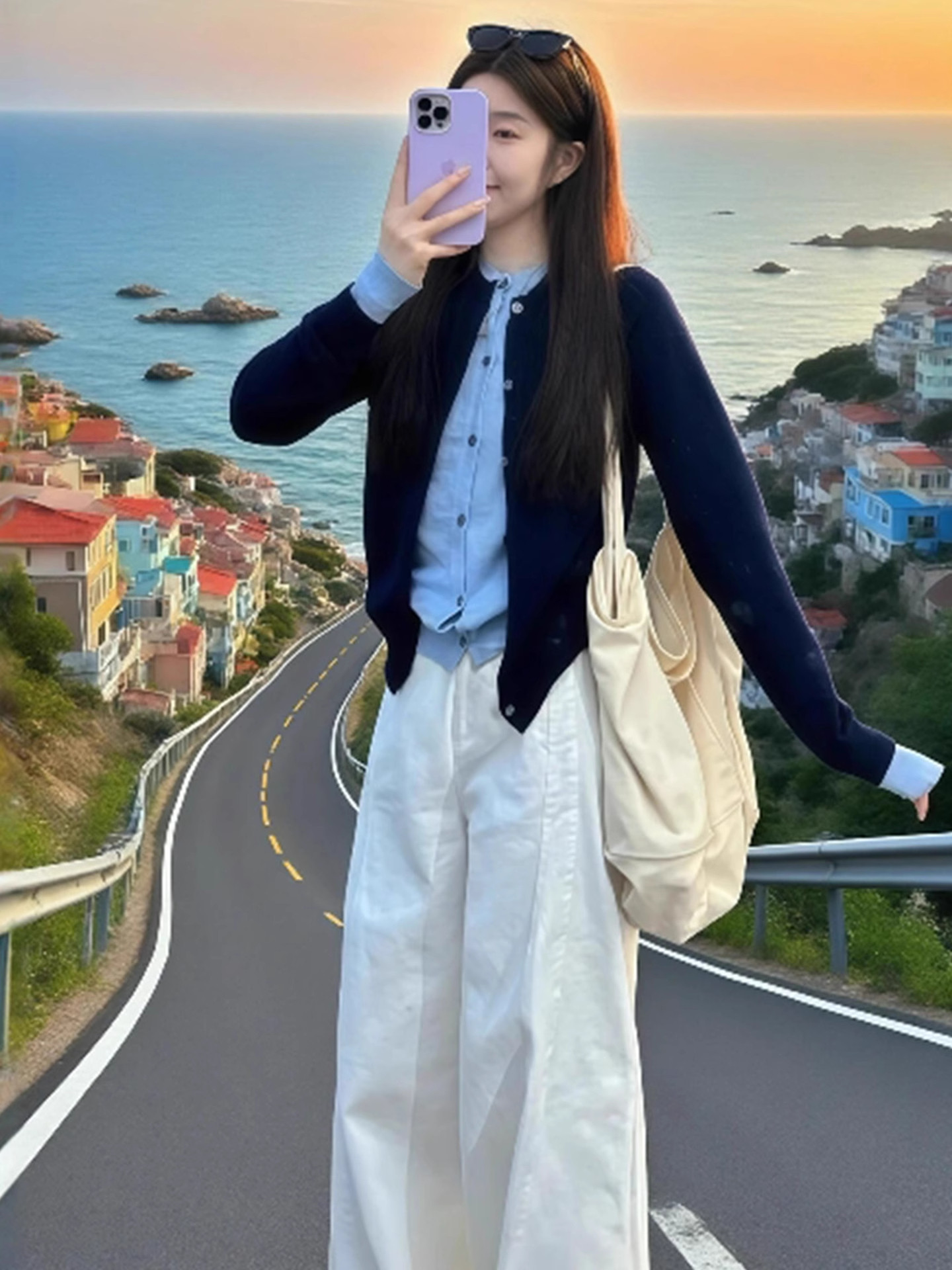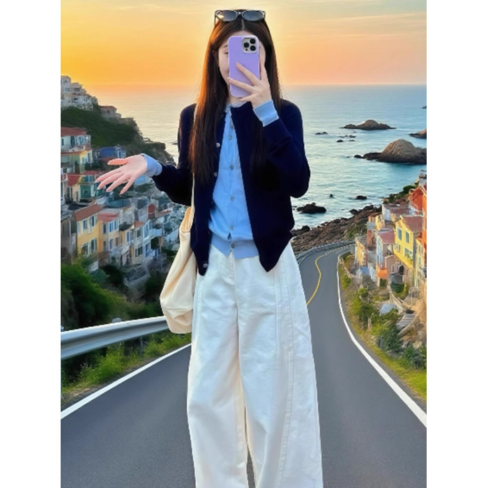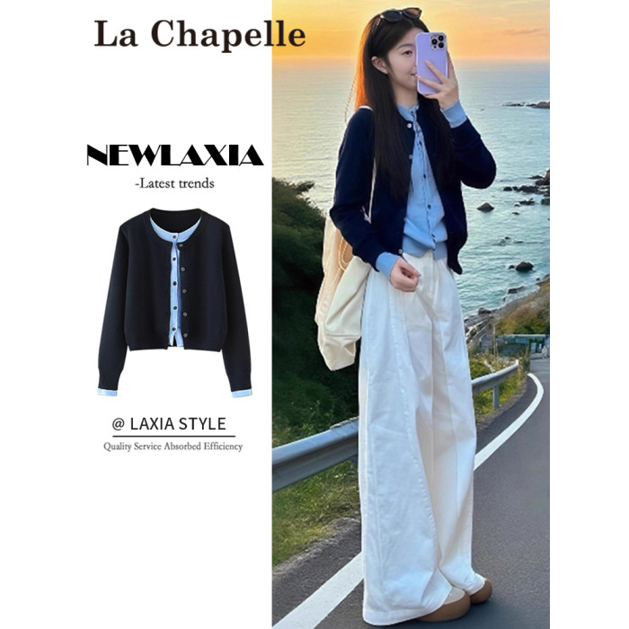 拉夏貝爾假兩件撞色長袖針織衫女秋季新款韓系氛圍感小衆百搭上衣