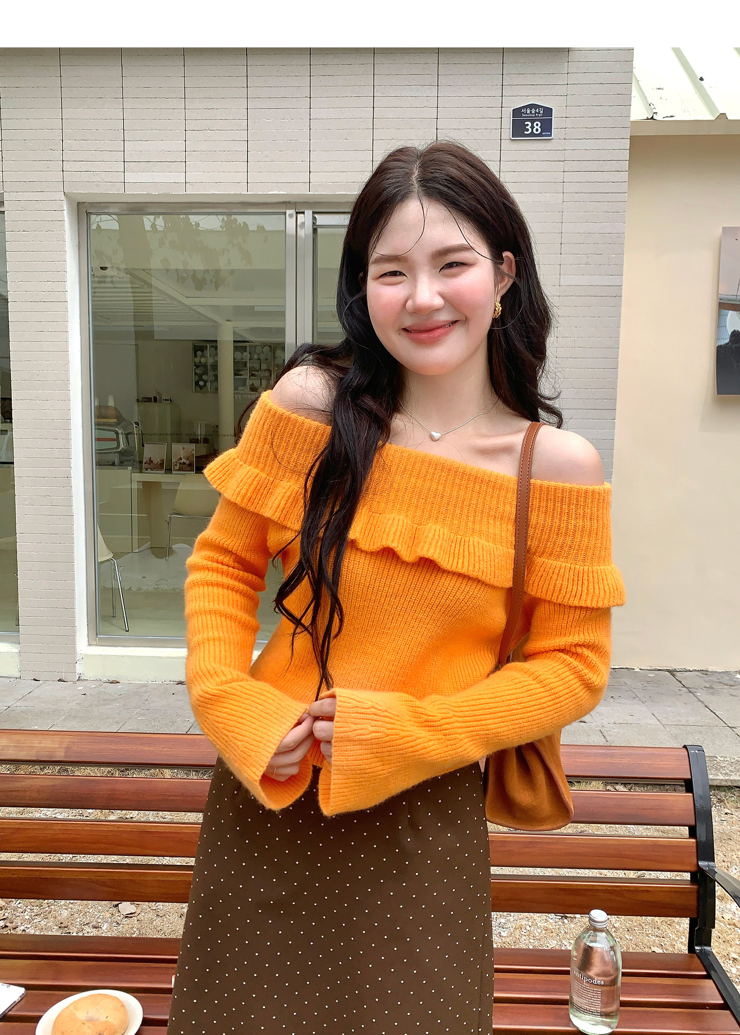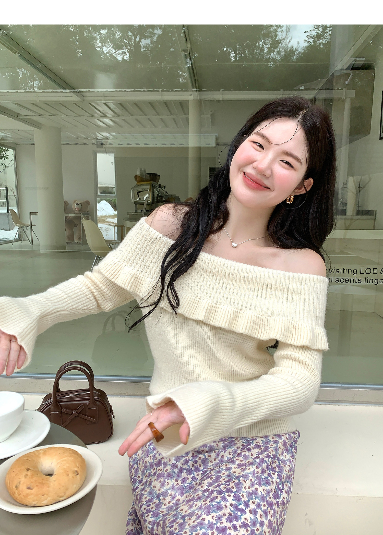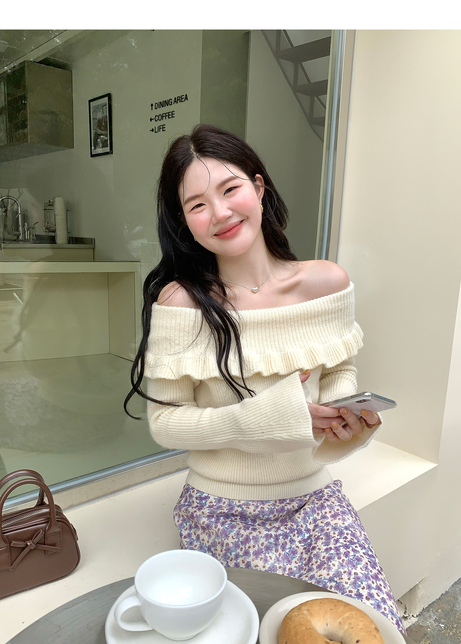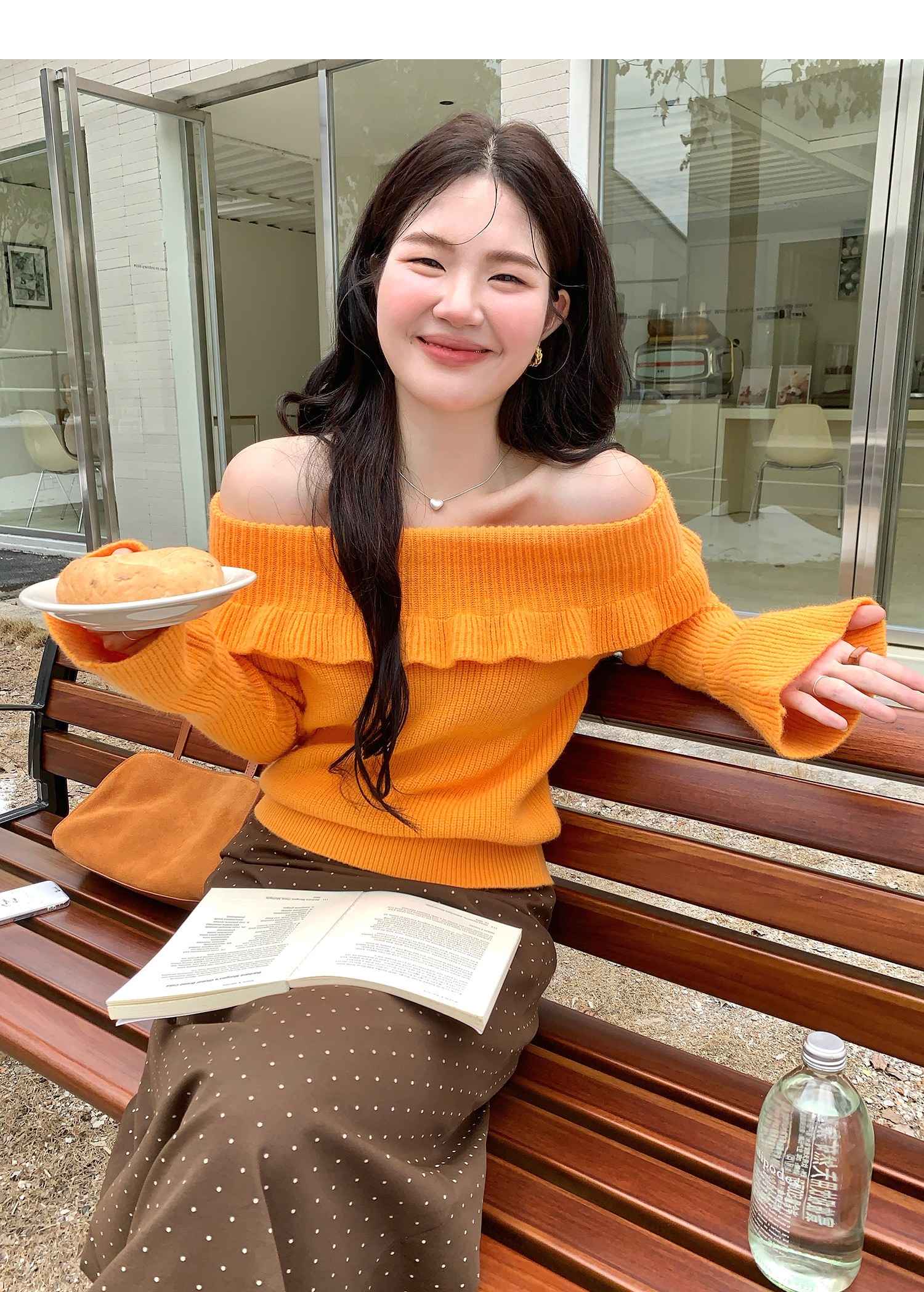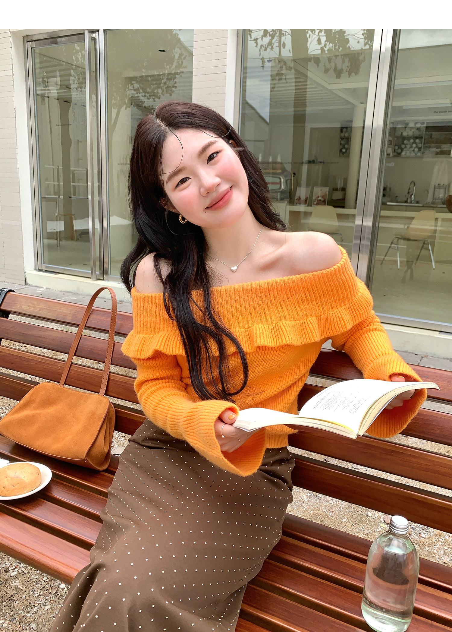 火火火【秋風微瀾】韓版溫柔風一字肩毛衣女修身露肩氣質針織衫