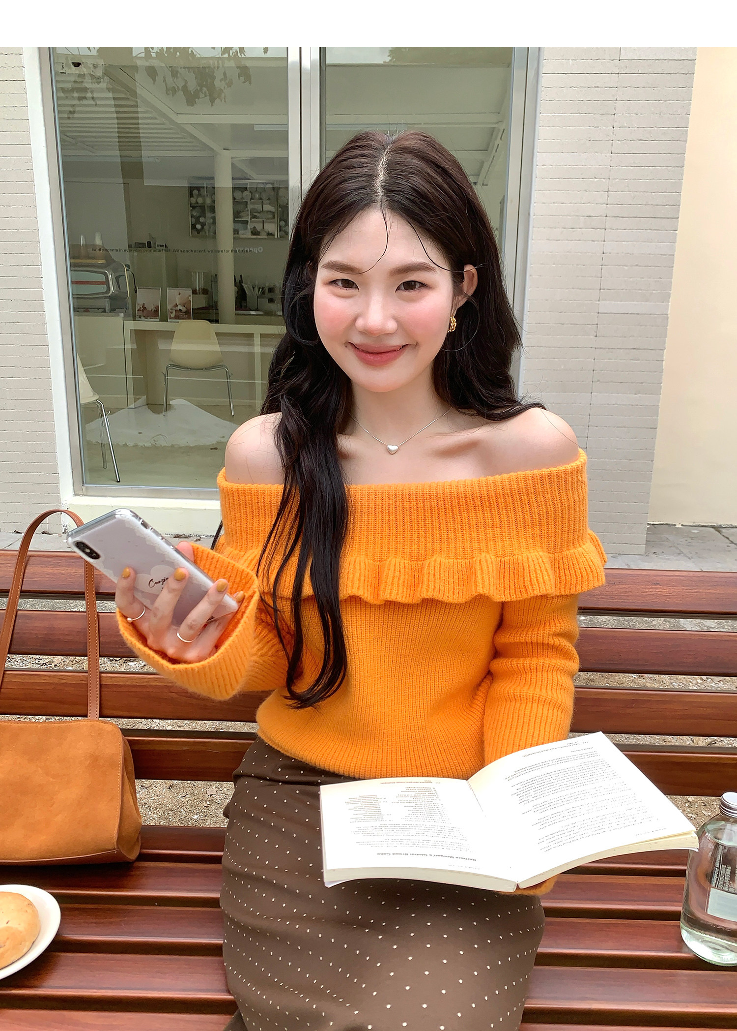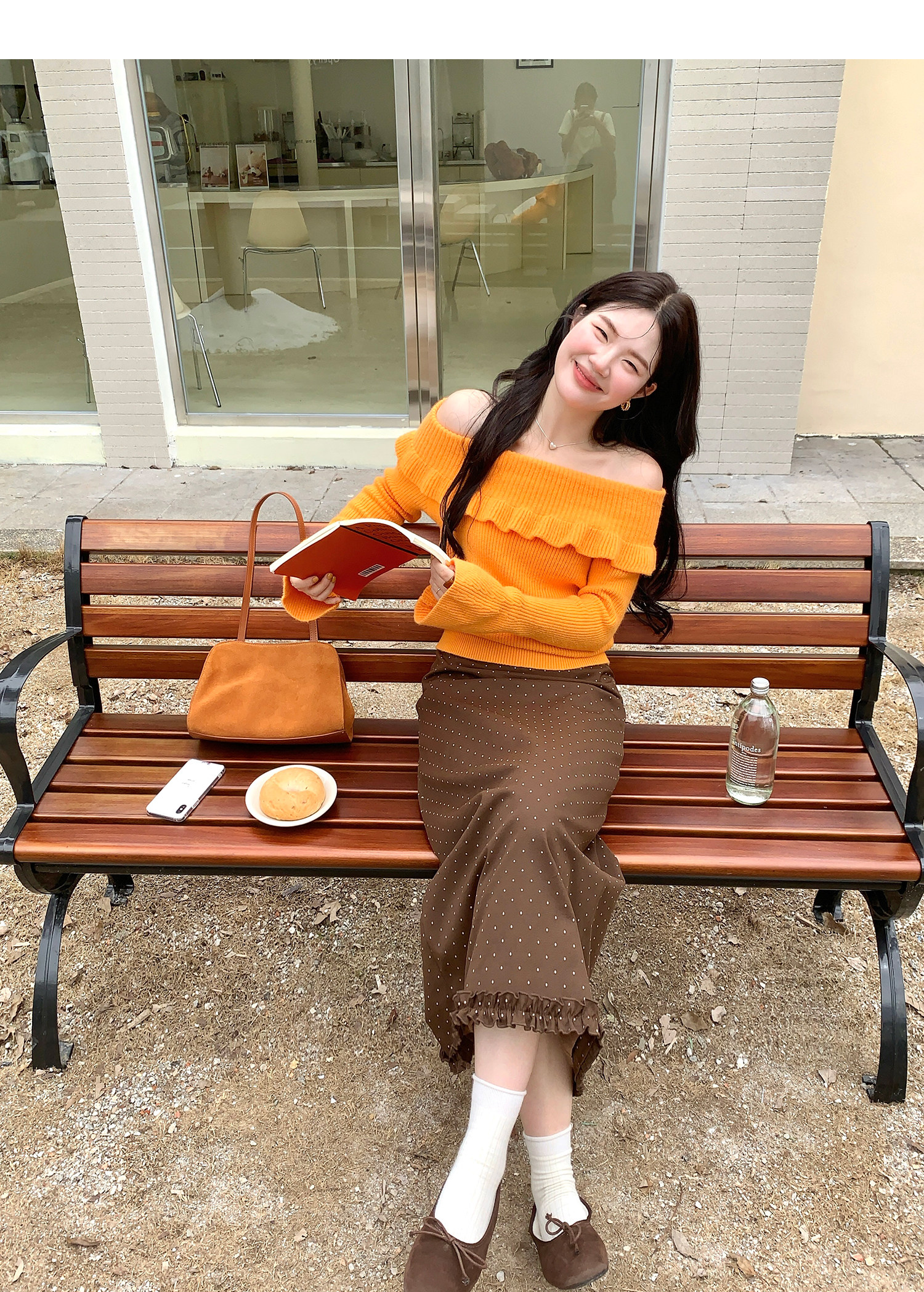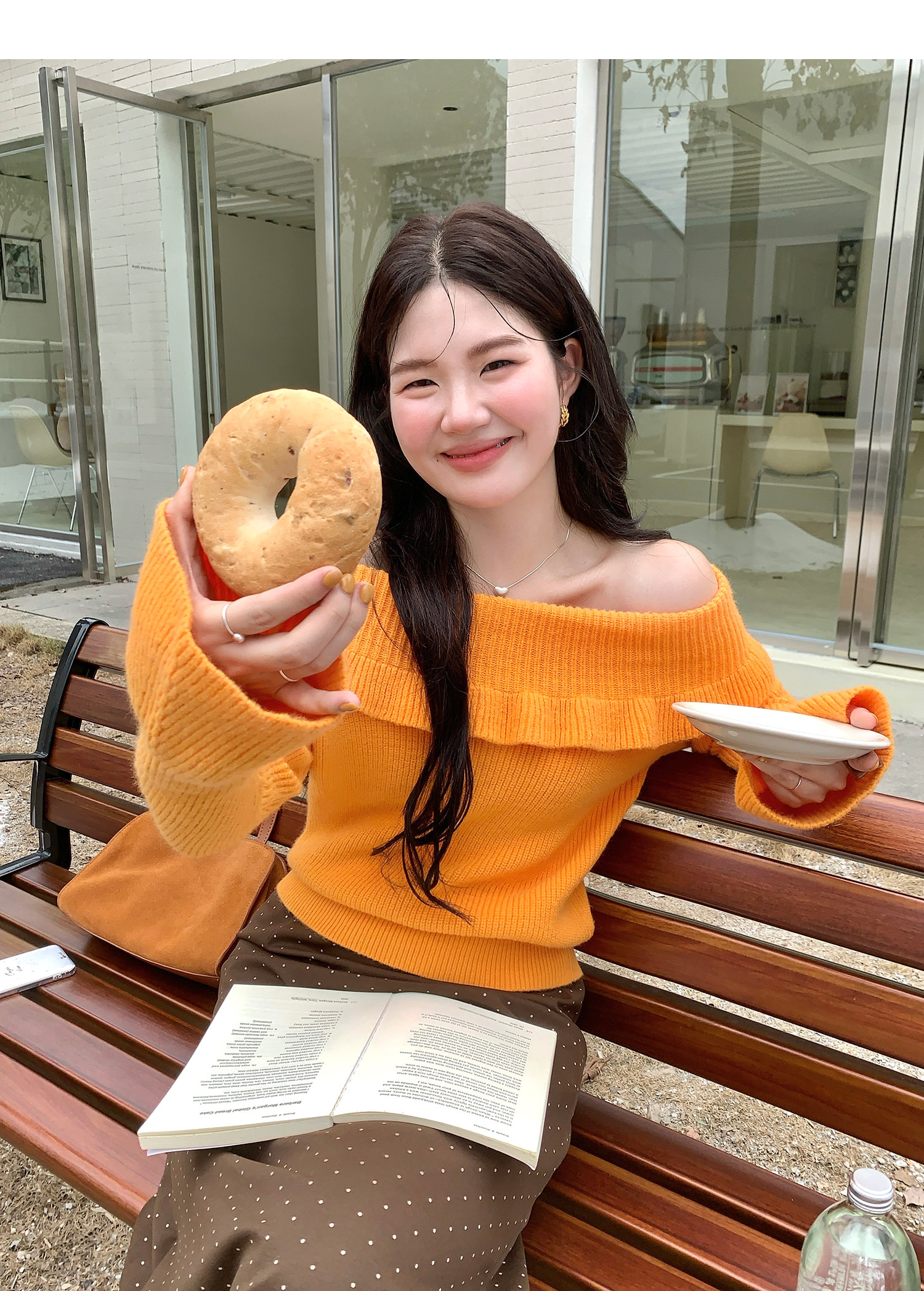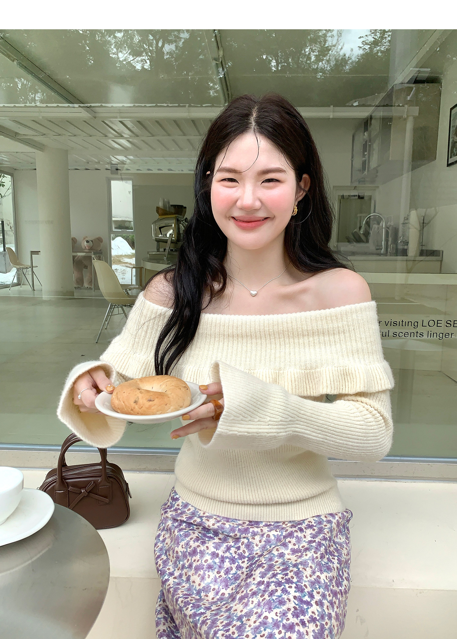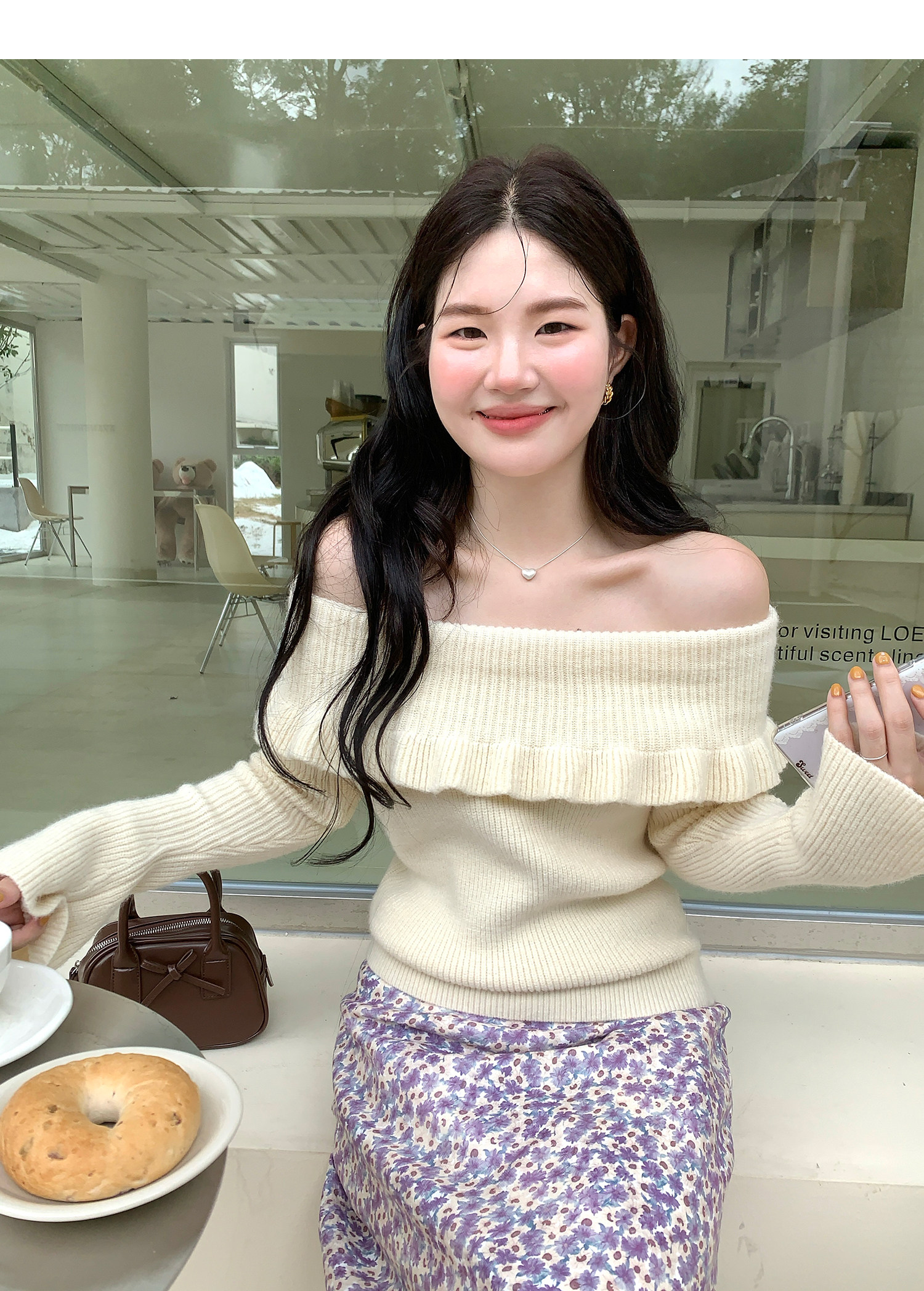 火火火【秋風微瀾】韓版溫柔風一字肩毛衣女修身露肩氣質針織衫