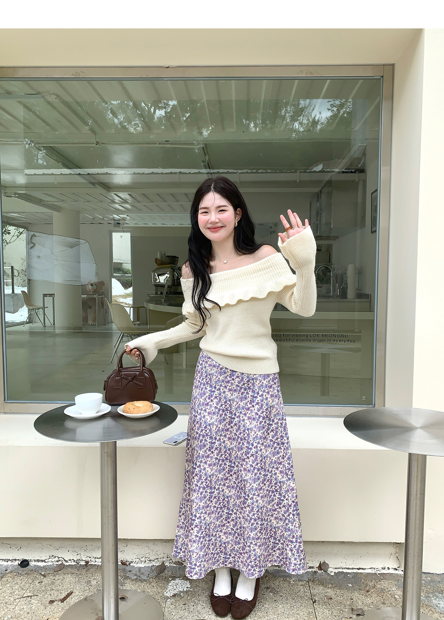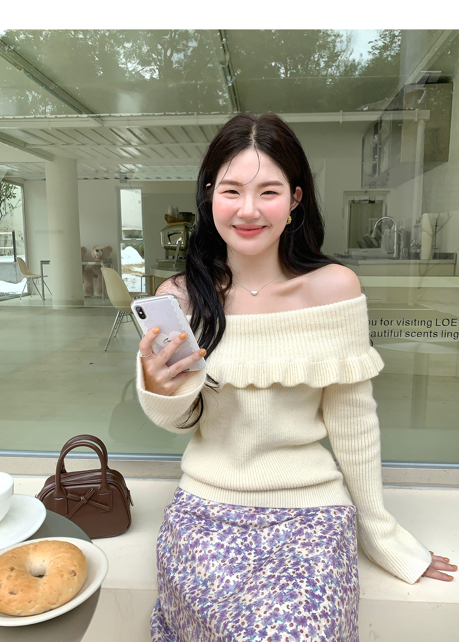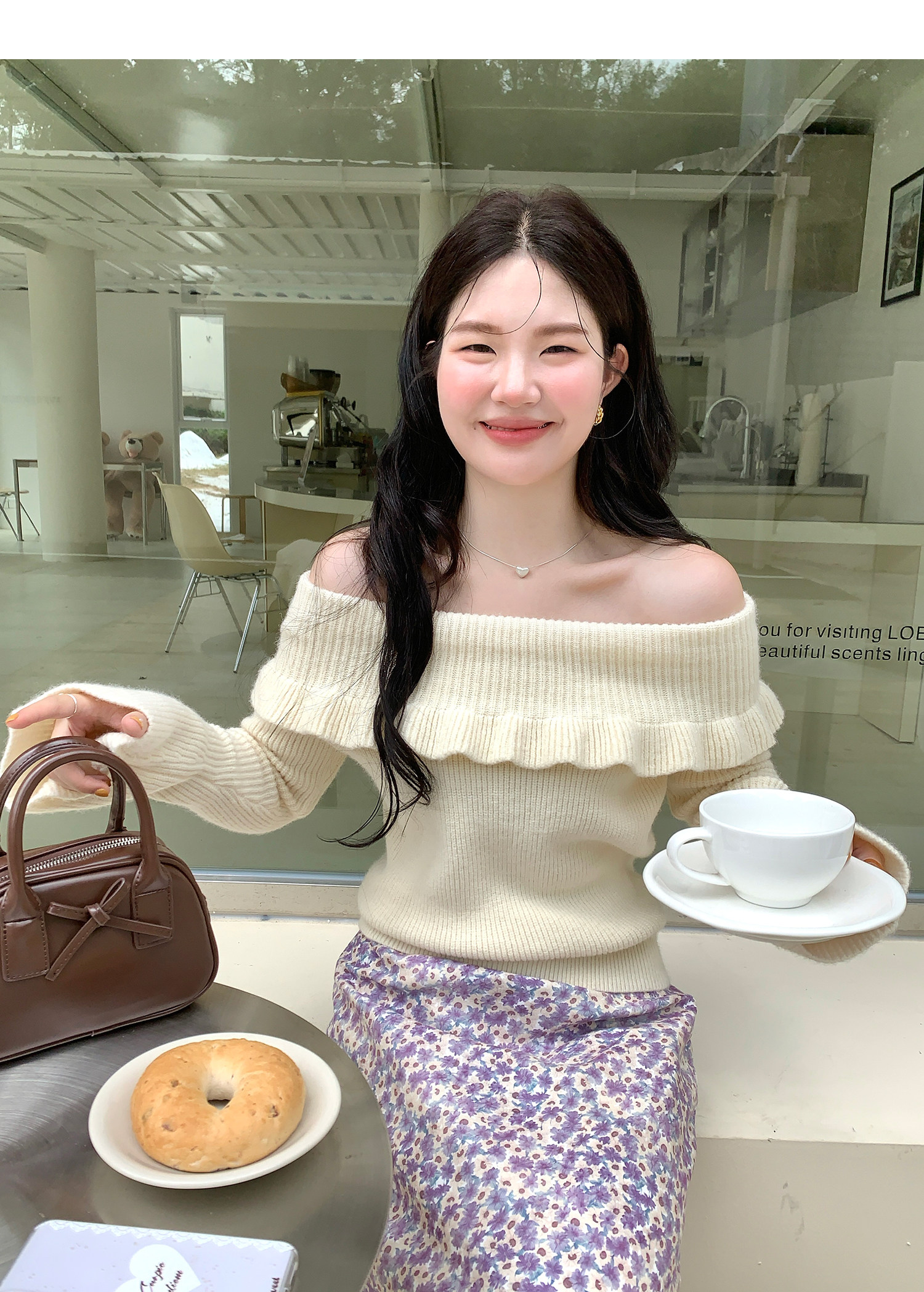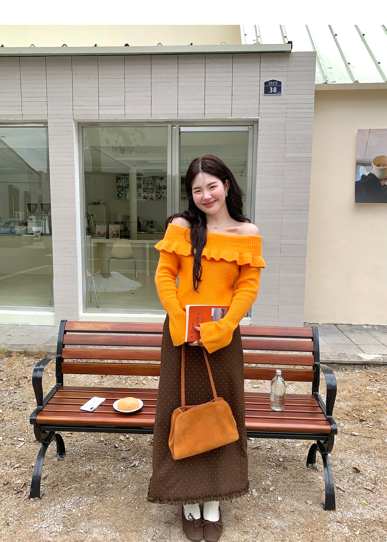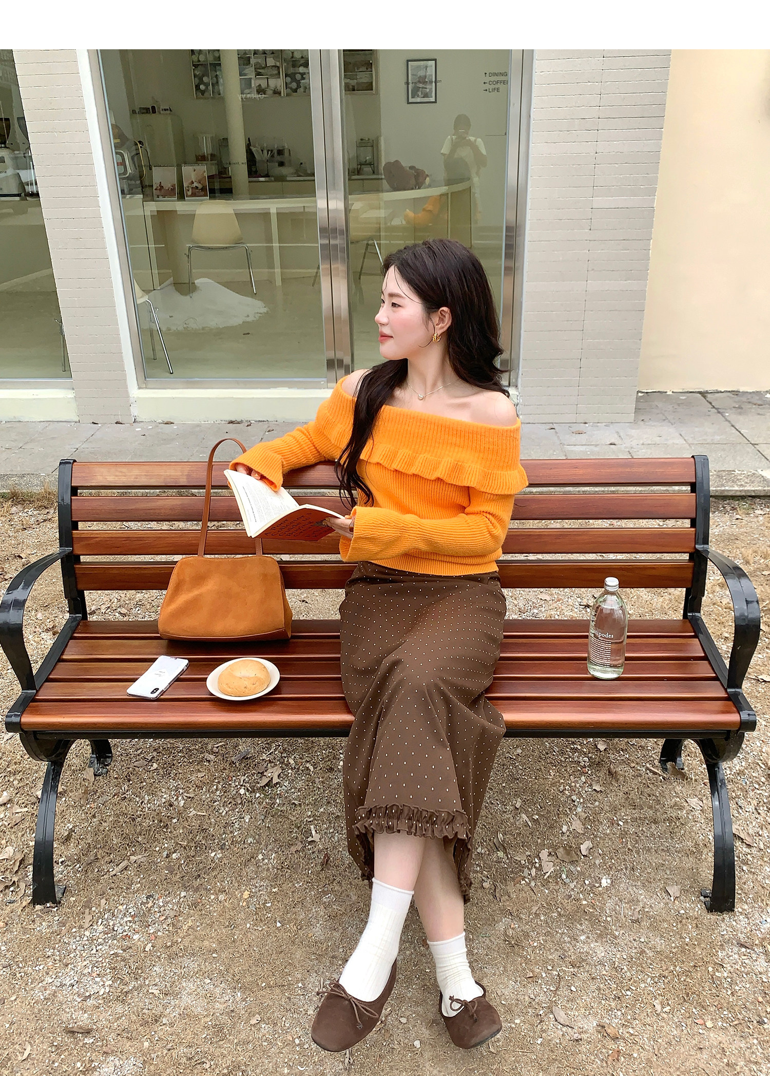 火火火【秋風微瀾】韓版溫柔風一字肩毛衣女修身露肩氣質針織衫