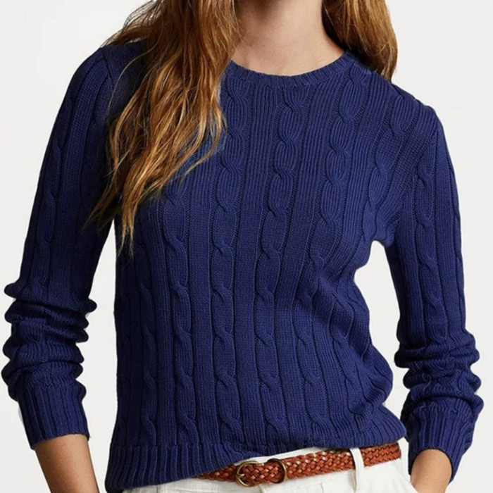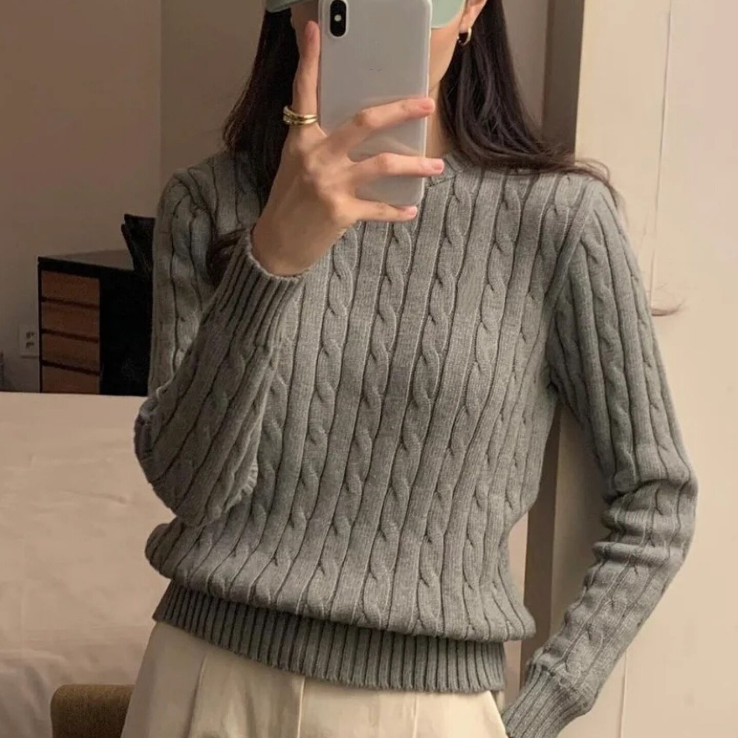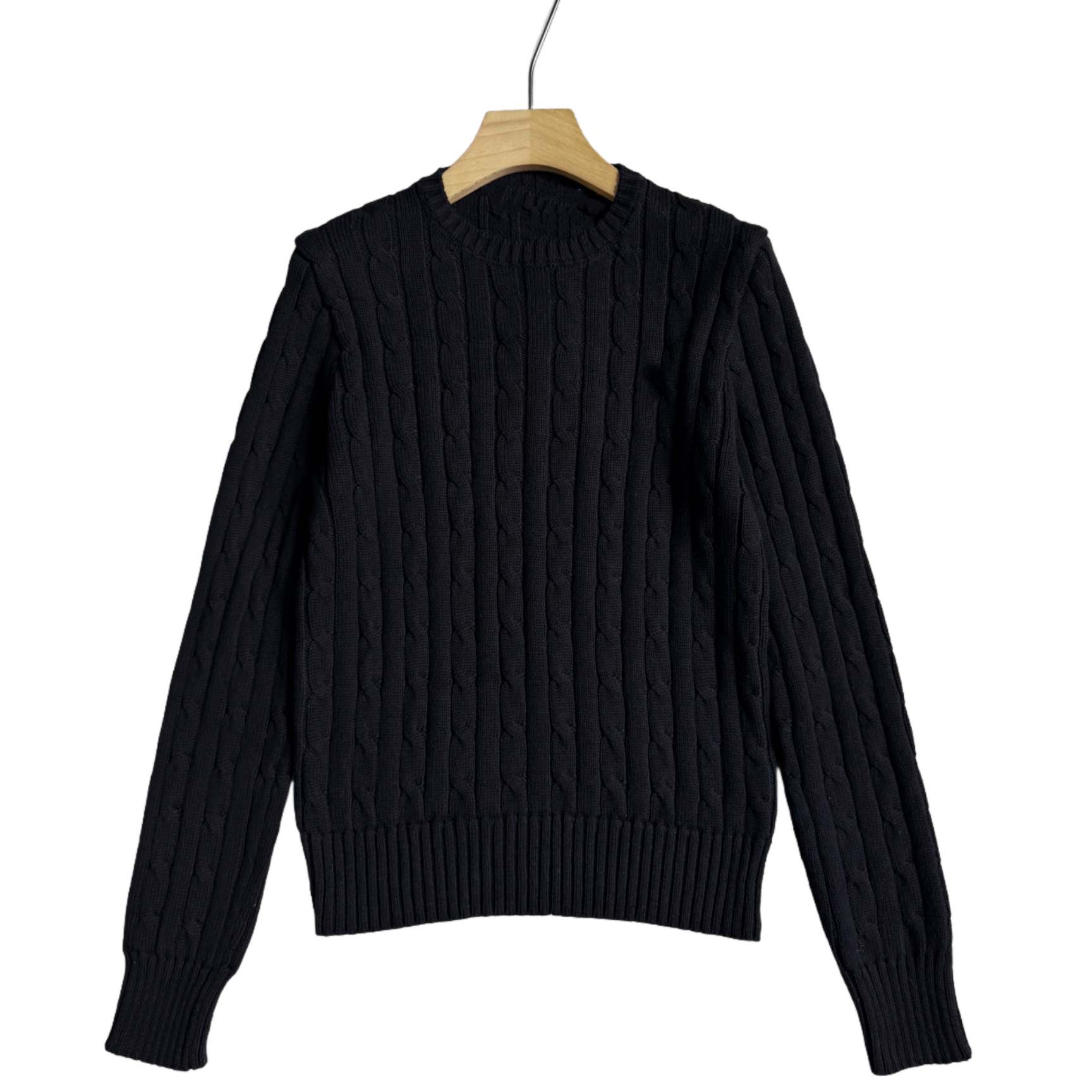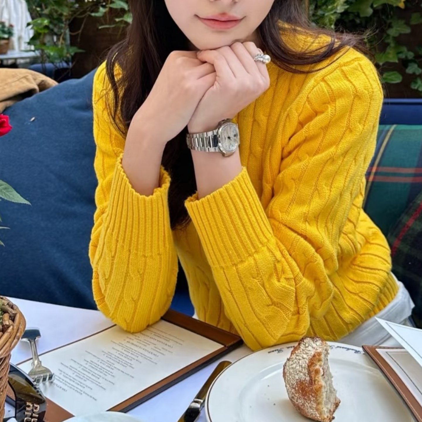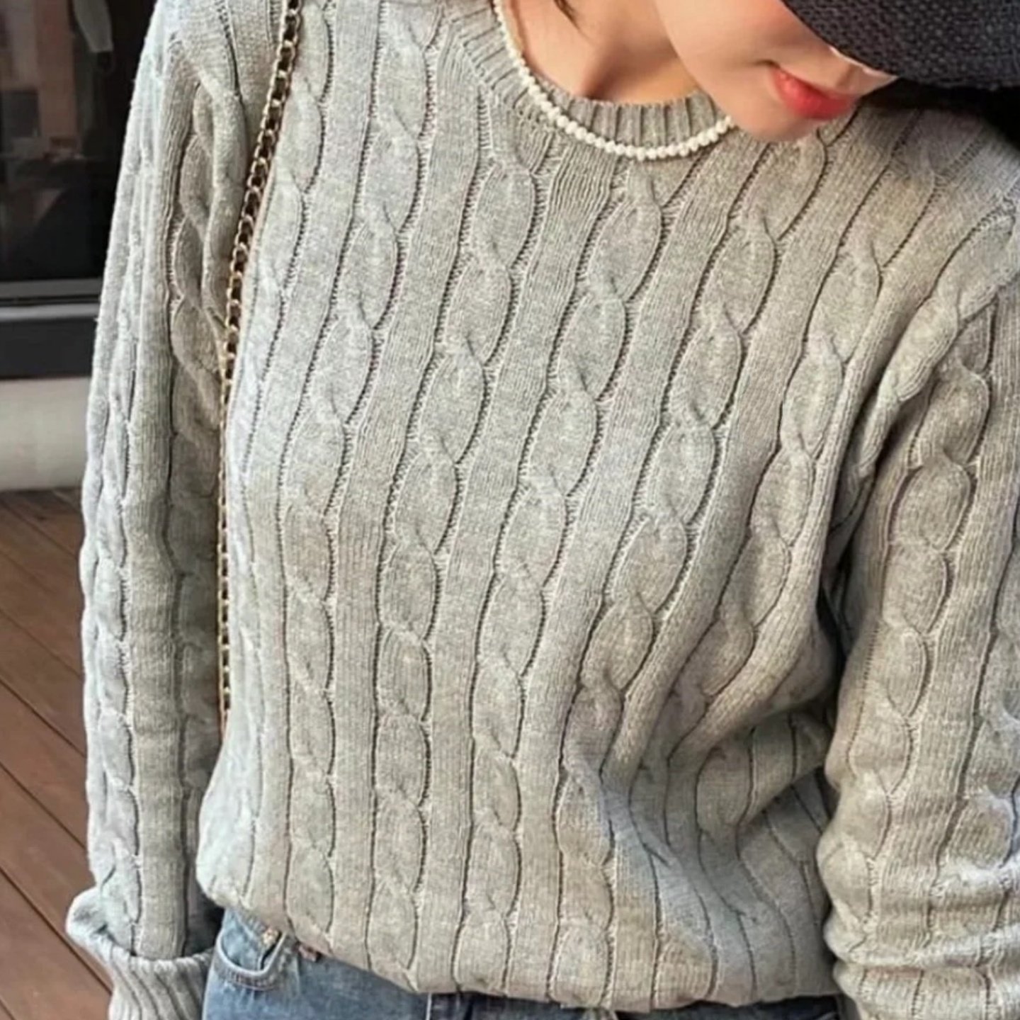 妞妞家秋季新品女士純棉圓領復古麻花長袖經典百搭套頭毛衣8590