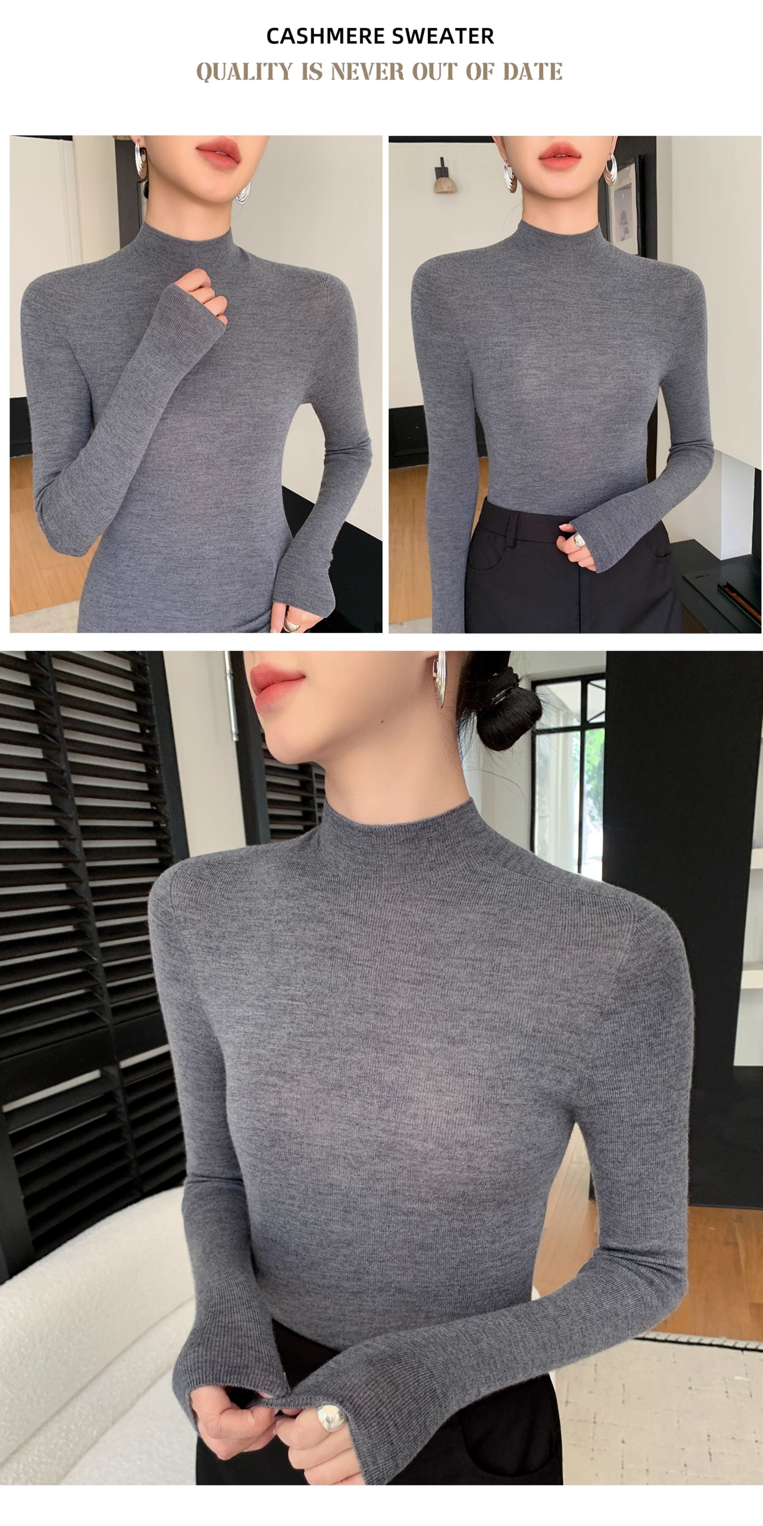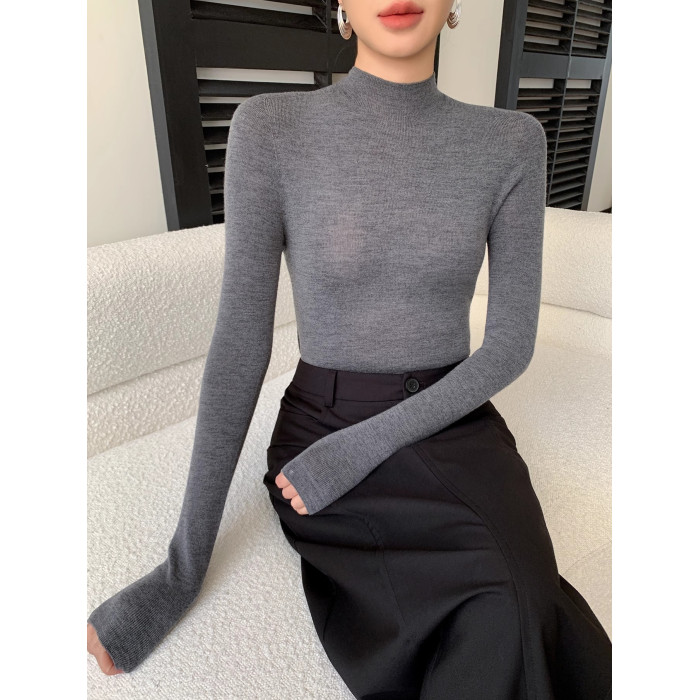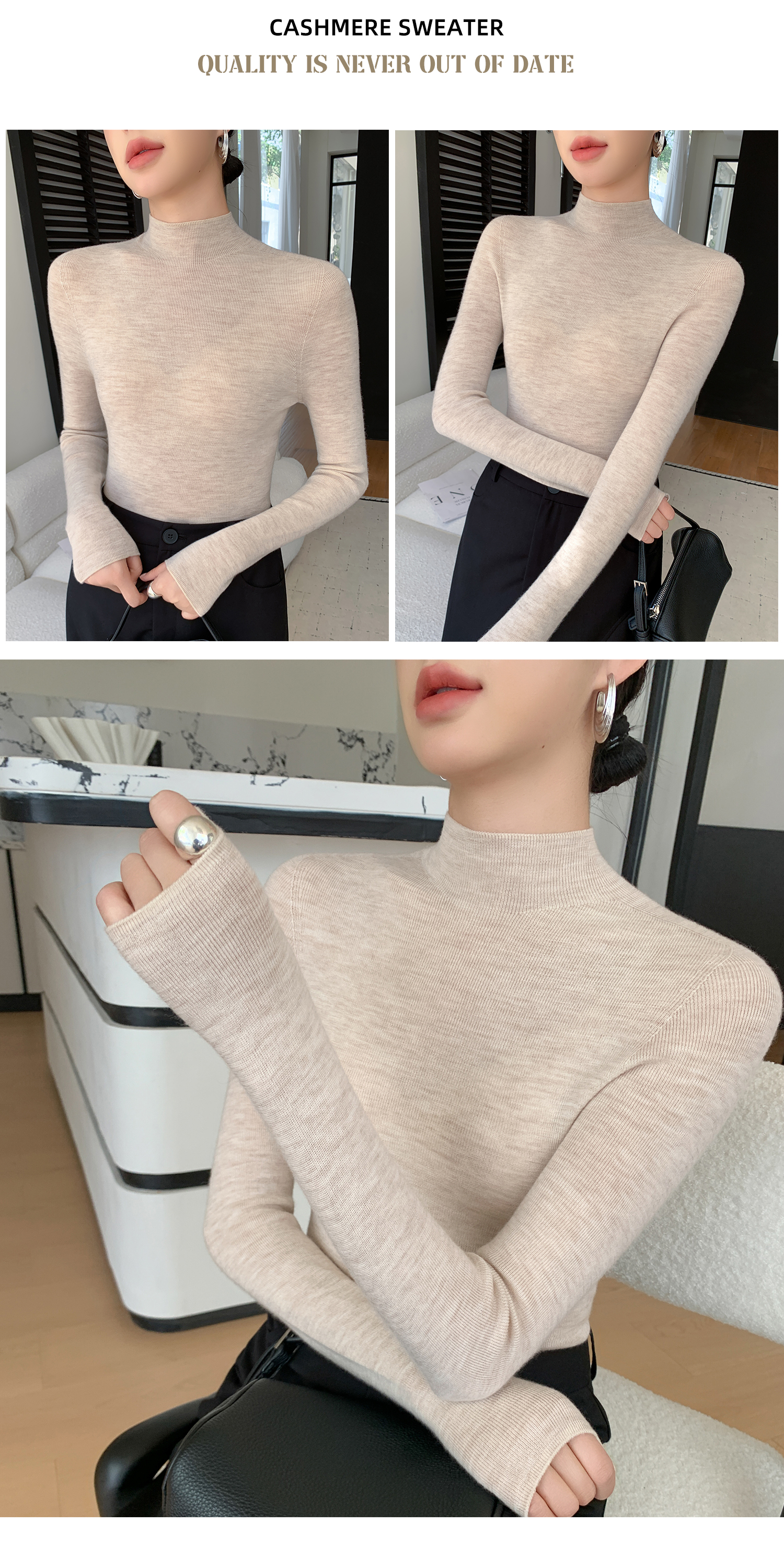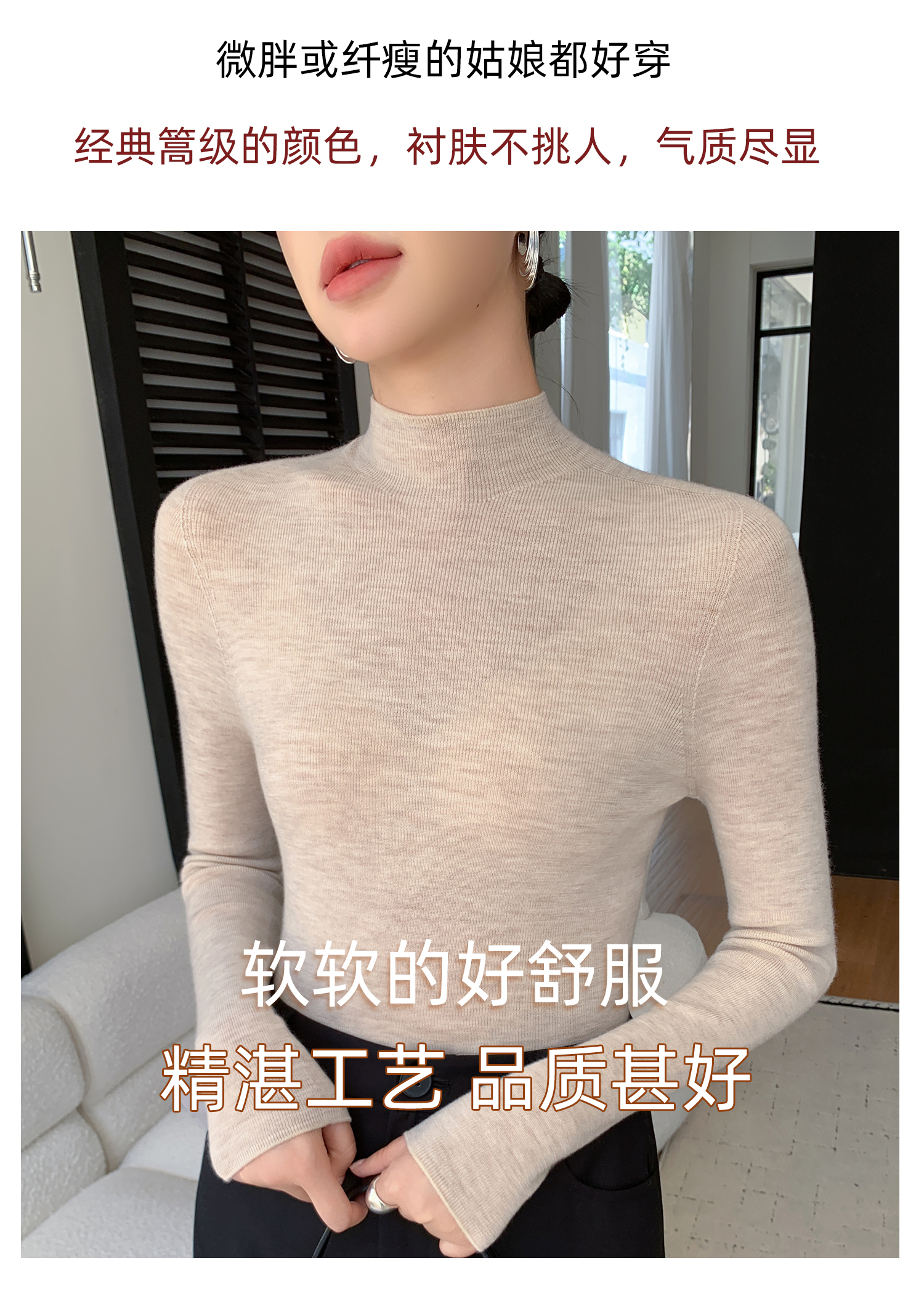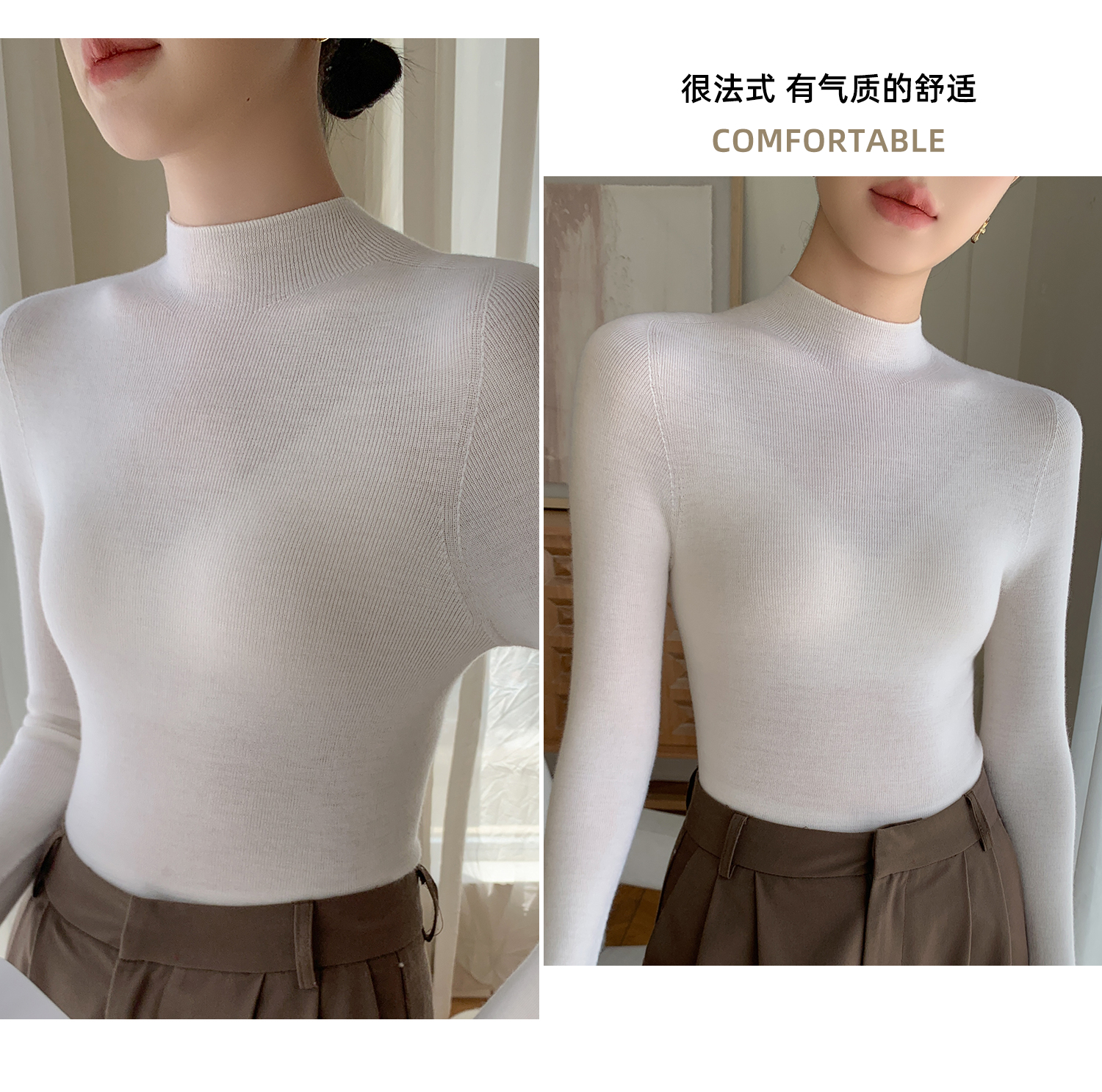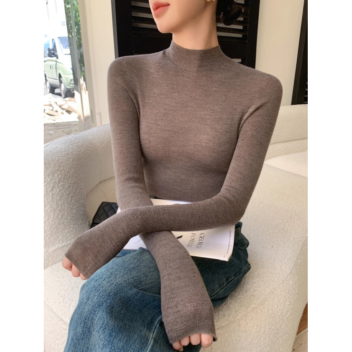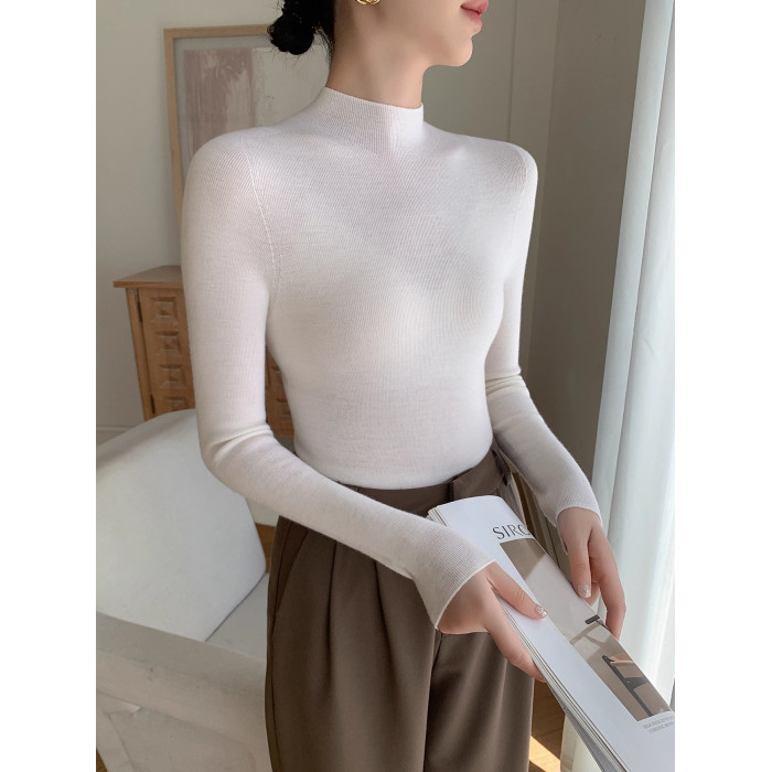 鄂爾多斯市羊絨衫女半高領修身顯瘦秋冬細羊毛打底衫薄款內搭毛衣