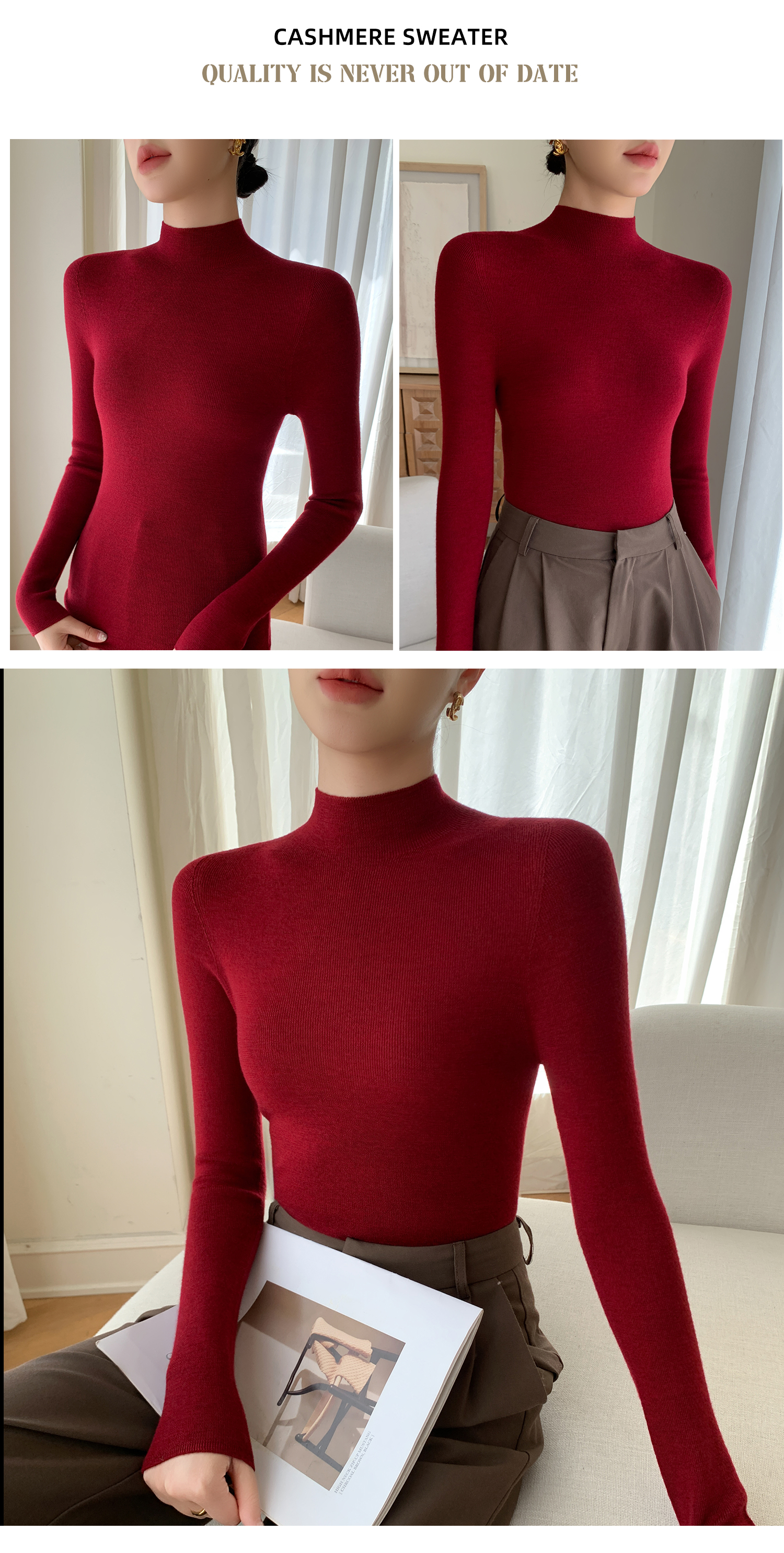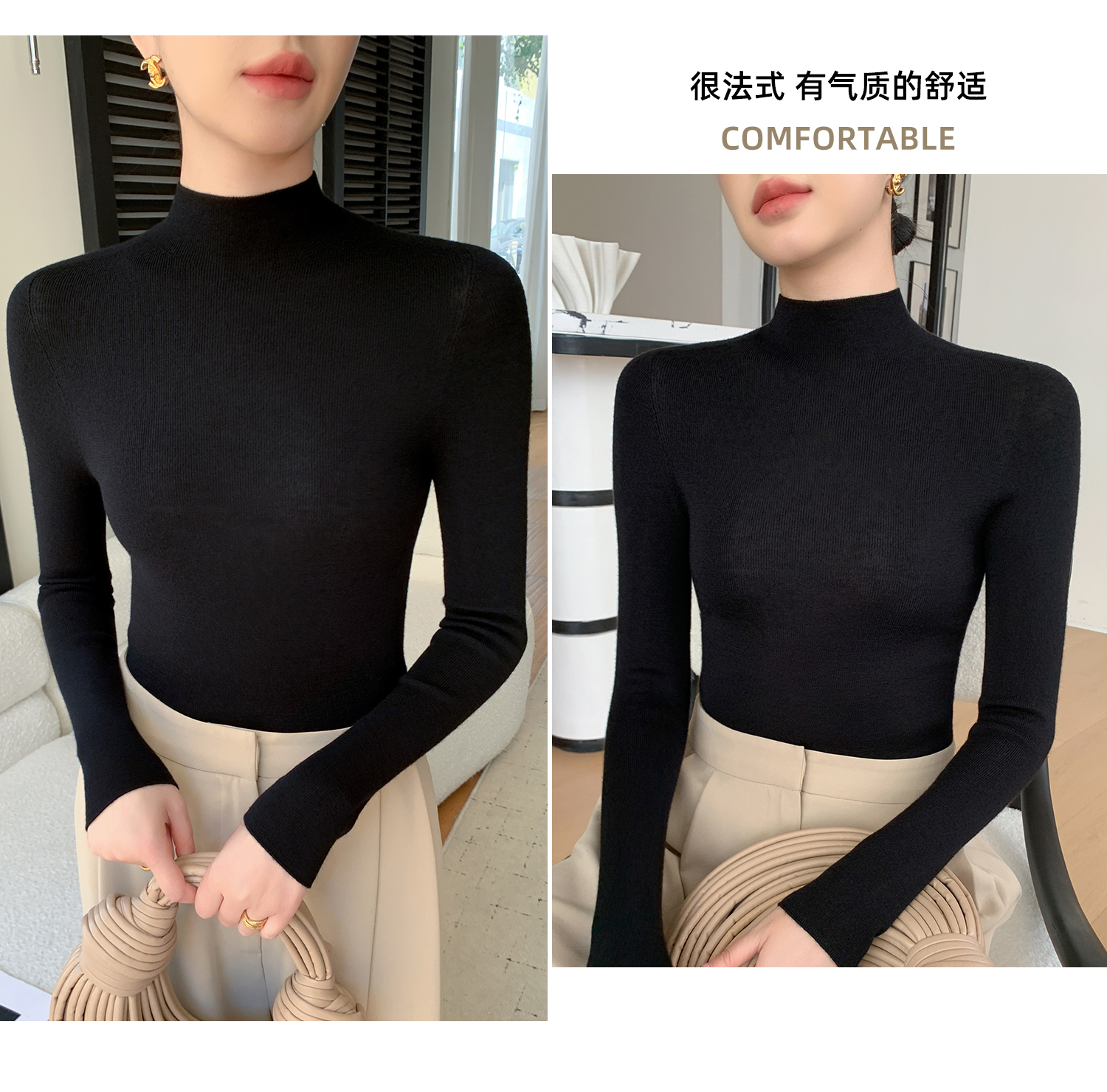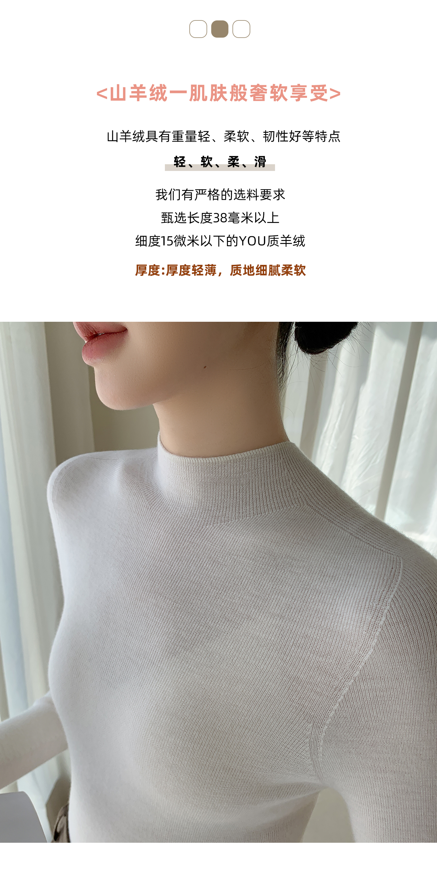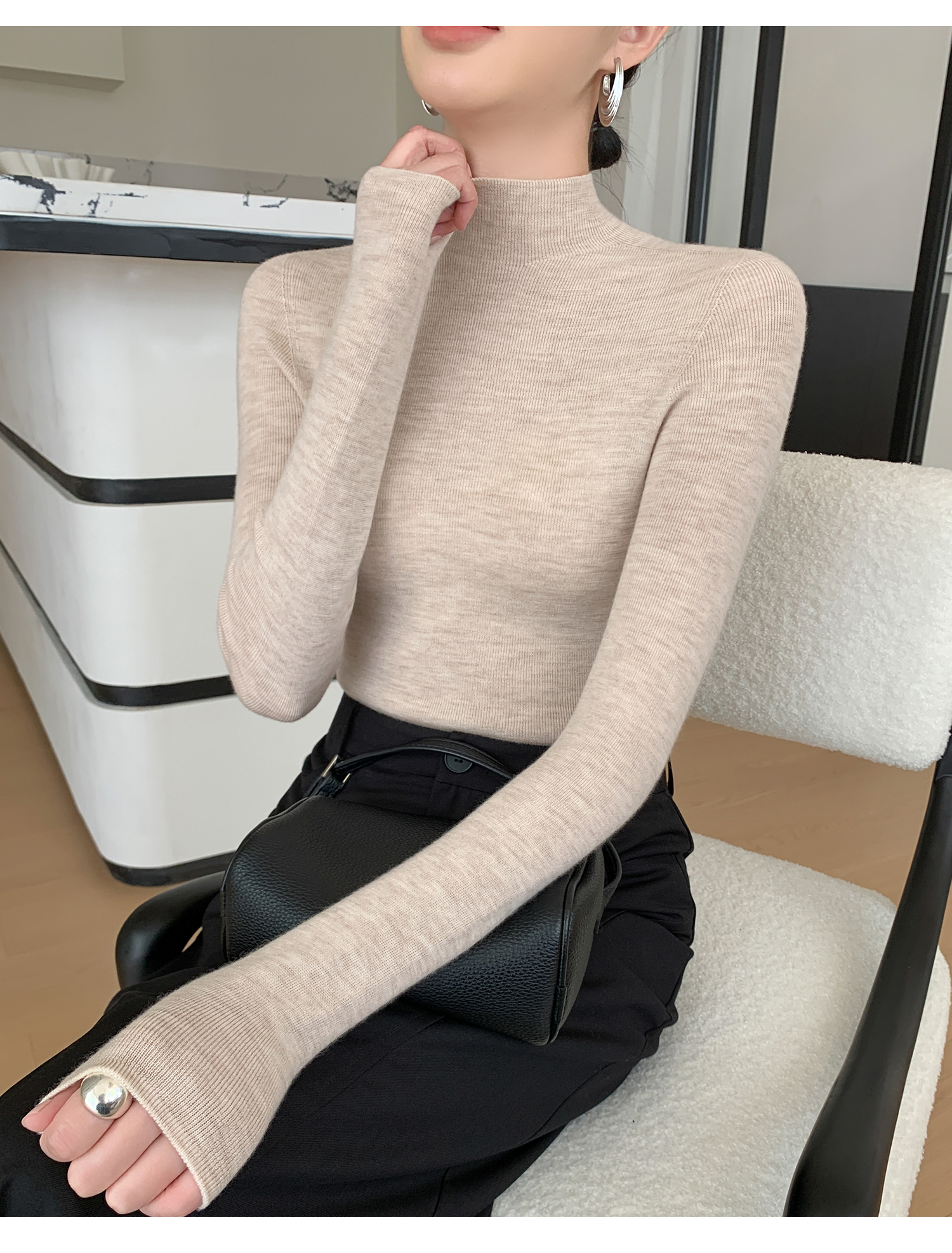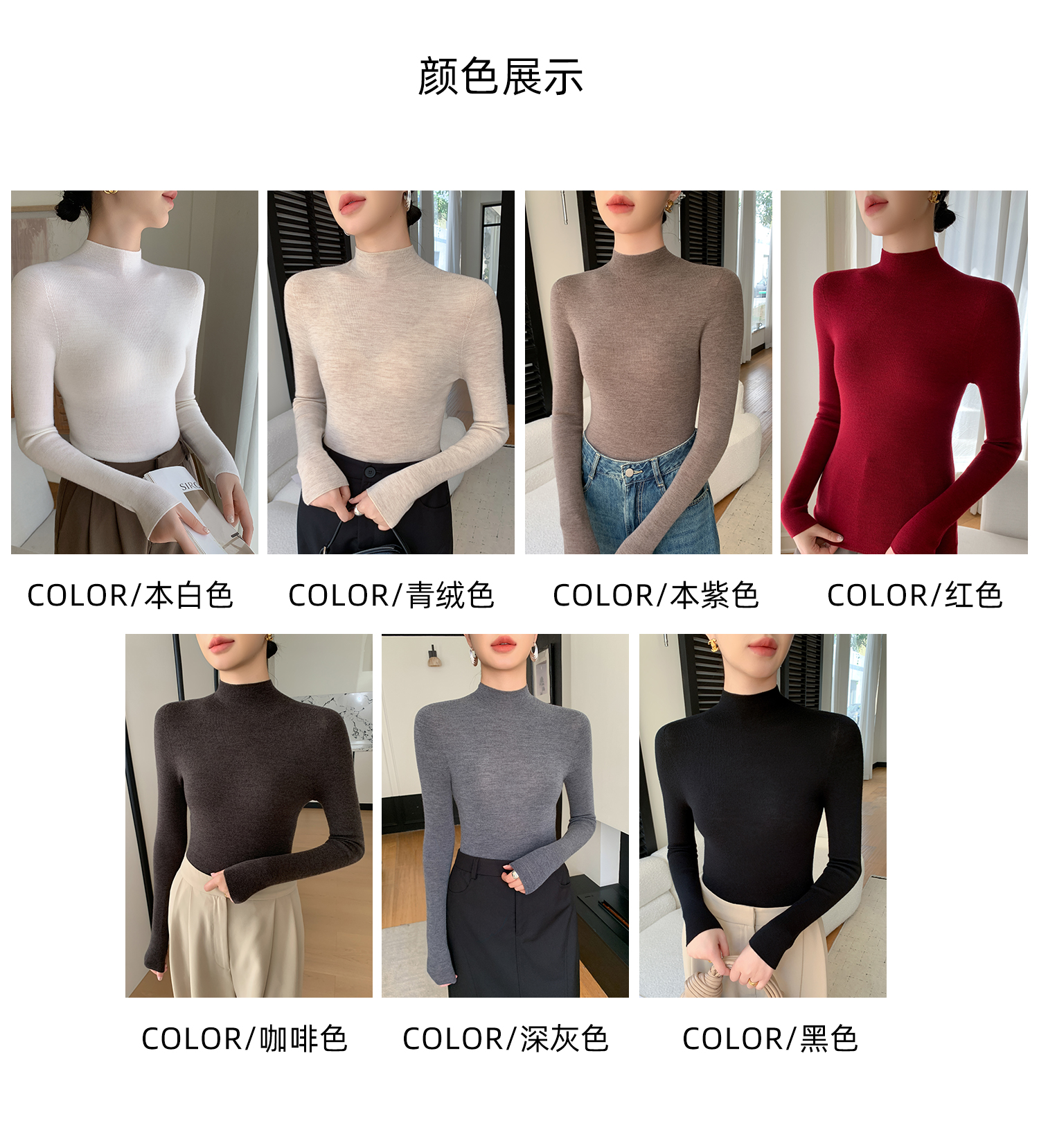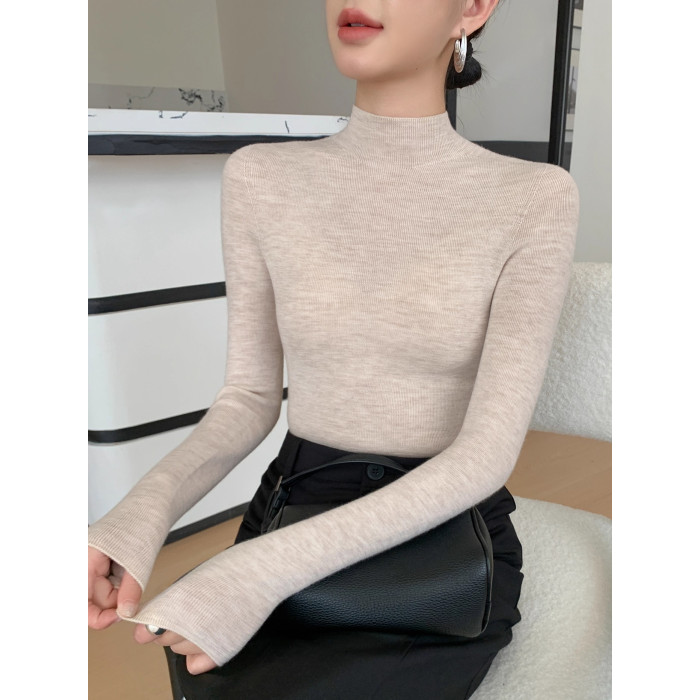 鄂爾多斯市羊絨衫女半高領修身顯瘦秋冬細羊毛打底衫薄款內搭毛衣