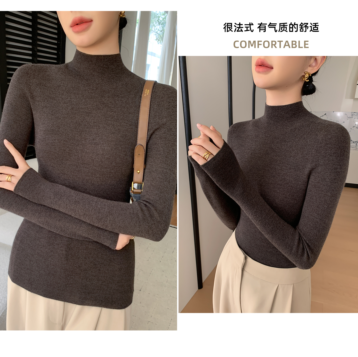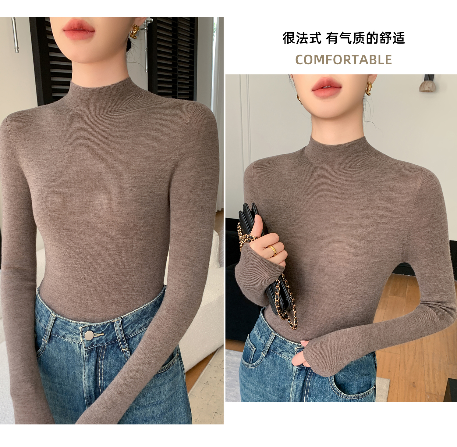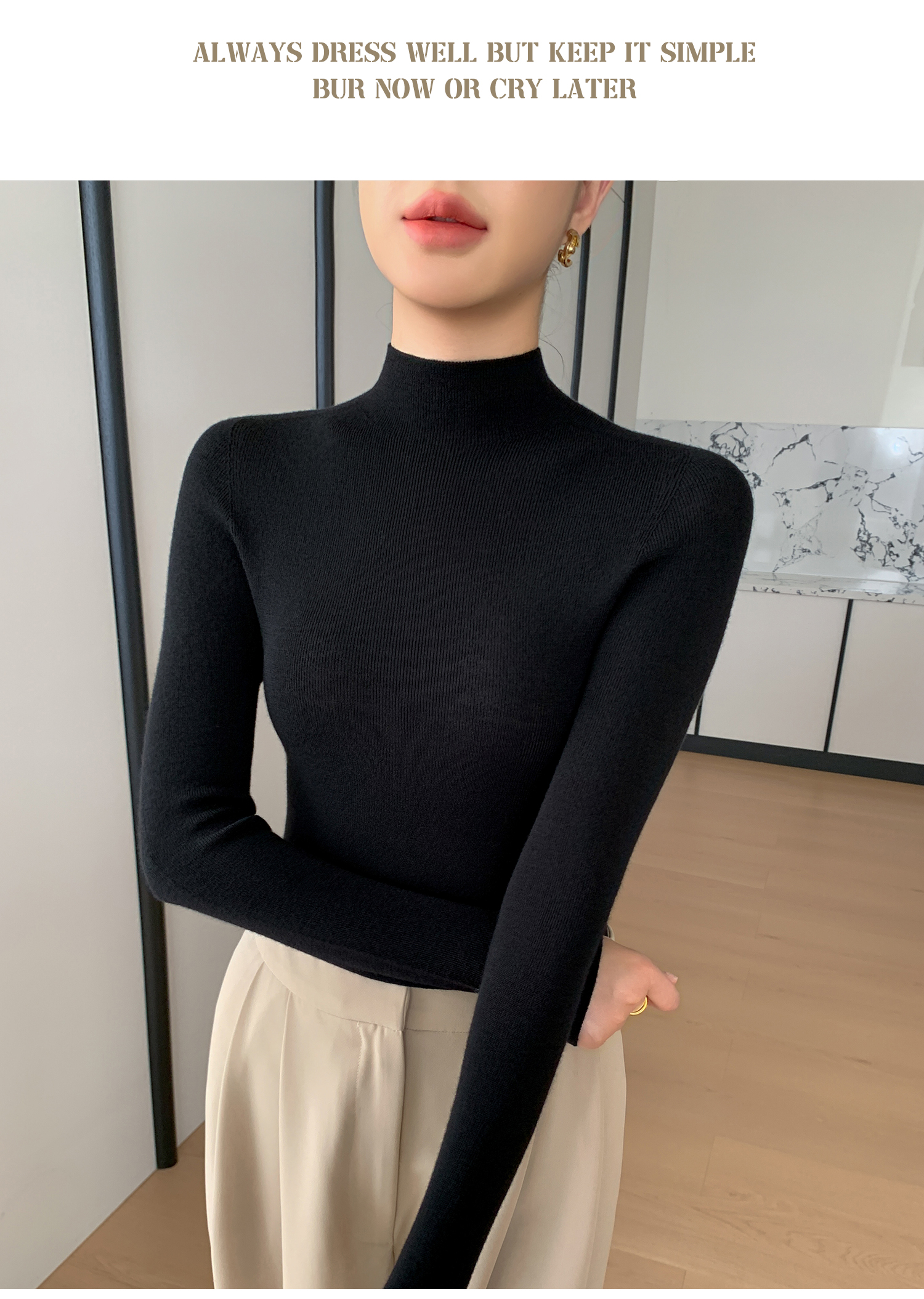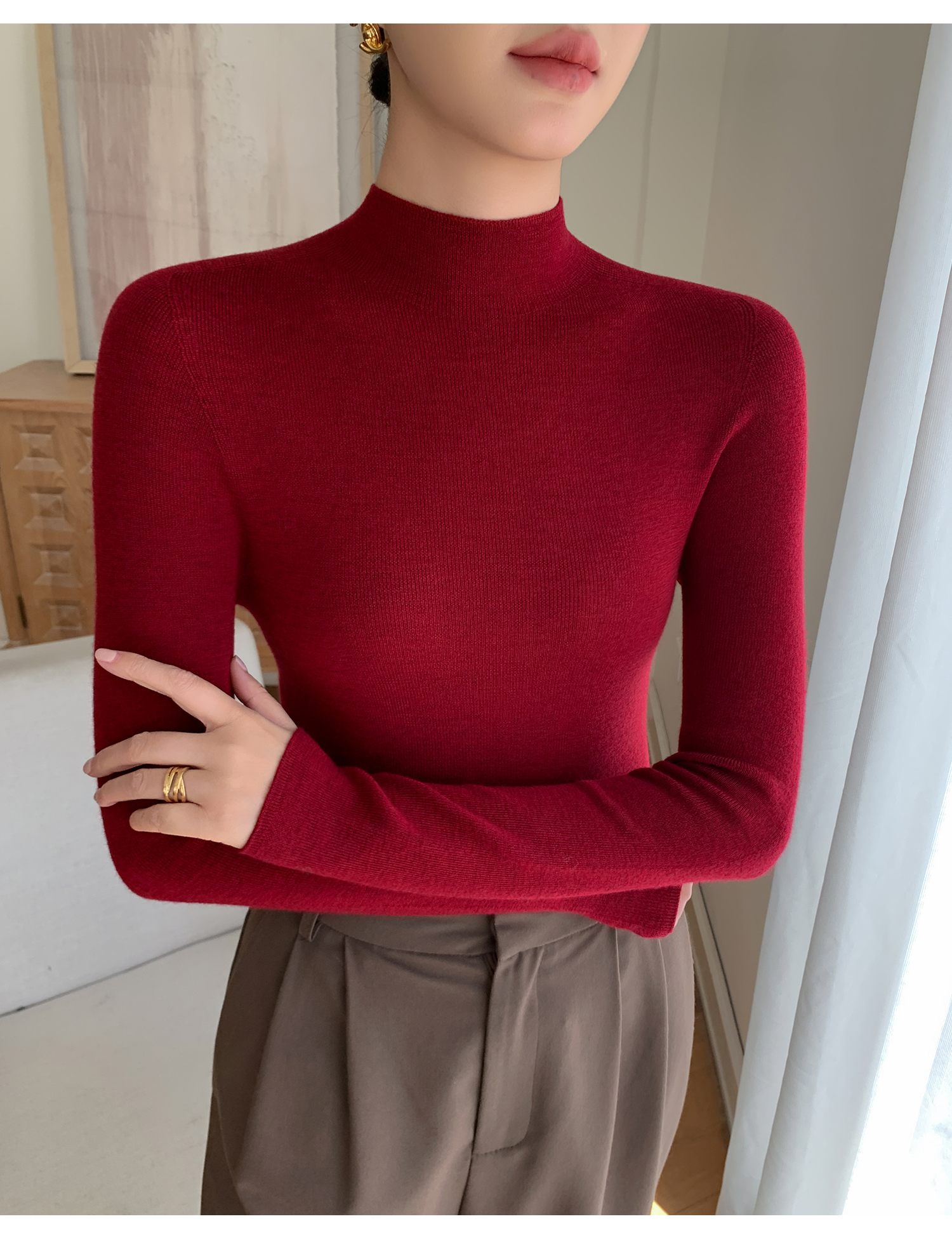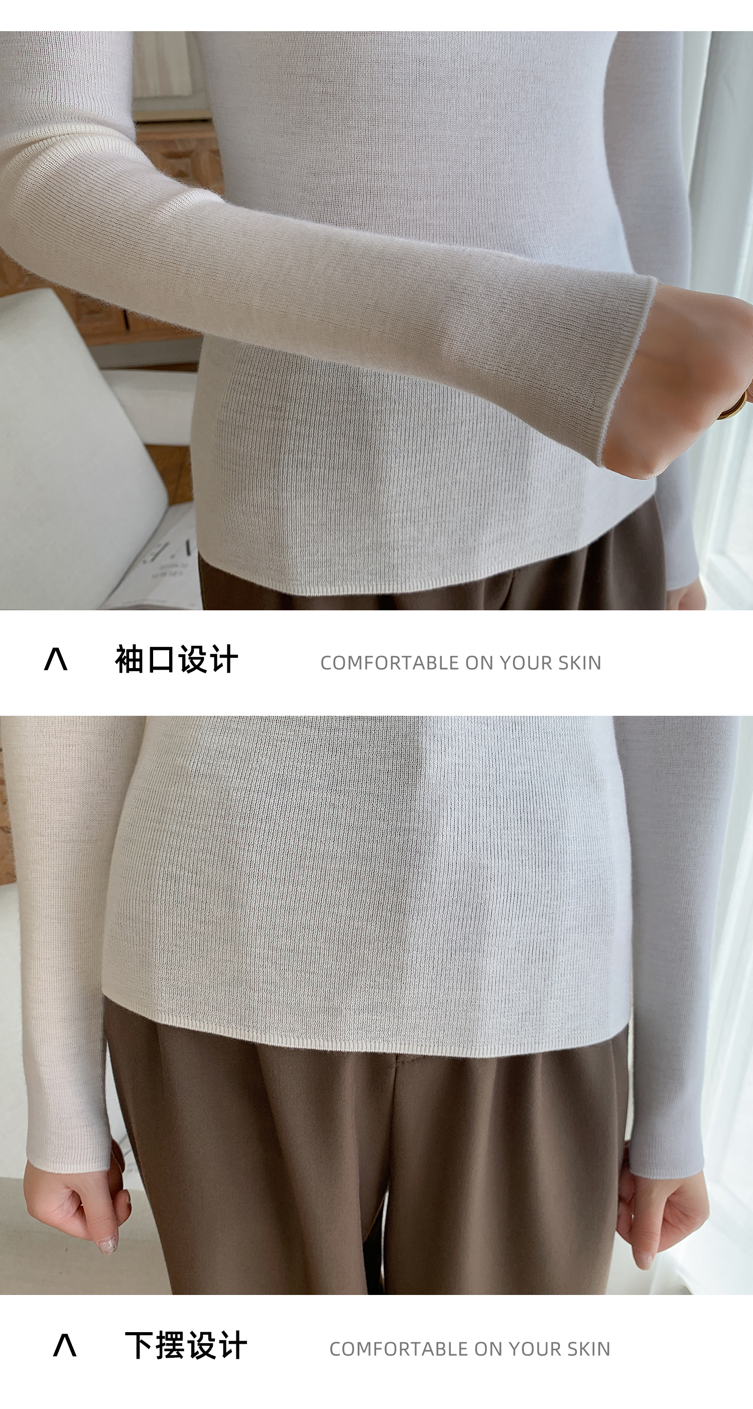 鄂爾多斯市羊絨衫女半高領修身顯瘦秋冬細羊毛打底衫薄款內搭毛衣
