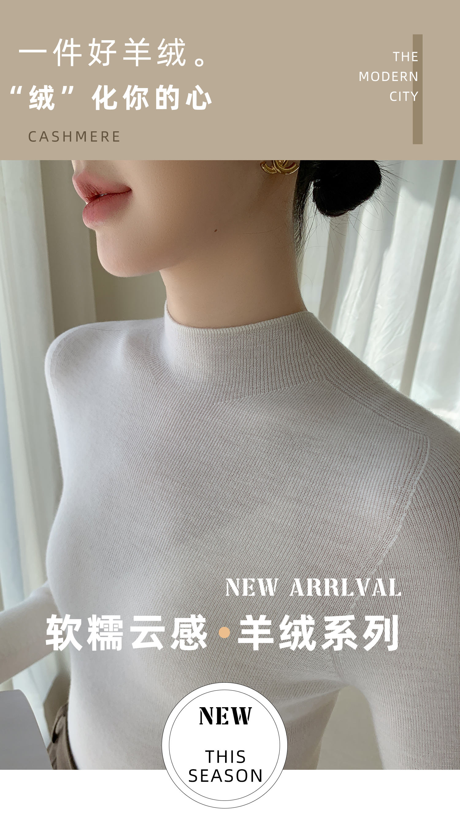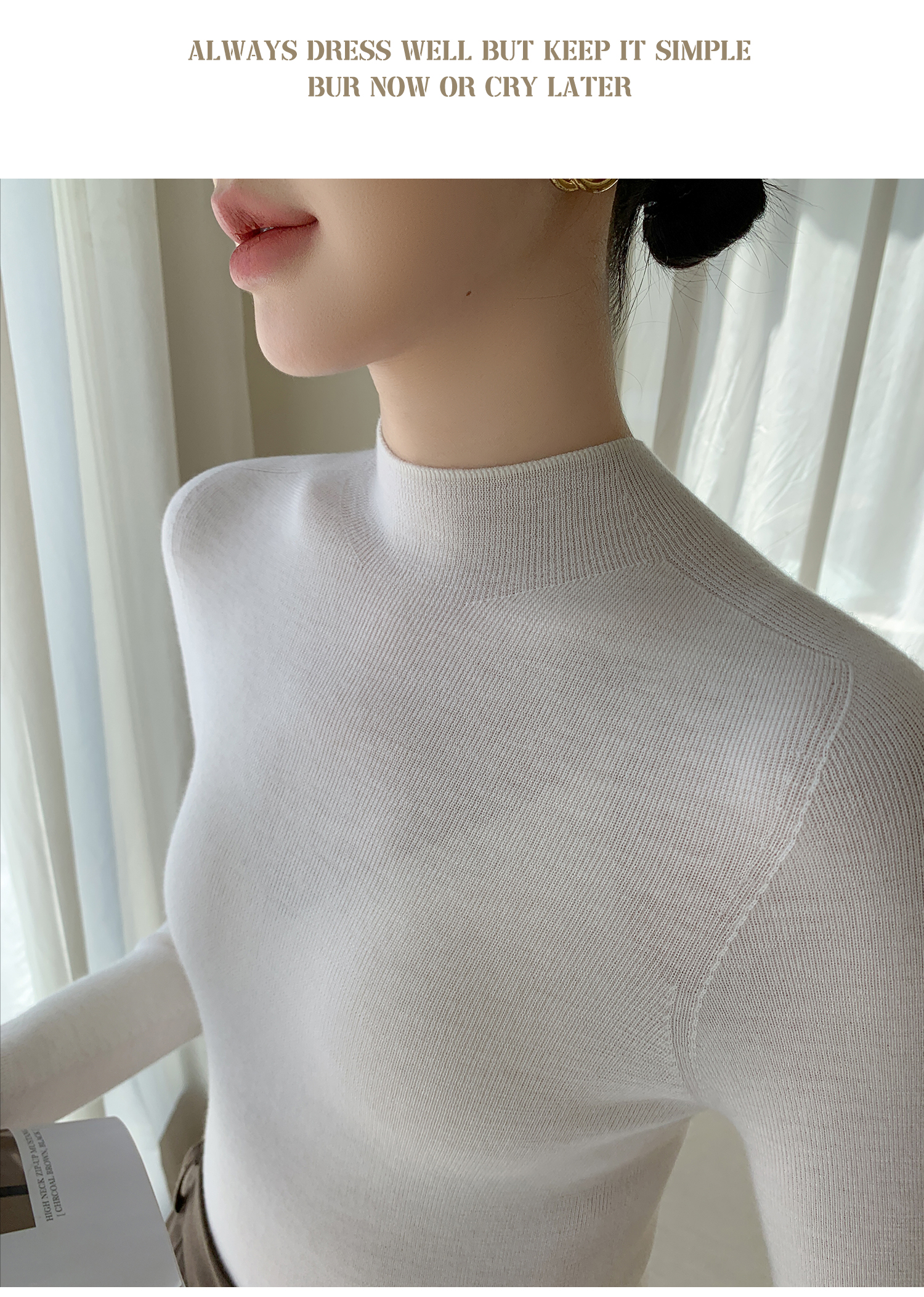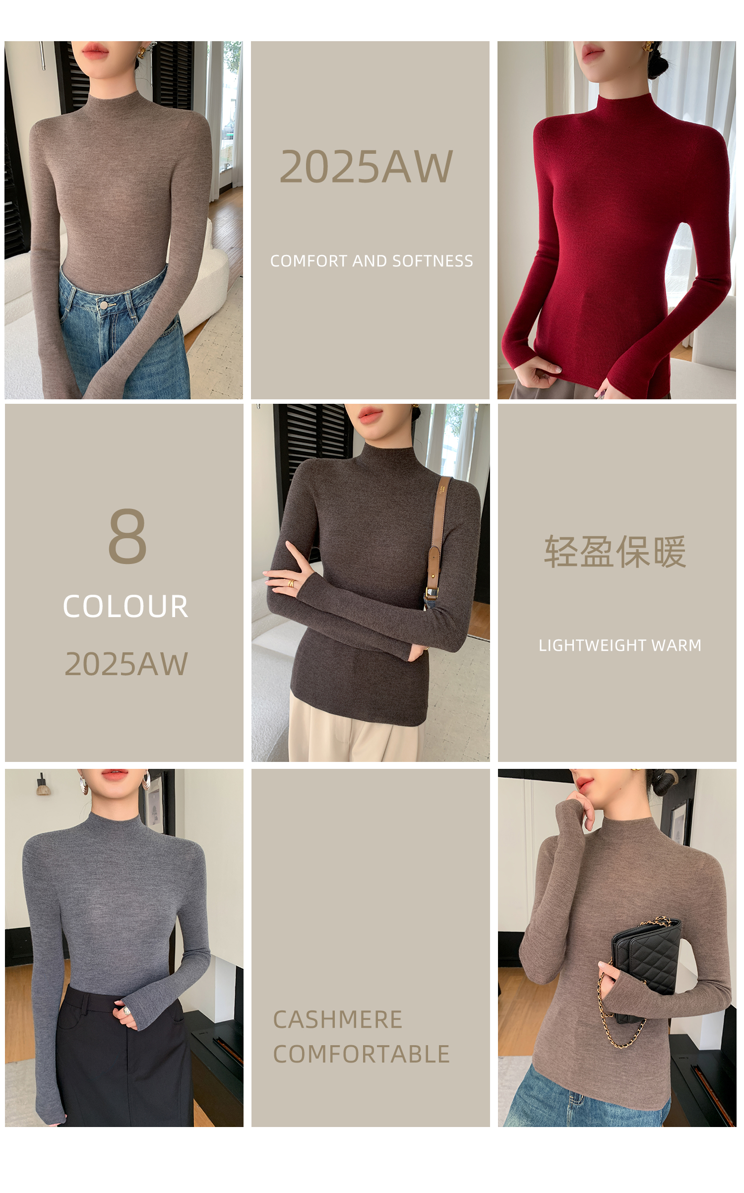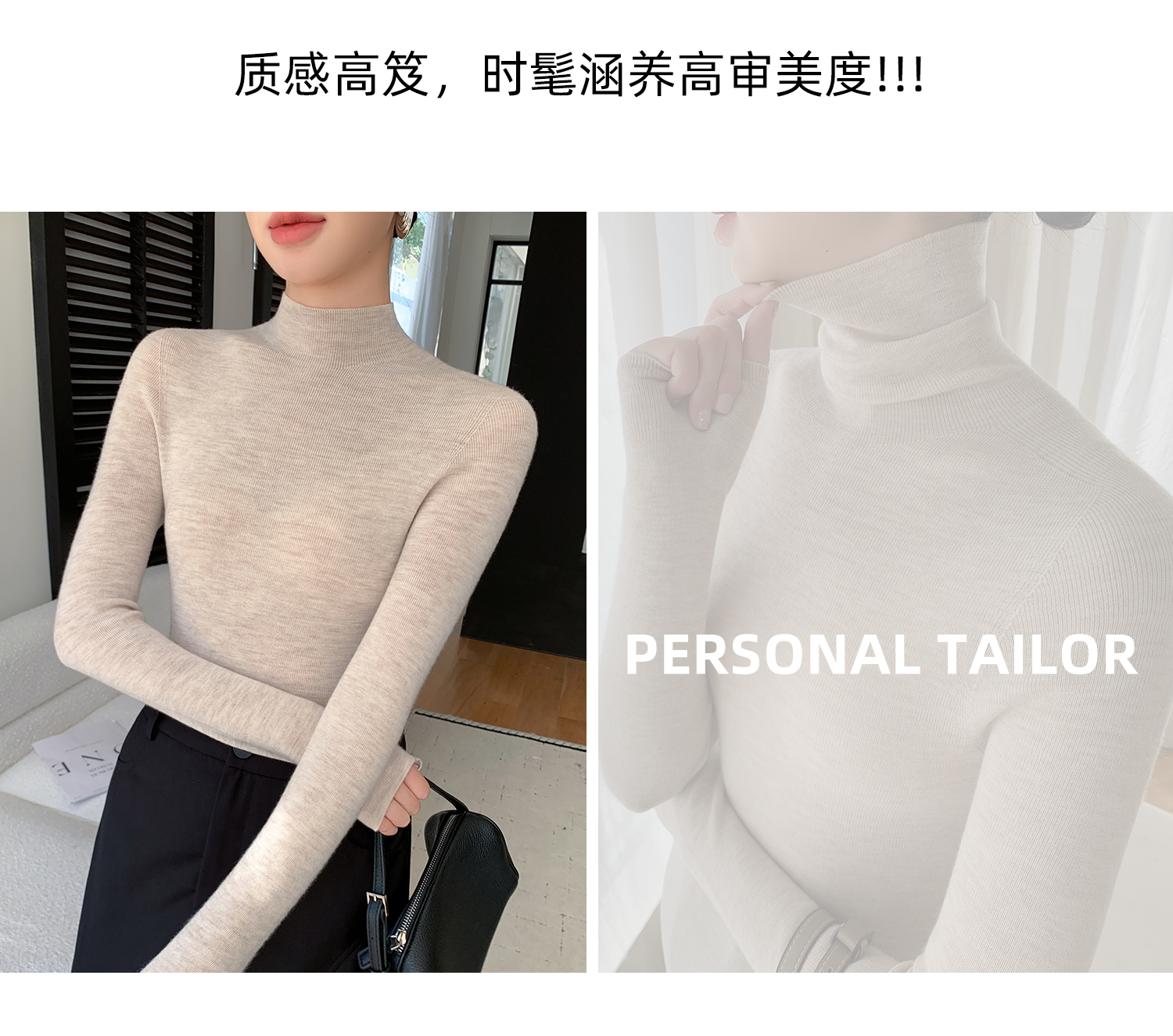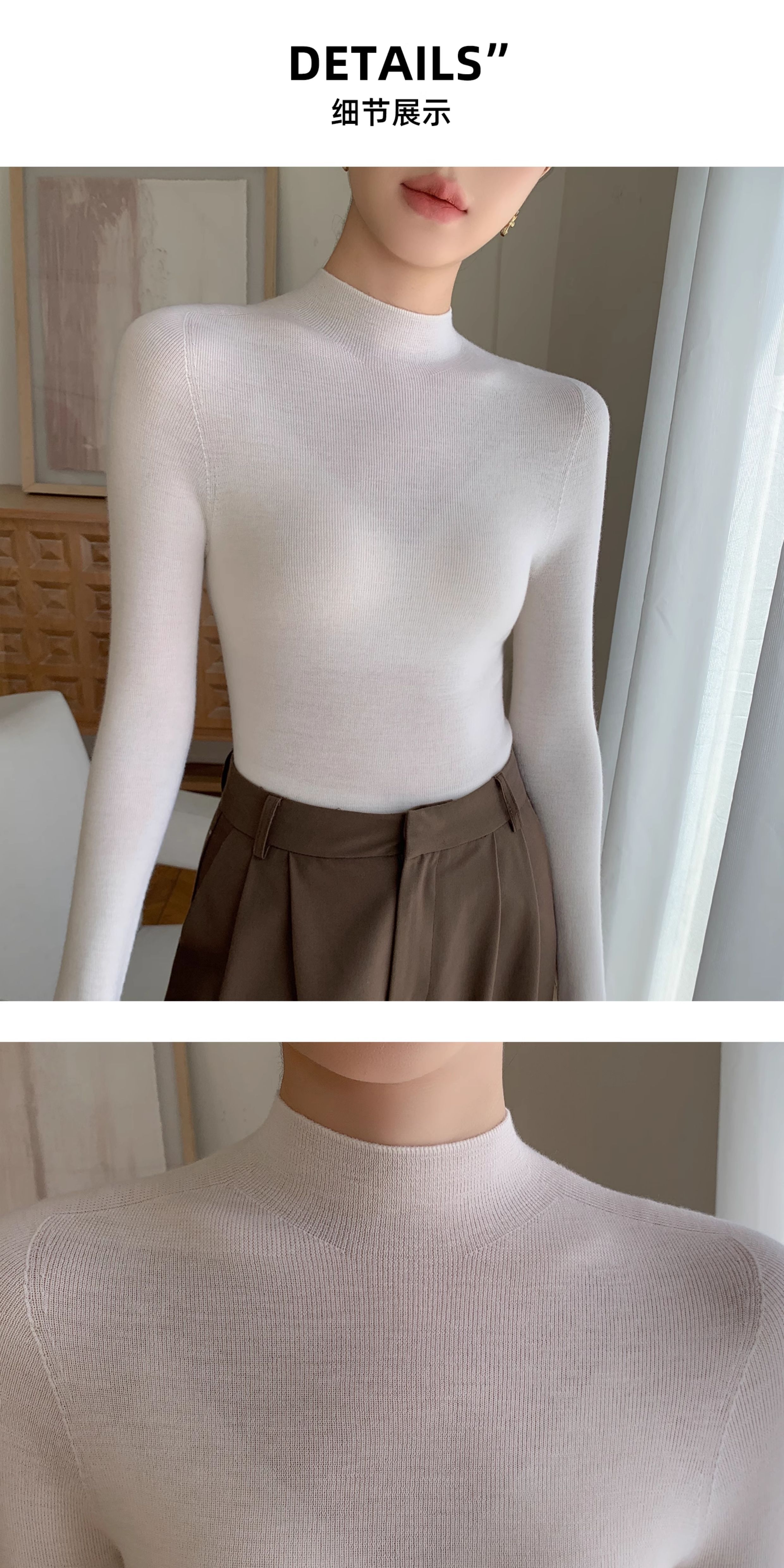 鄂爾多斯市羊絨衫女半高領修身顯瘦秋冬細羊毛打底衫薄款內搭毛衣