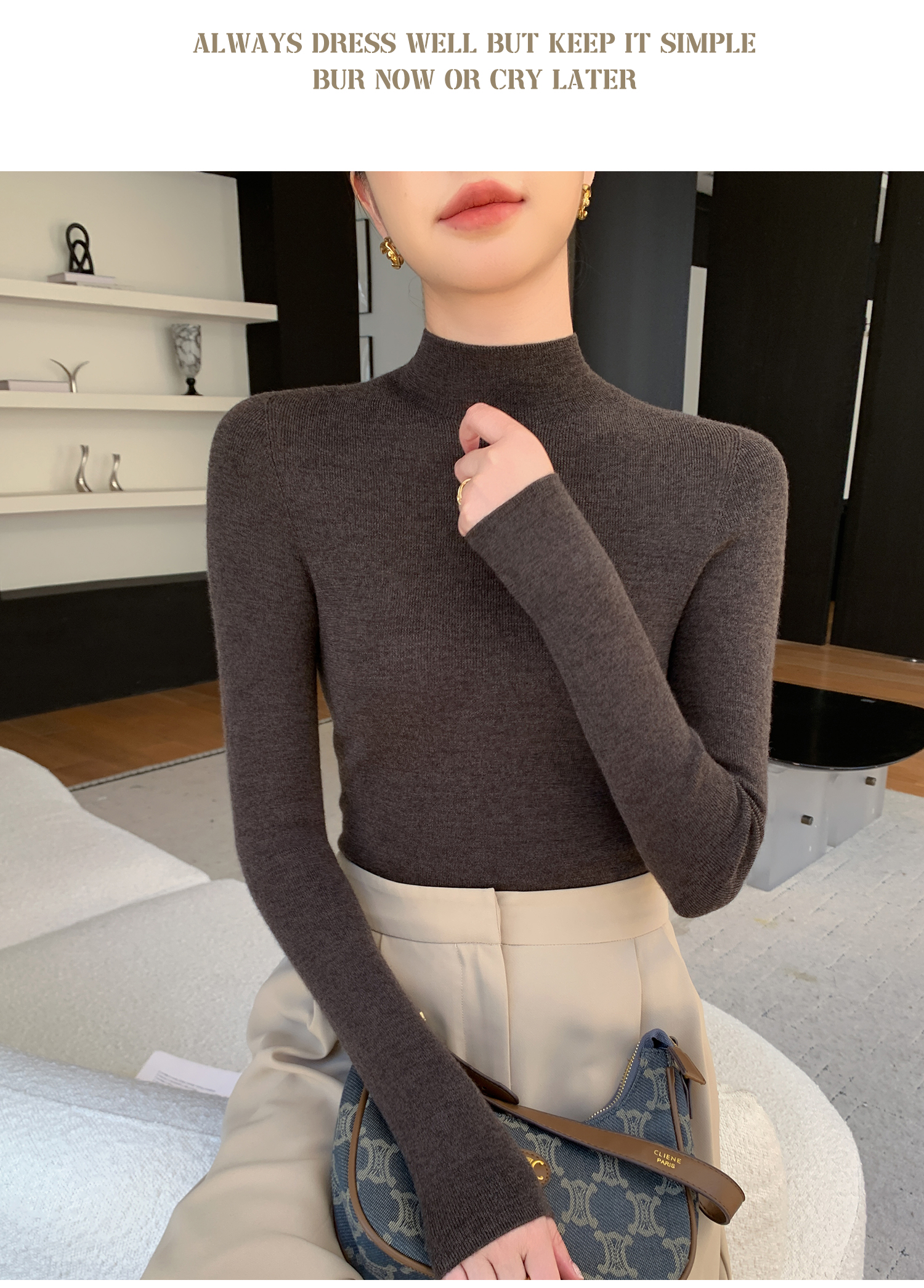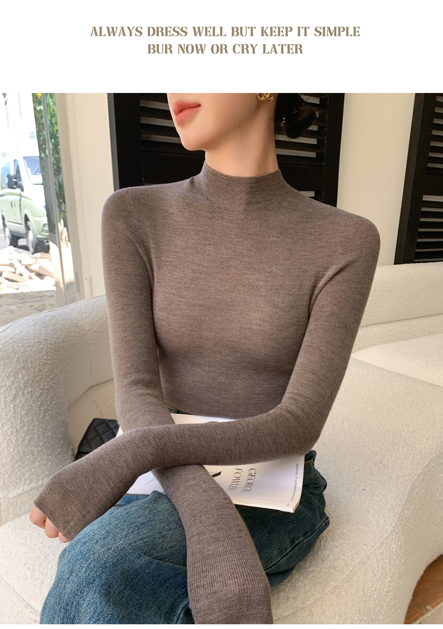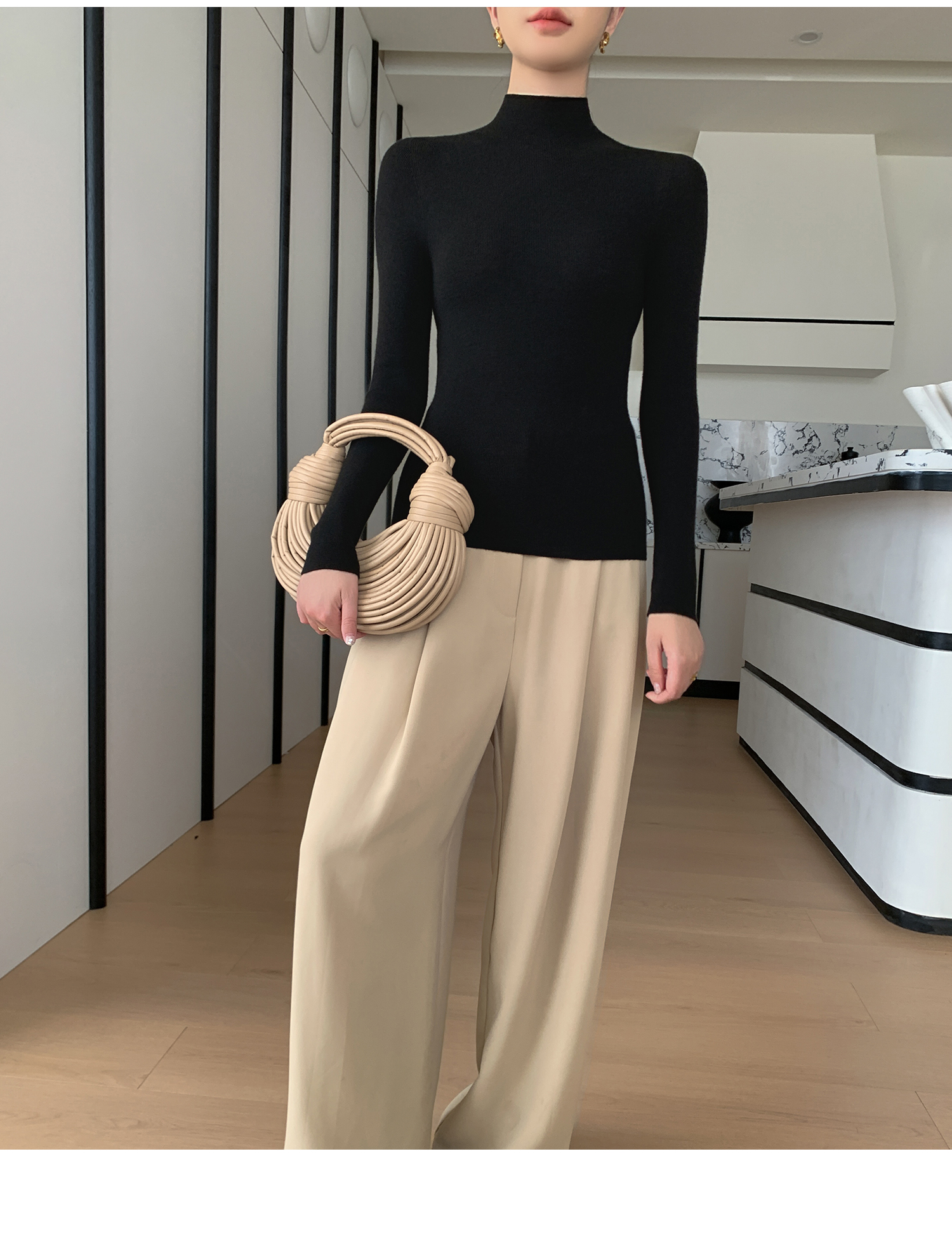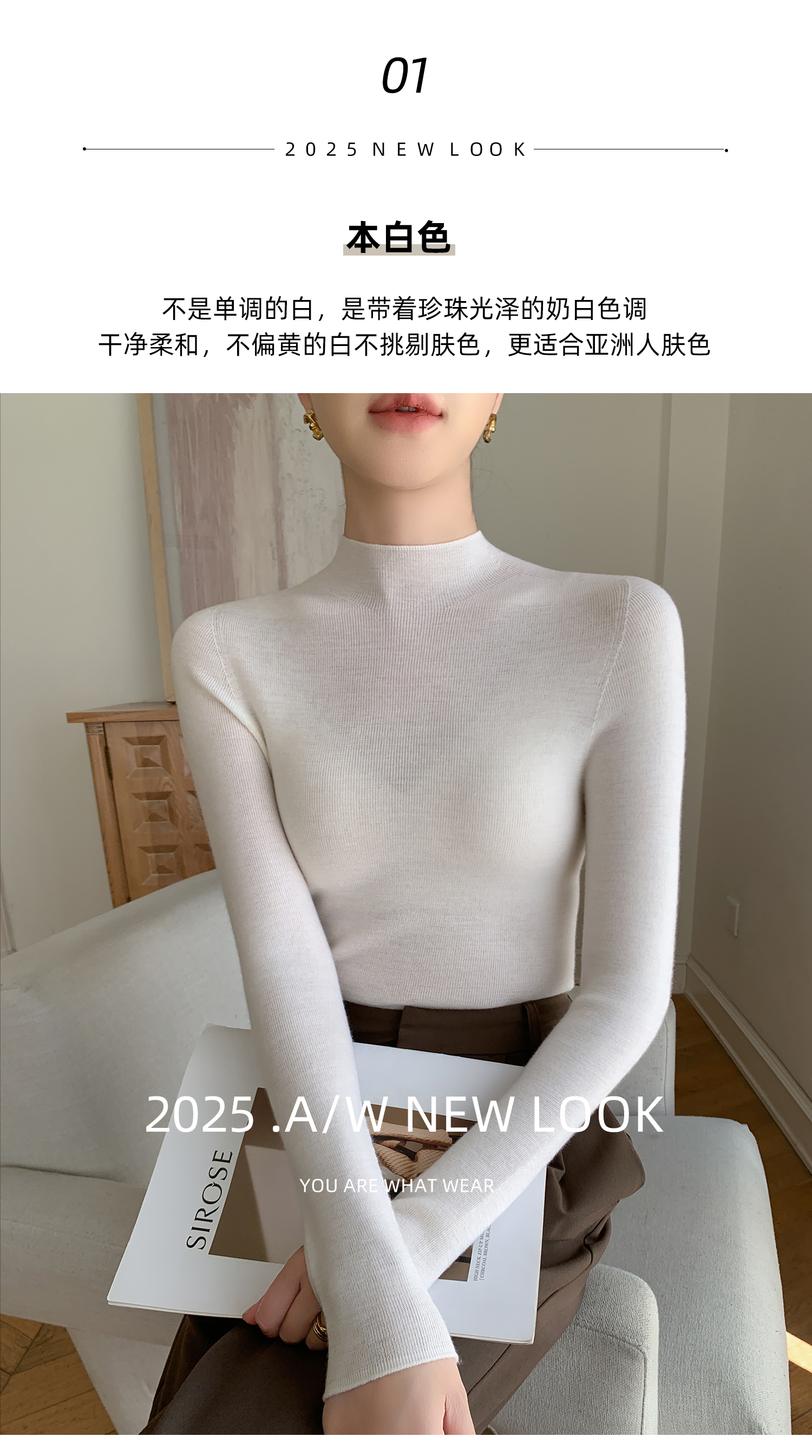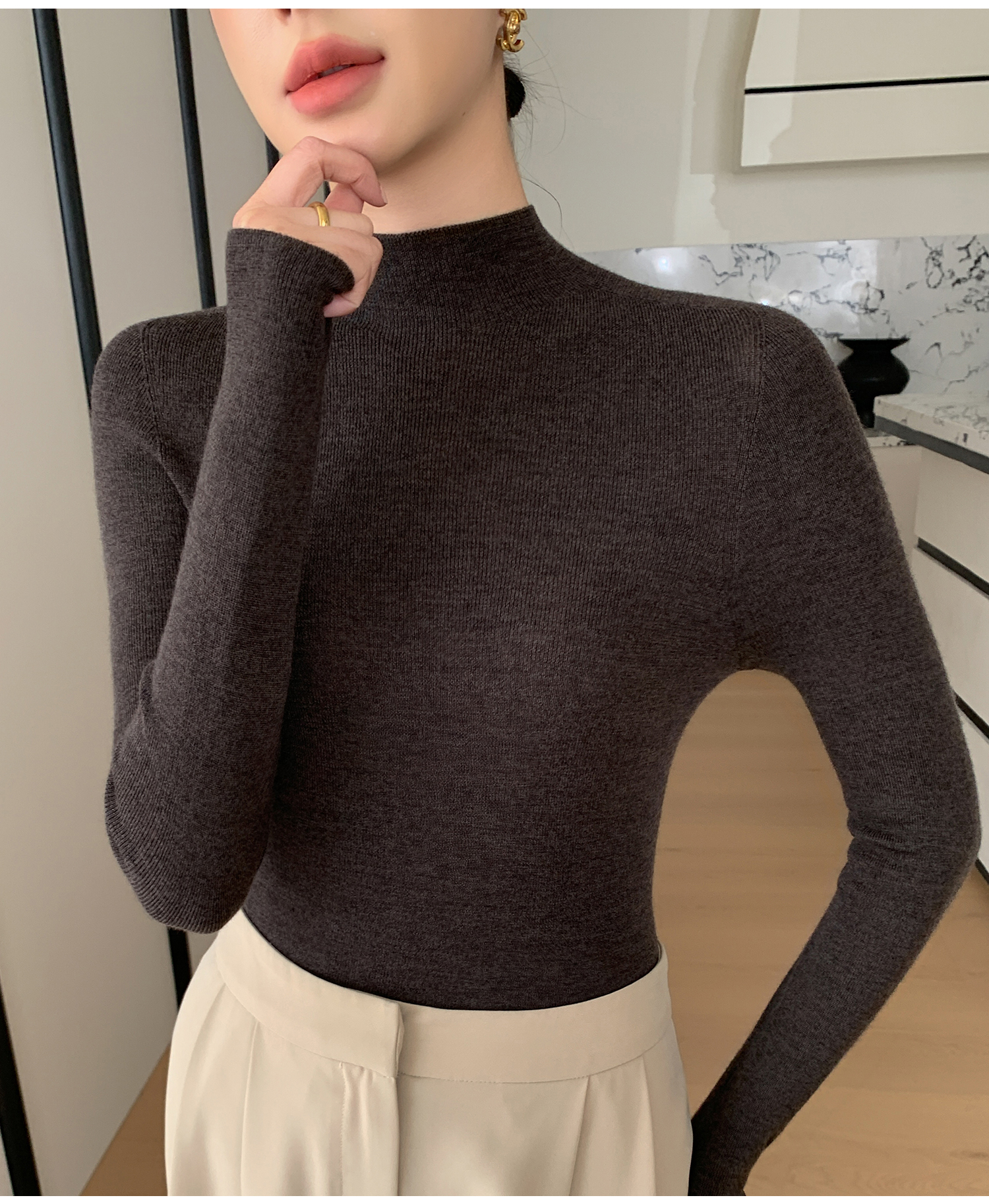 鄂爾多斯市羊絨衫女半高領修身顯瘦秋冬細羊毛打底衫薄款內搭毛衣