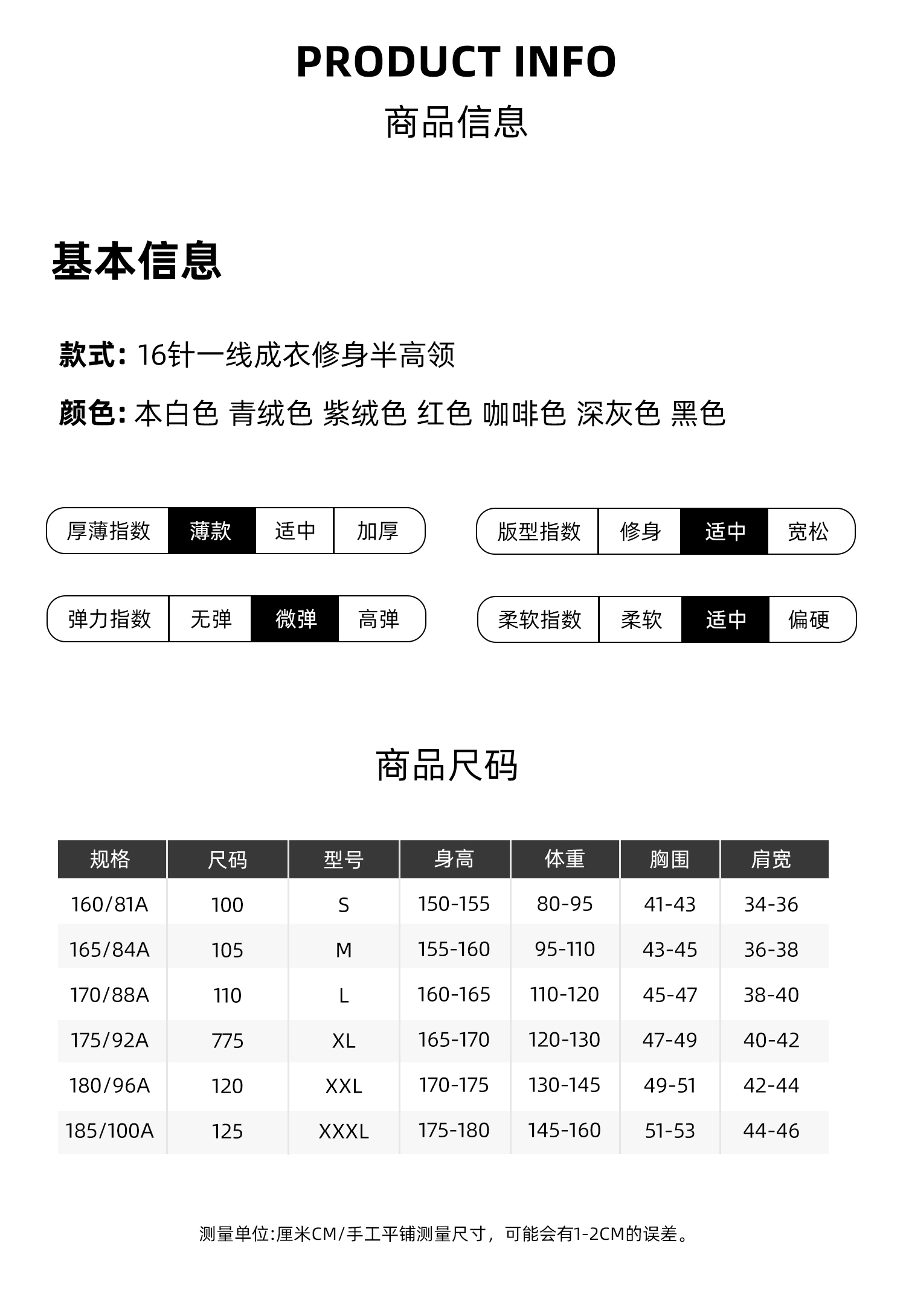 | 服裝版型 | 修身型 |