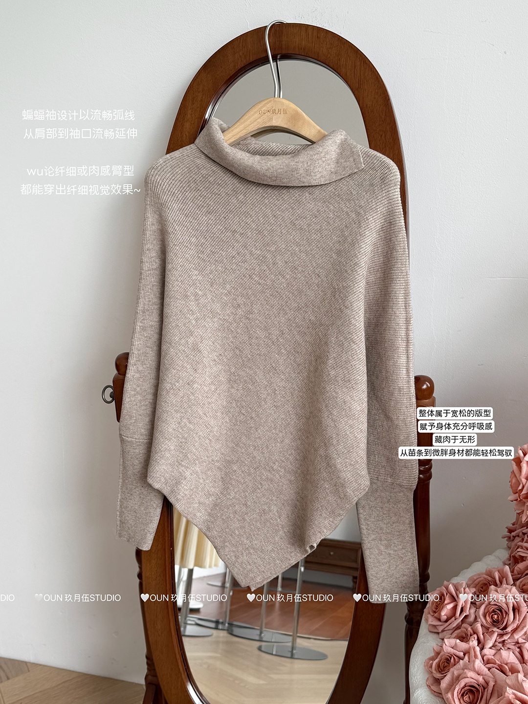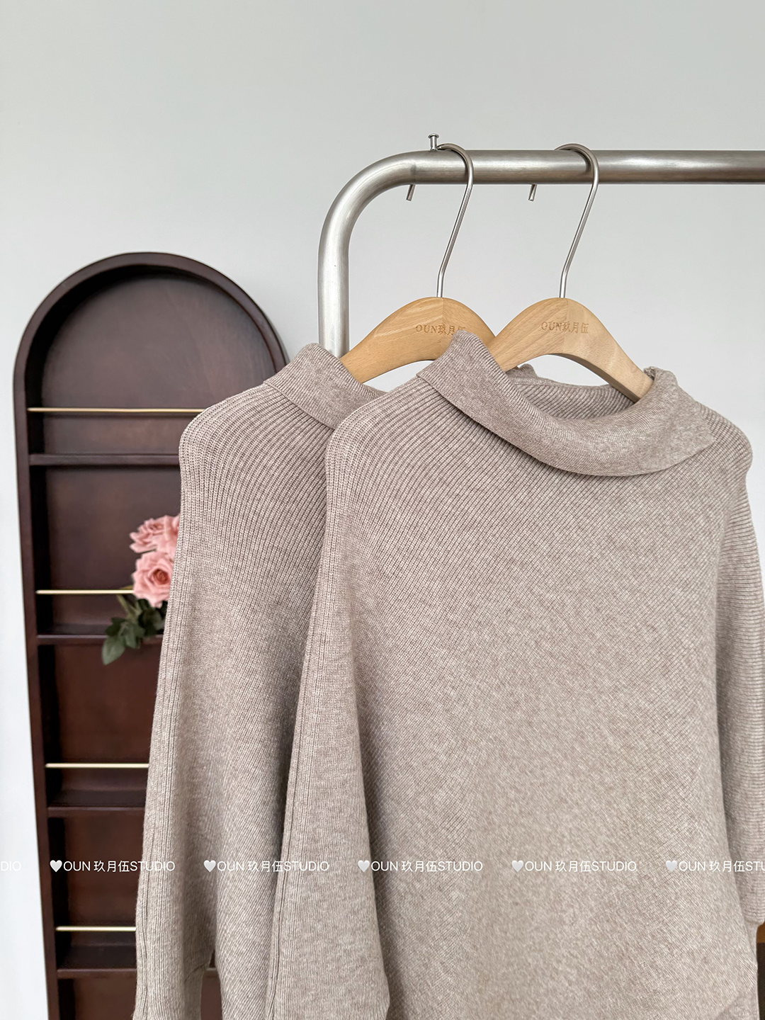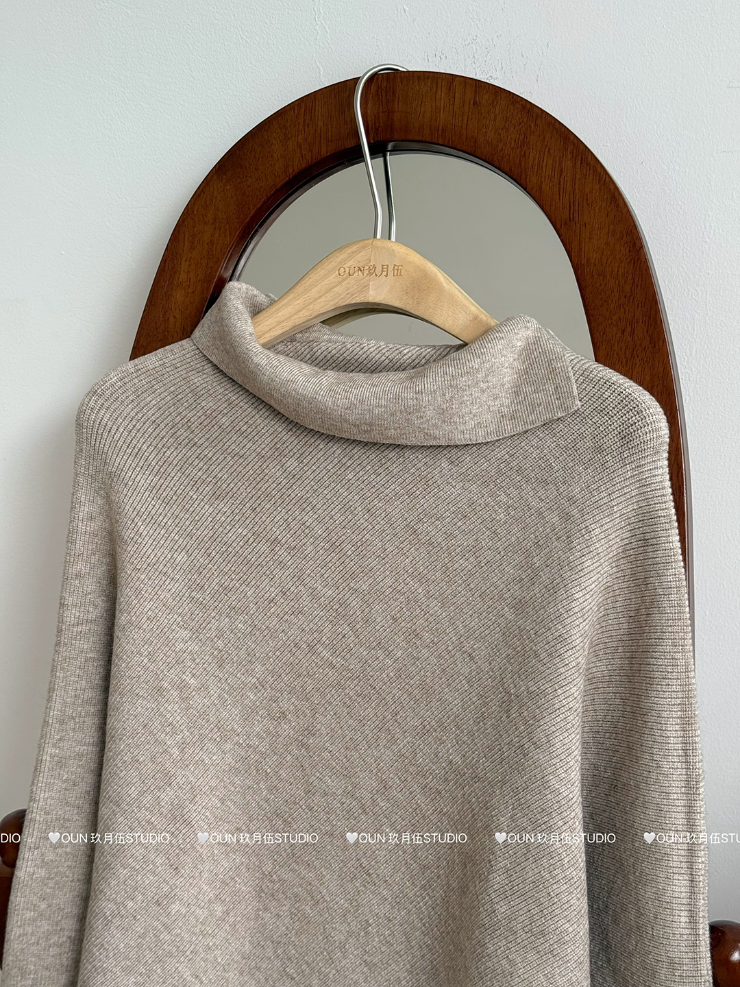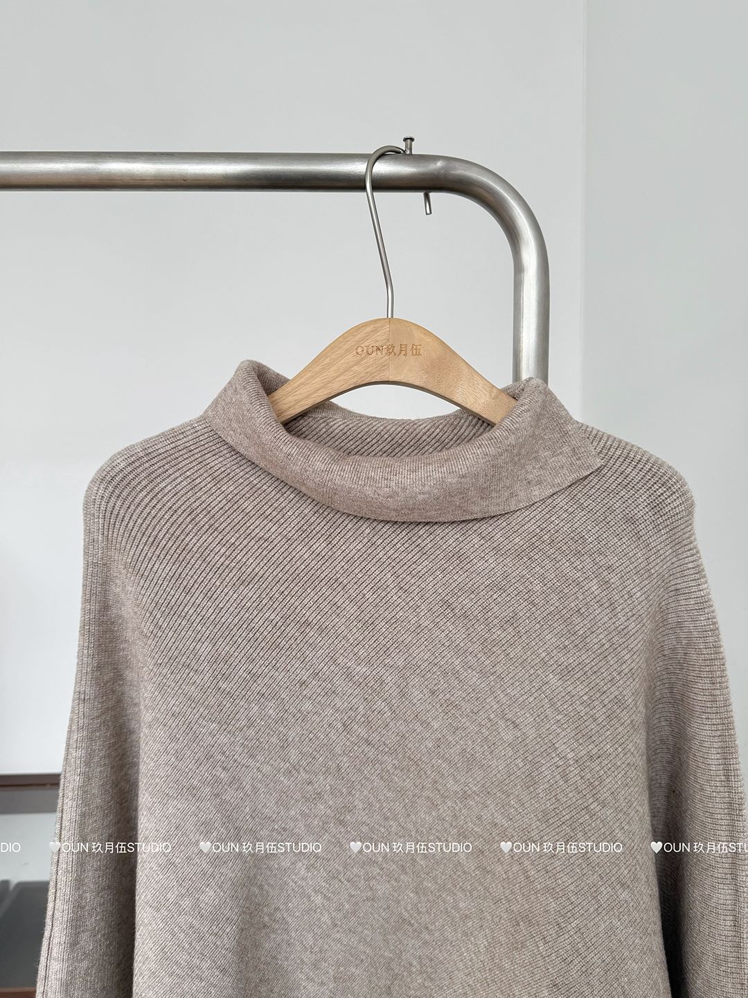 玖月伍【秋意正濃】慵懶寬松顯瘦高領蝙蝠袖毛衣針織衫上衣女