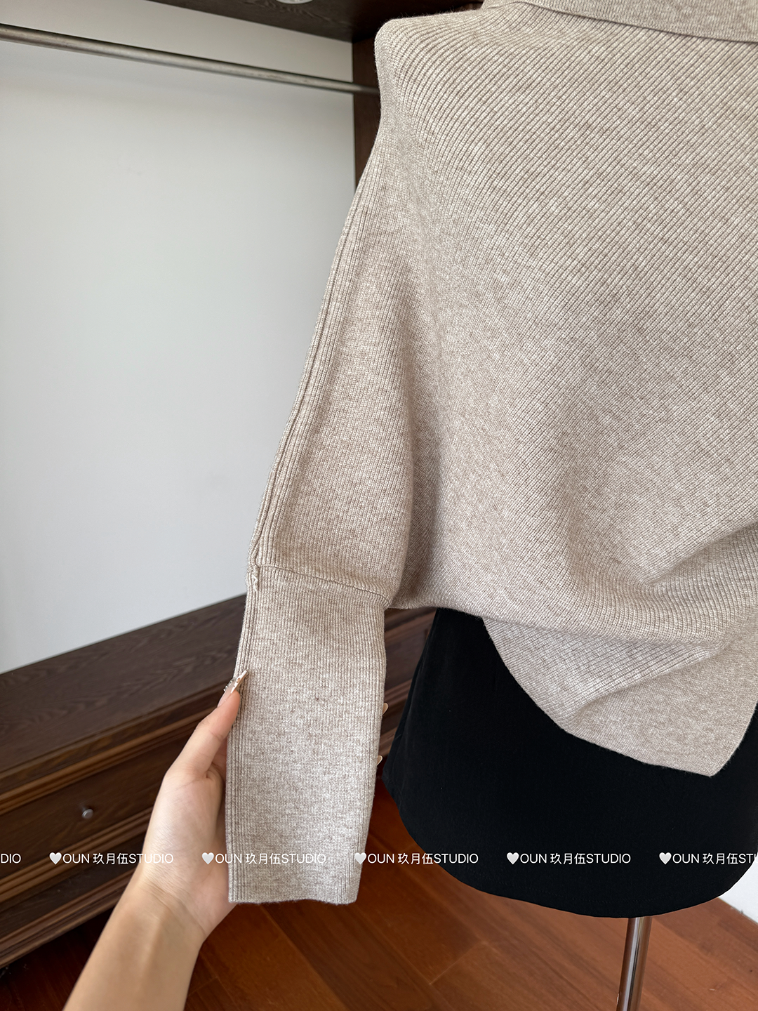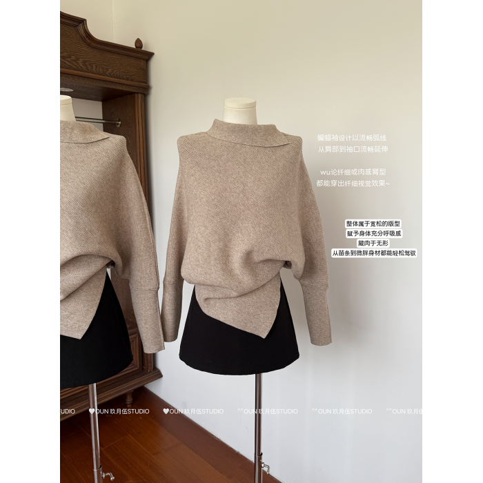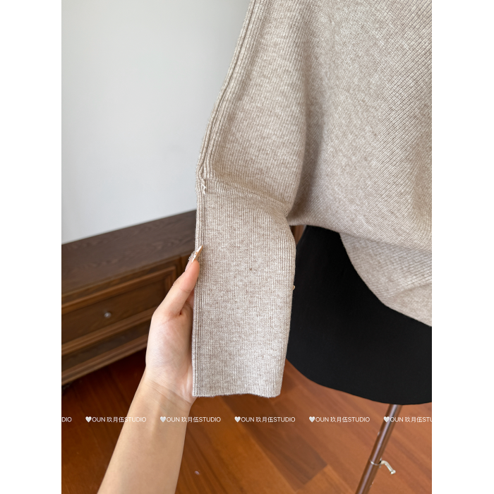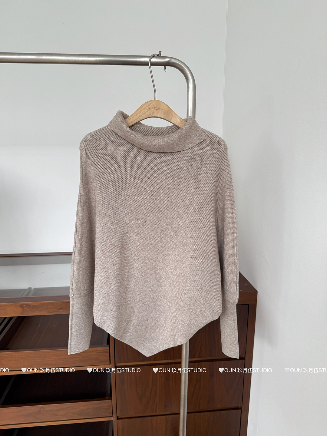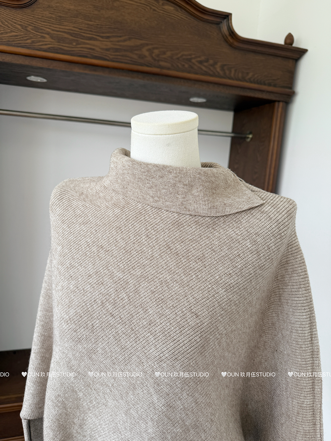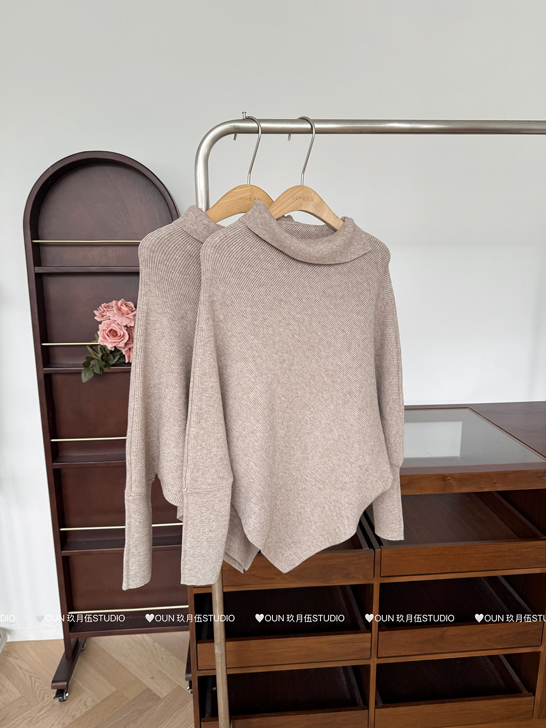 玖月伍【秋意正濃】慵懶寬松顯瘦高領蝙蝠袖毛衣針織衫上衣女