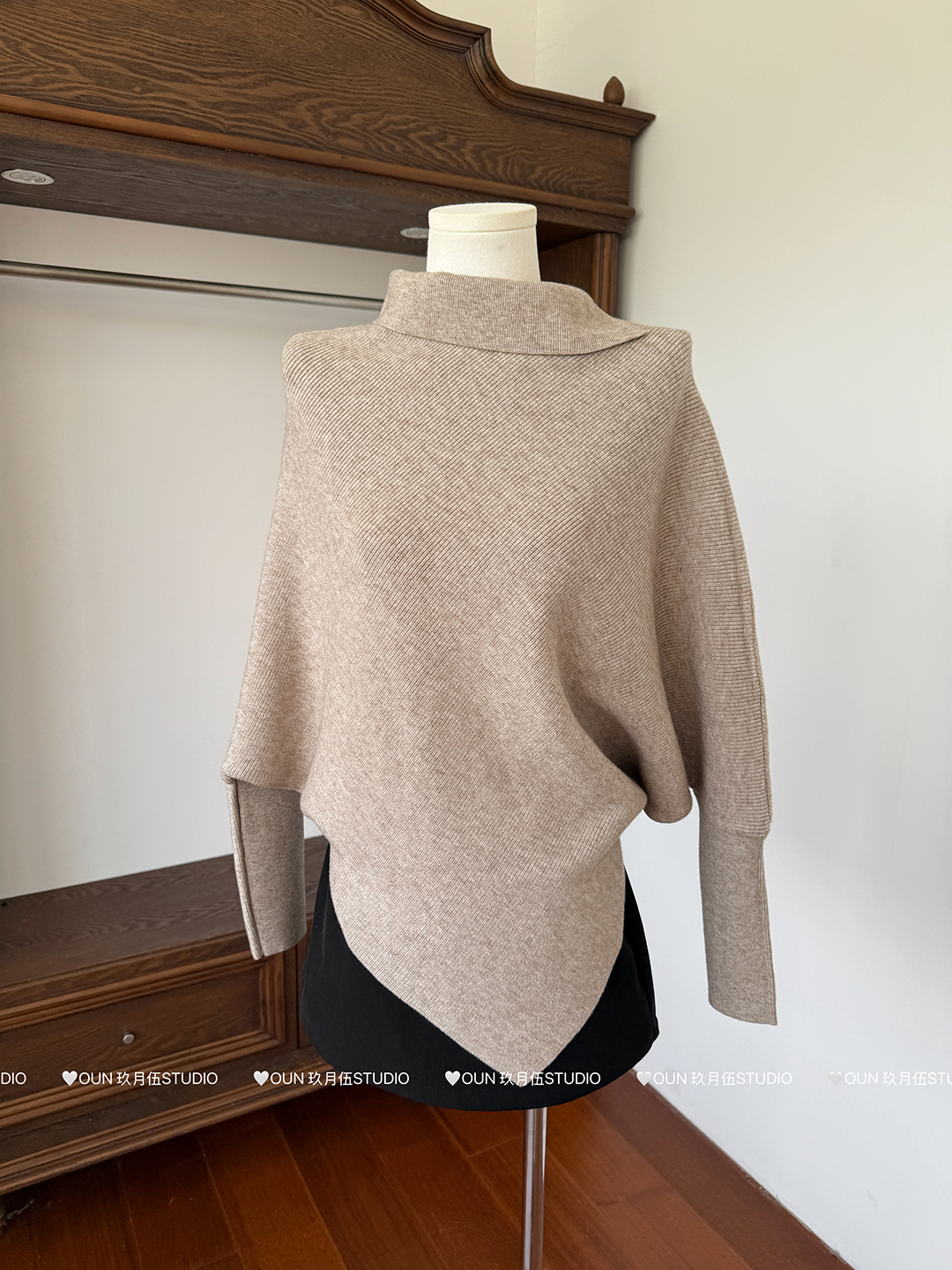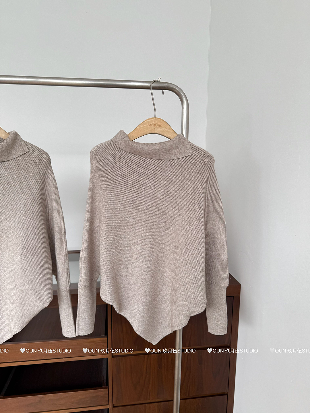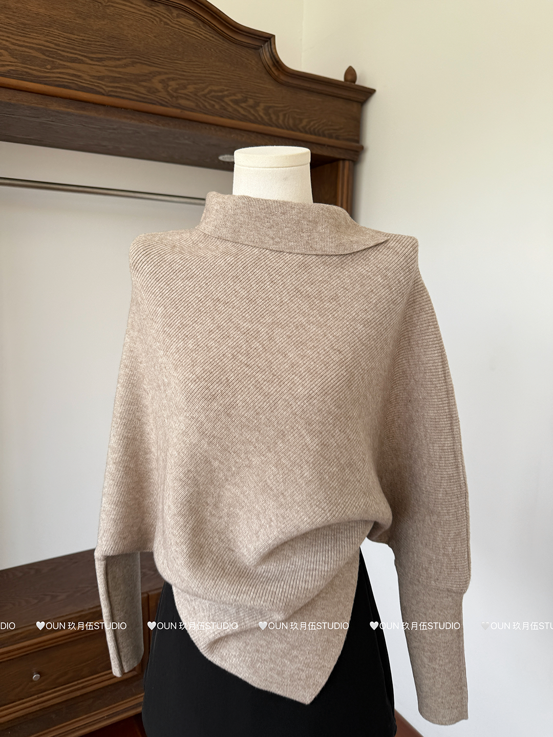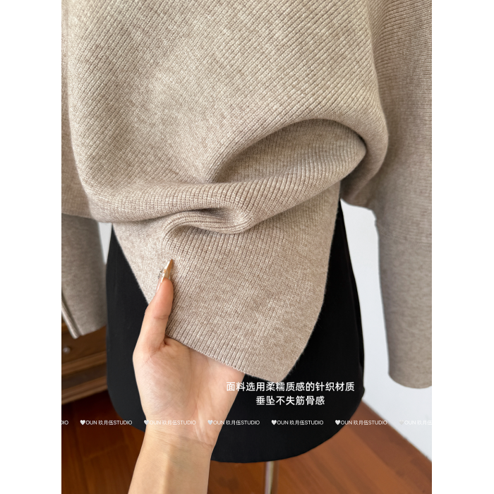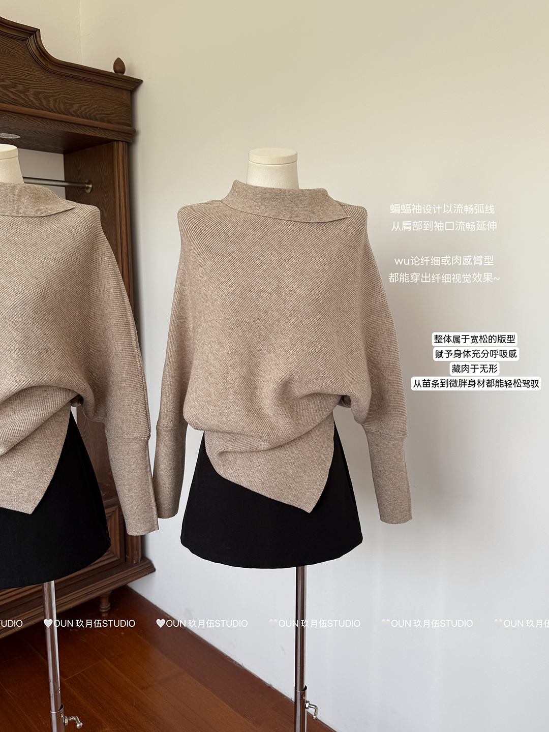 玖月伍【秋意正濃】慵懶寬松顯瘦高領蝙蝠袖毛衣針織衫上衣女