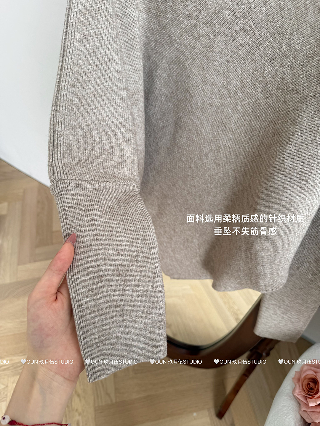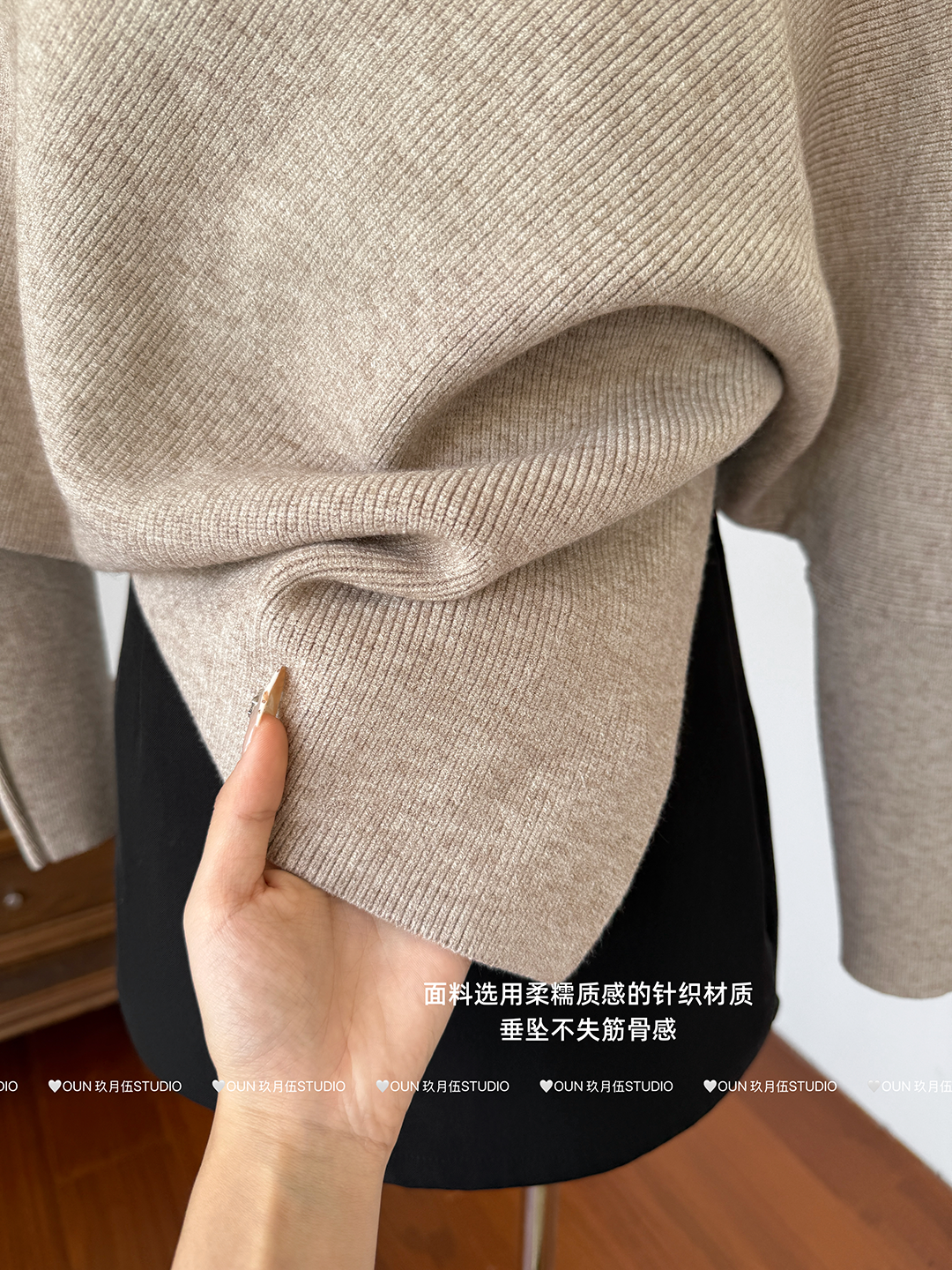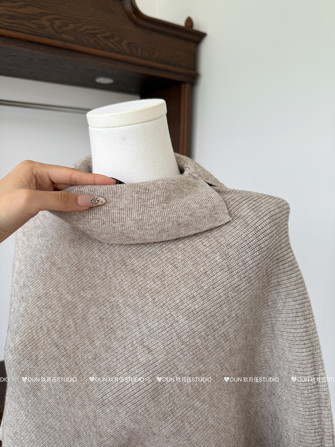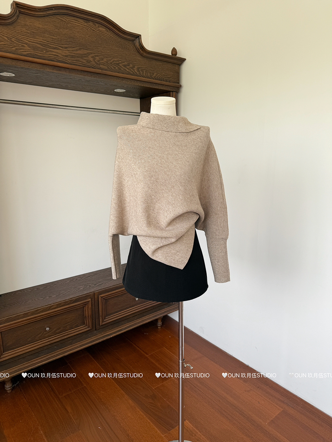 玖月伍【秋意正濃】慵懶寬松顯瘦高領蝙蝠袖毛衣針織衫上衣女