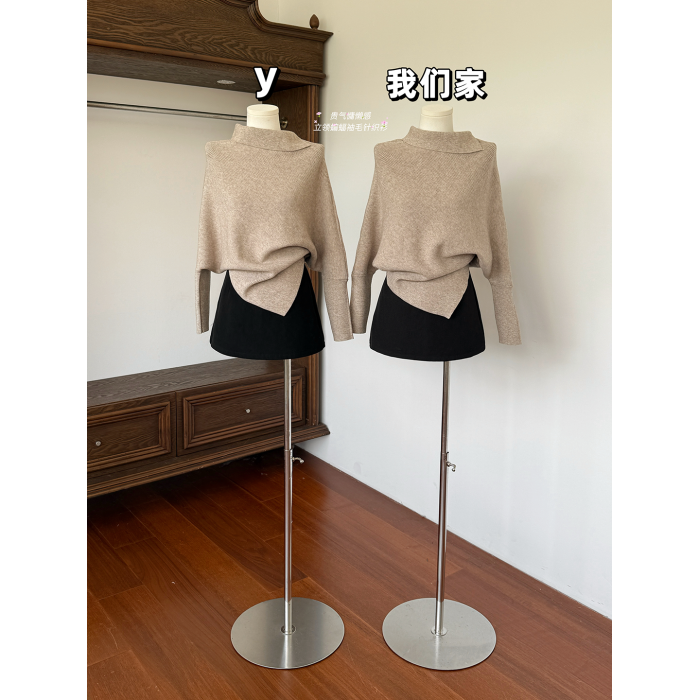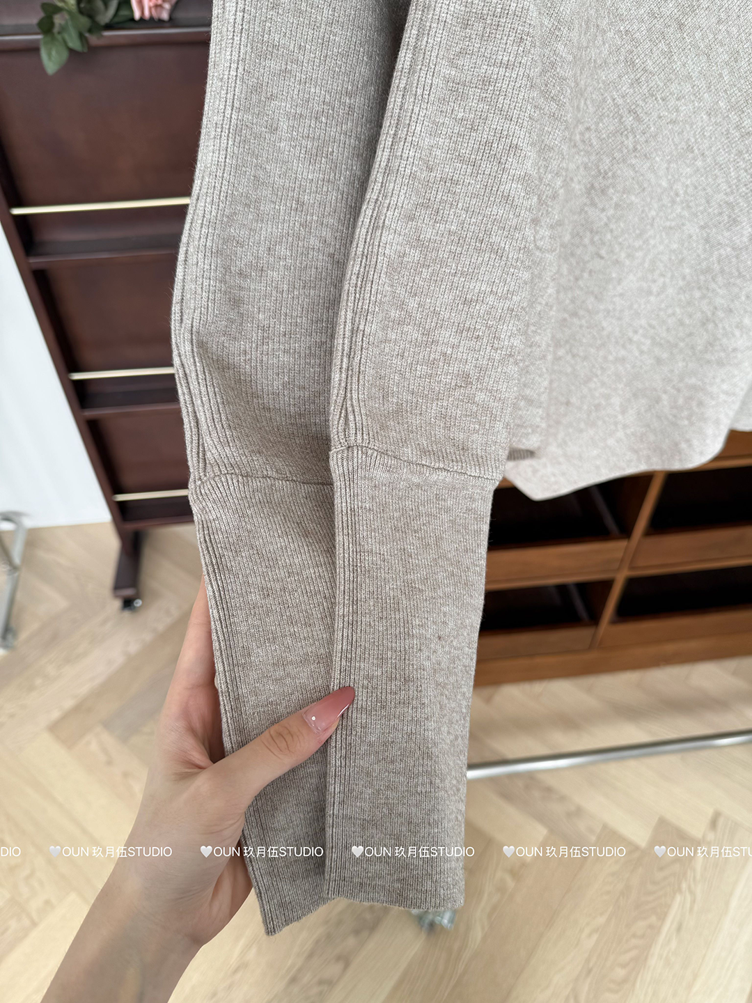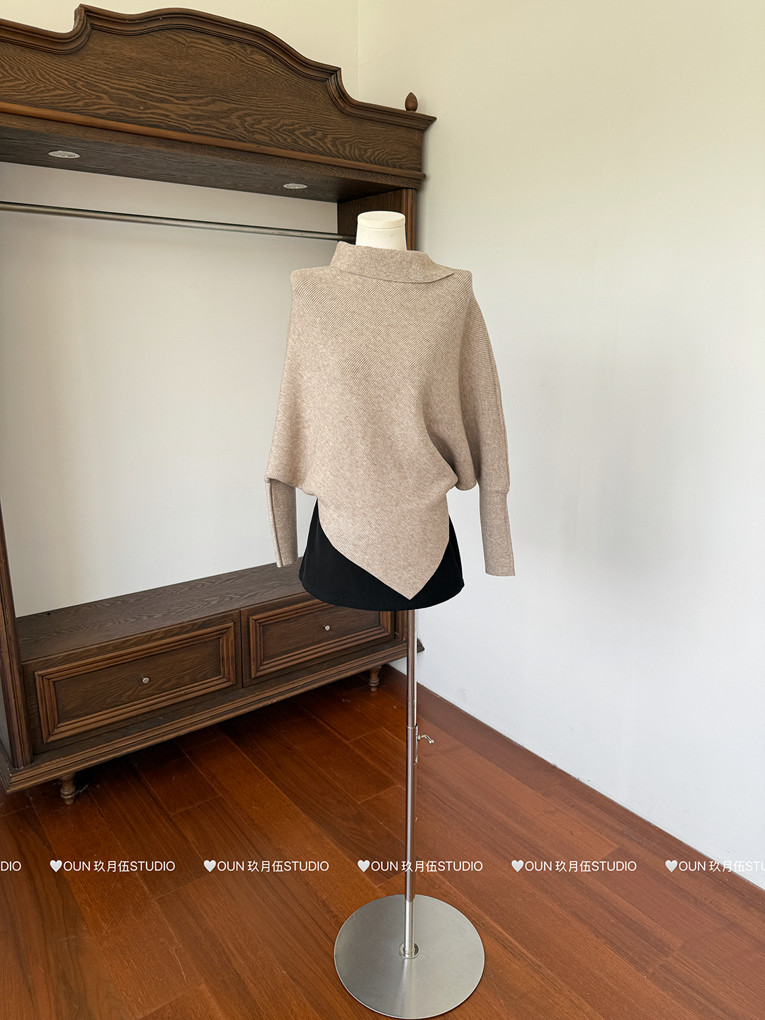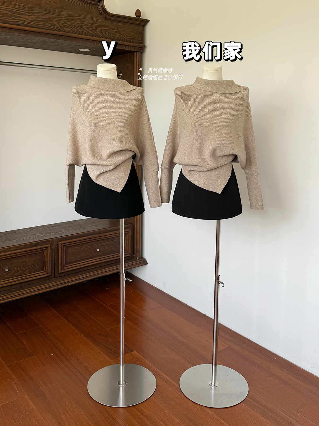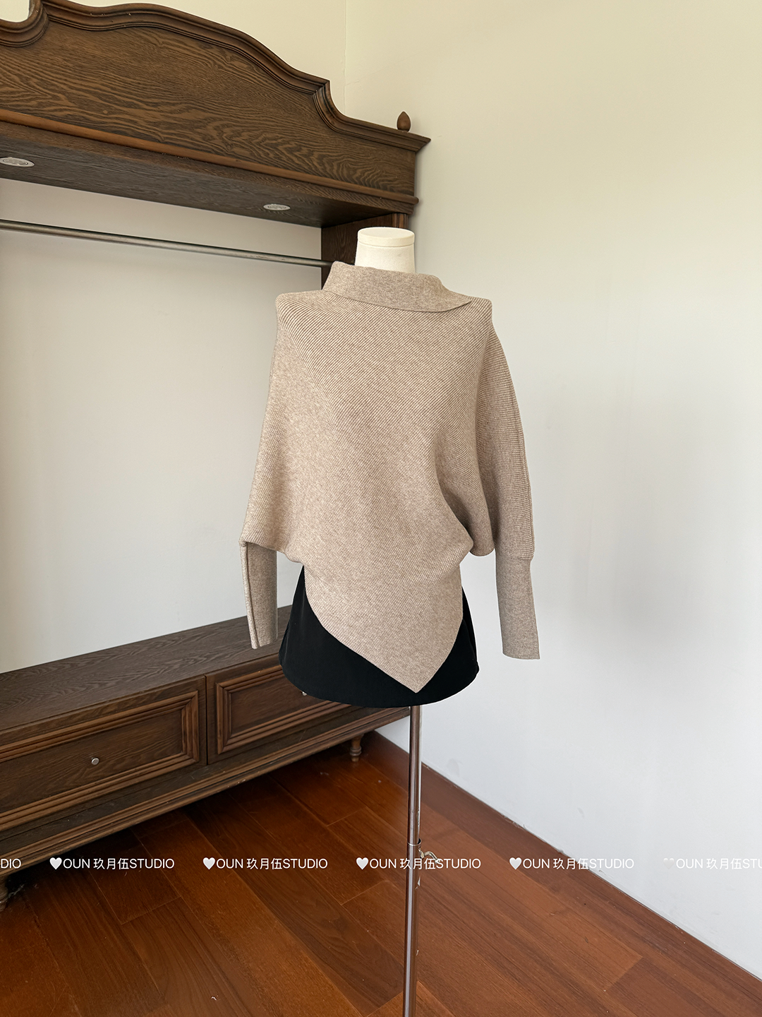 玖月伍【秋意正濃】慵懶寬松顯瘦高領蝙蝠袖毛衣針織衫上衣女