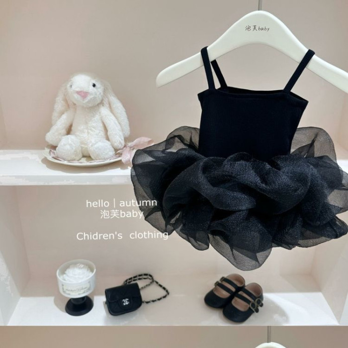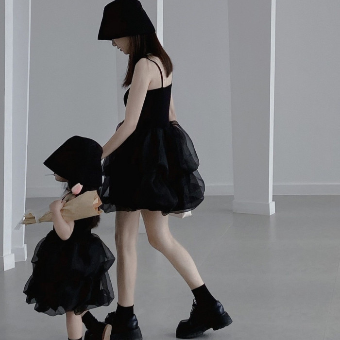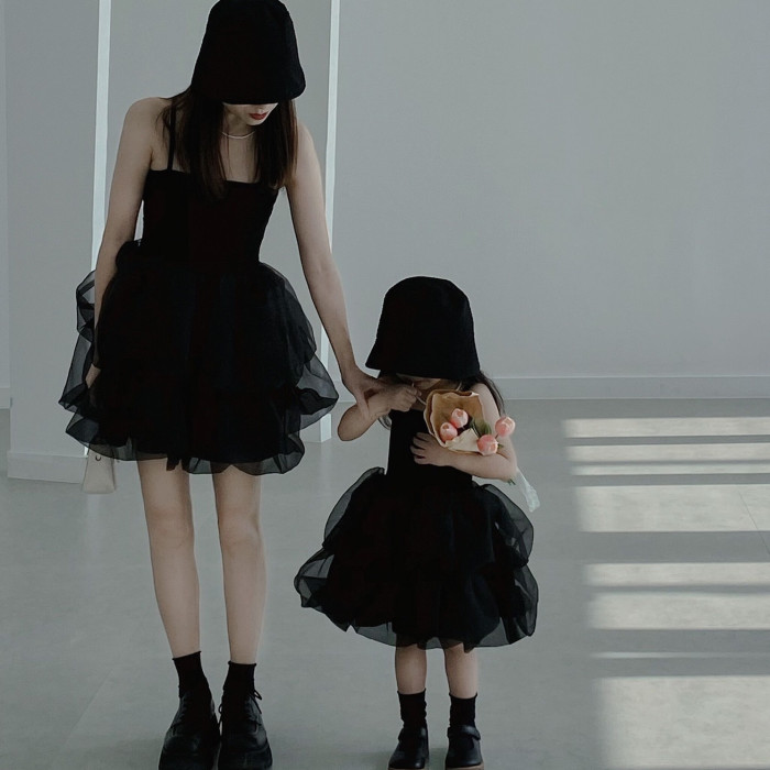 親子裝女童吊帶裙小黑裙夏季新款洋氣兒童禮服公主裙母女裝連衣裙