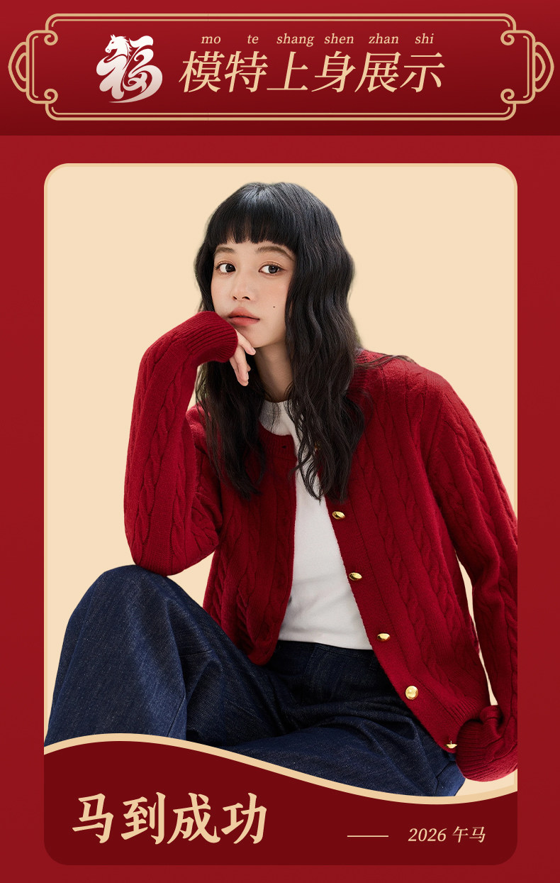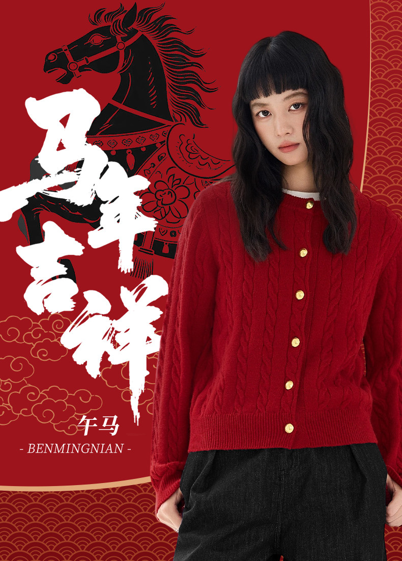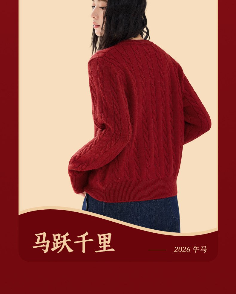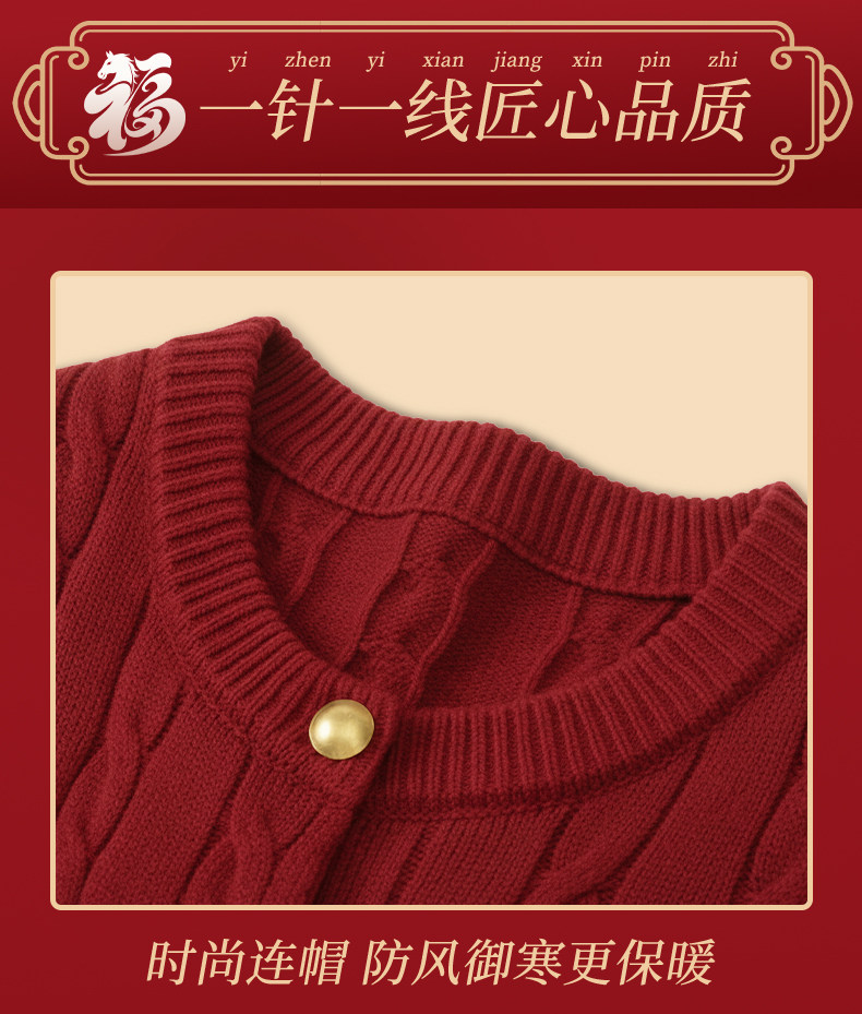 都市麗人紅色毛衣外套女秋冬季2025新款慵嬾高級感麻花針織開衫Y