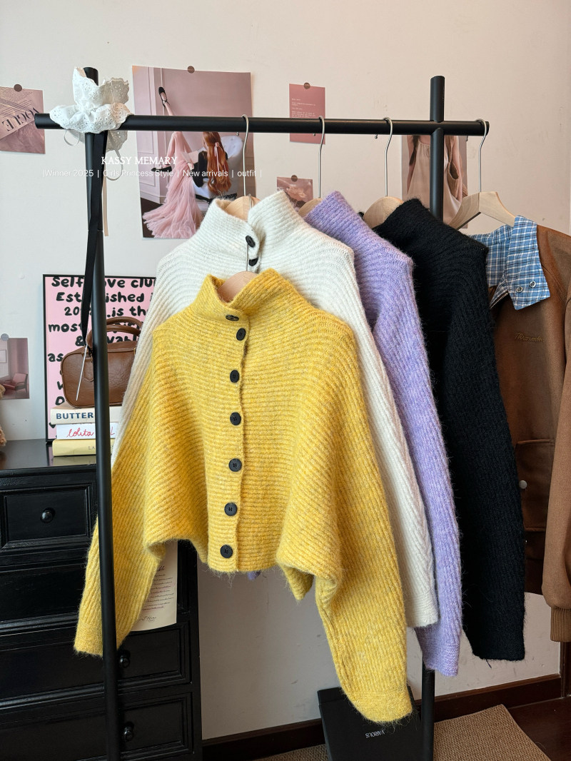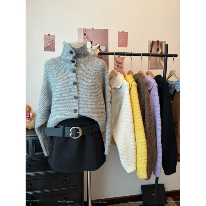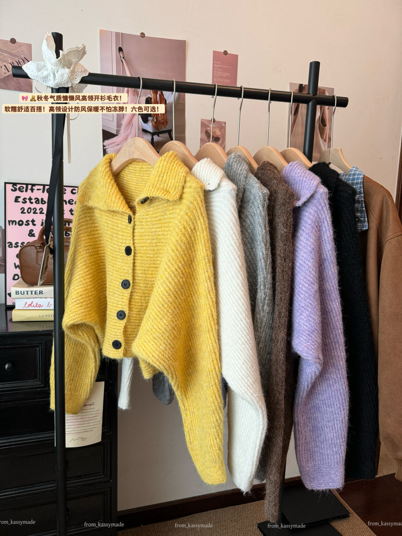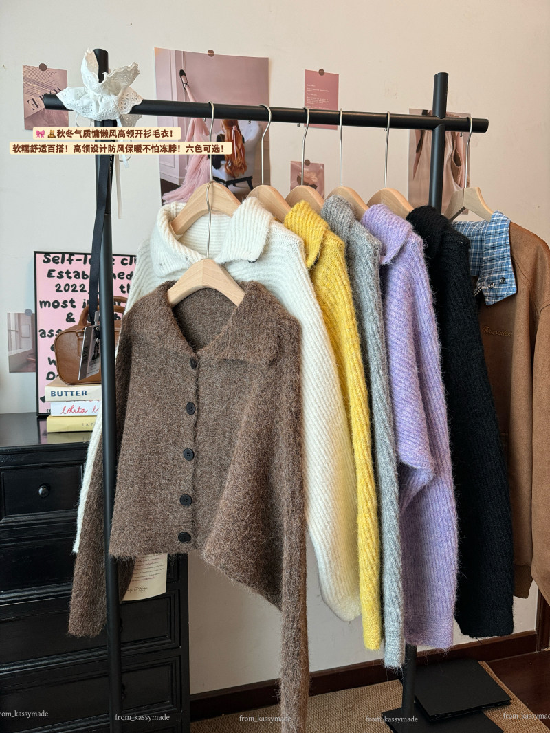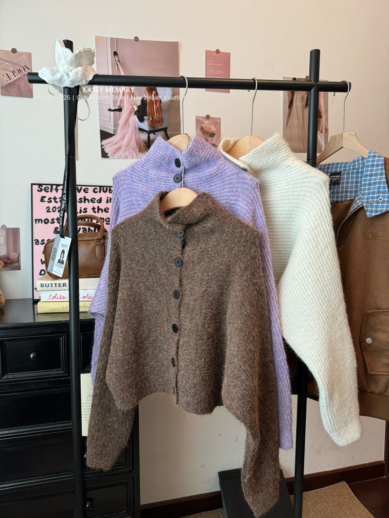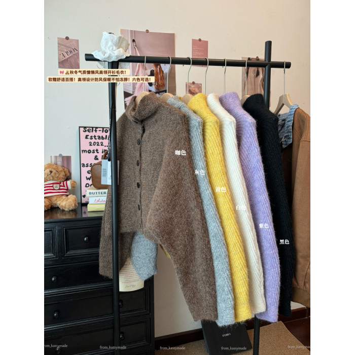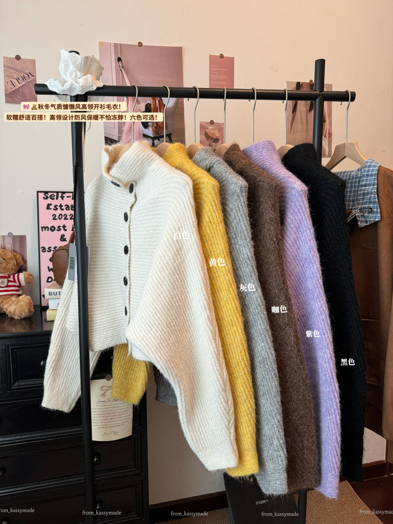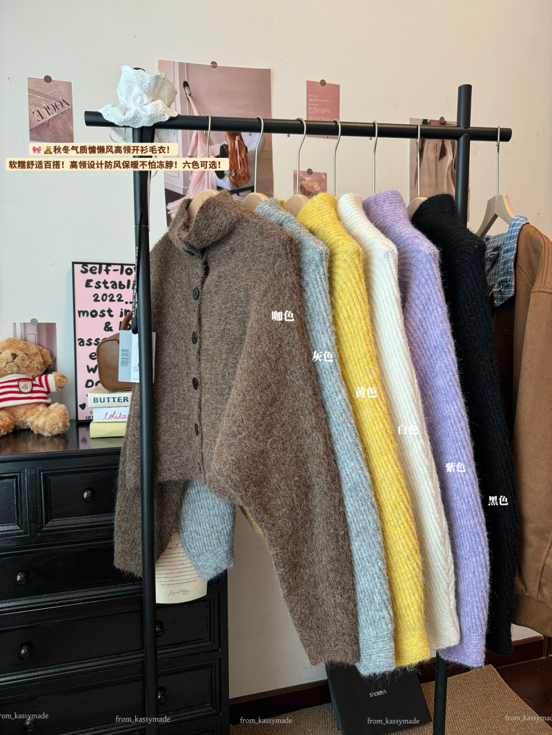 kumikumi慵嬾風純色高領毛衣開衫外套女秋季新款百搭寬鬆顯瘦上衣
