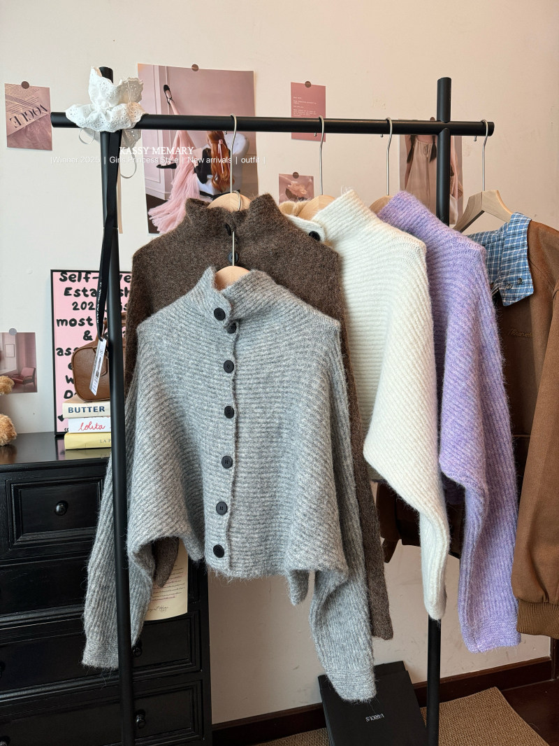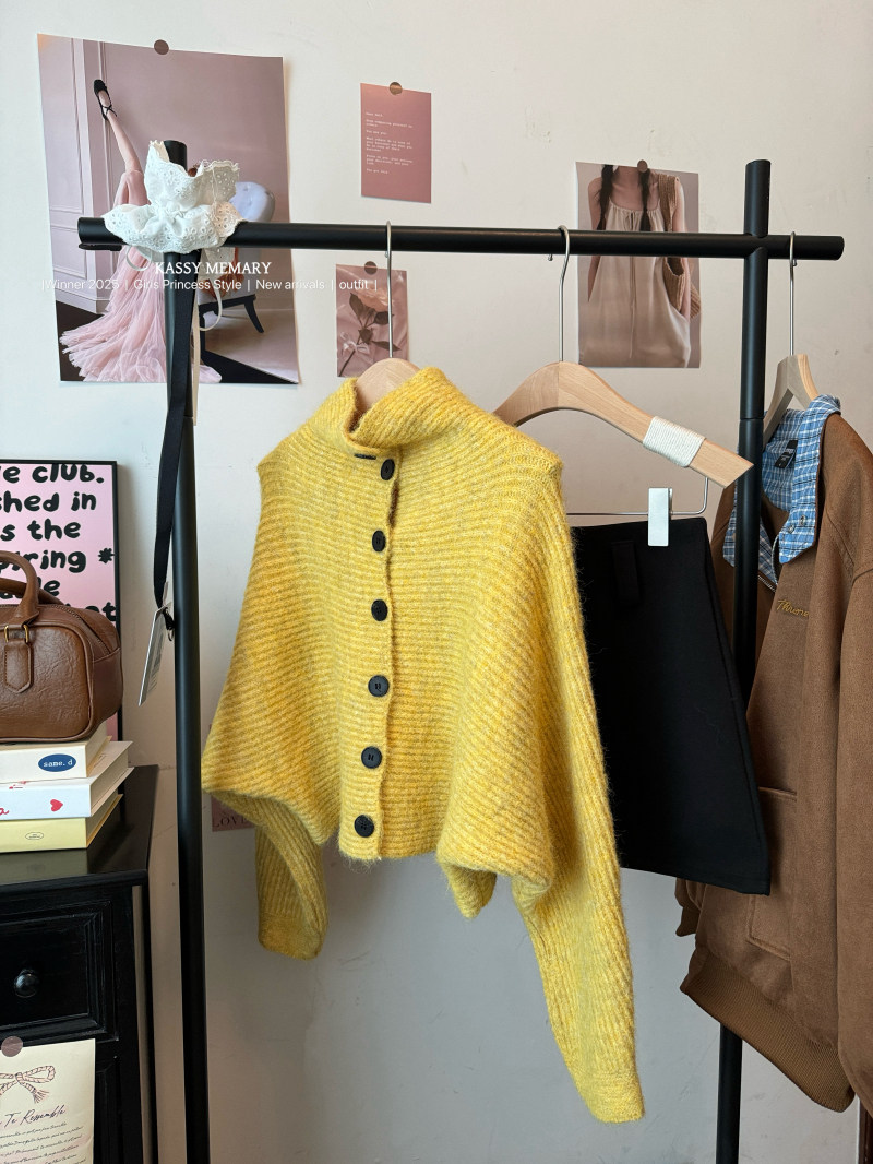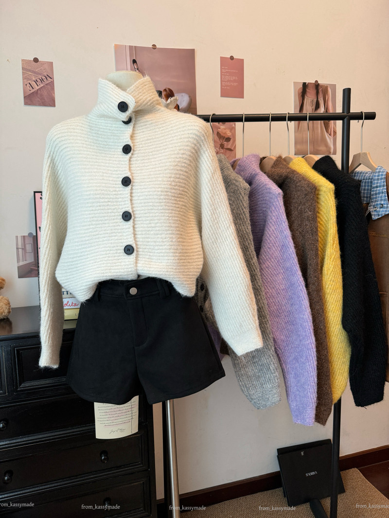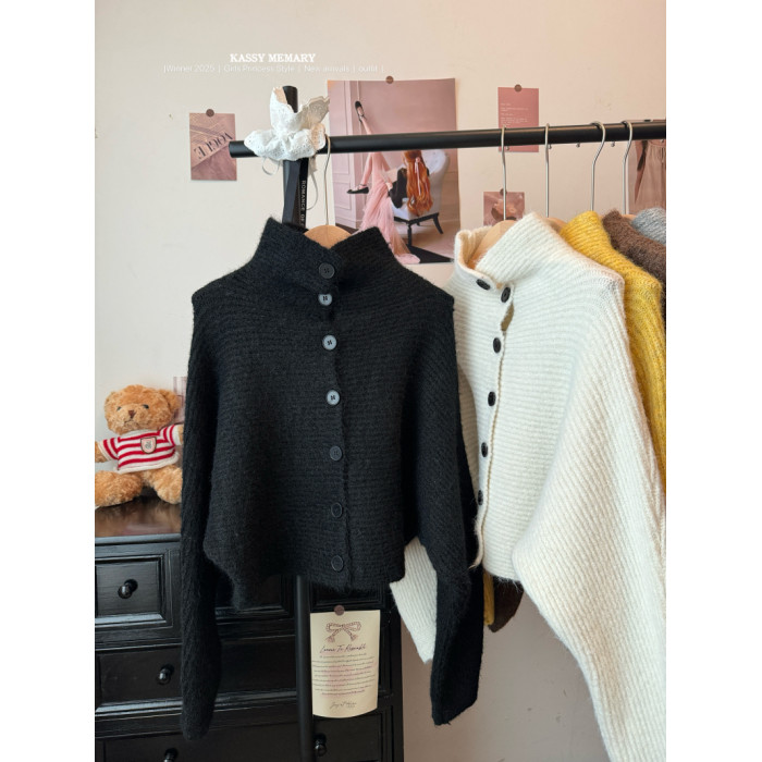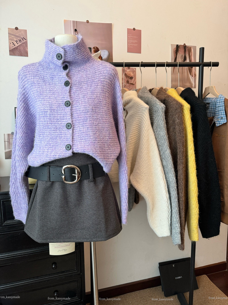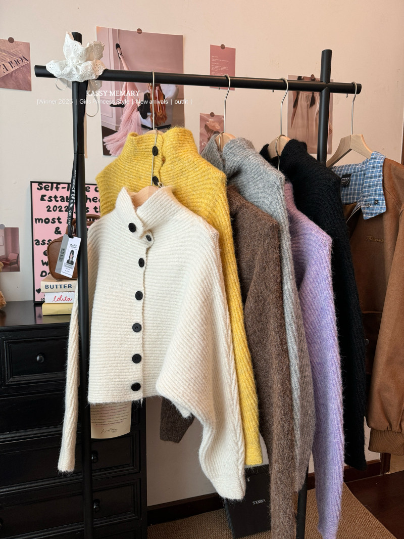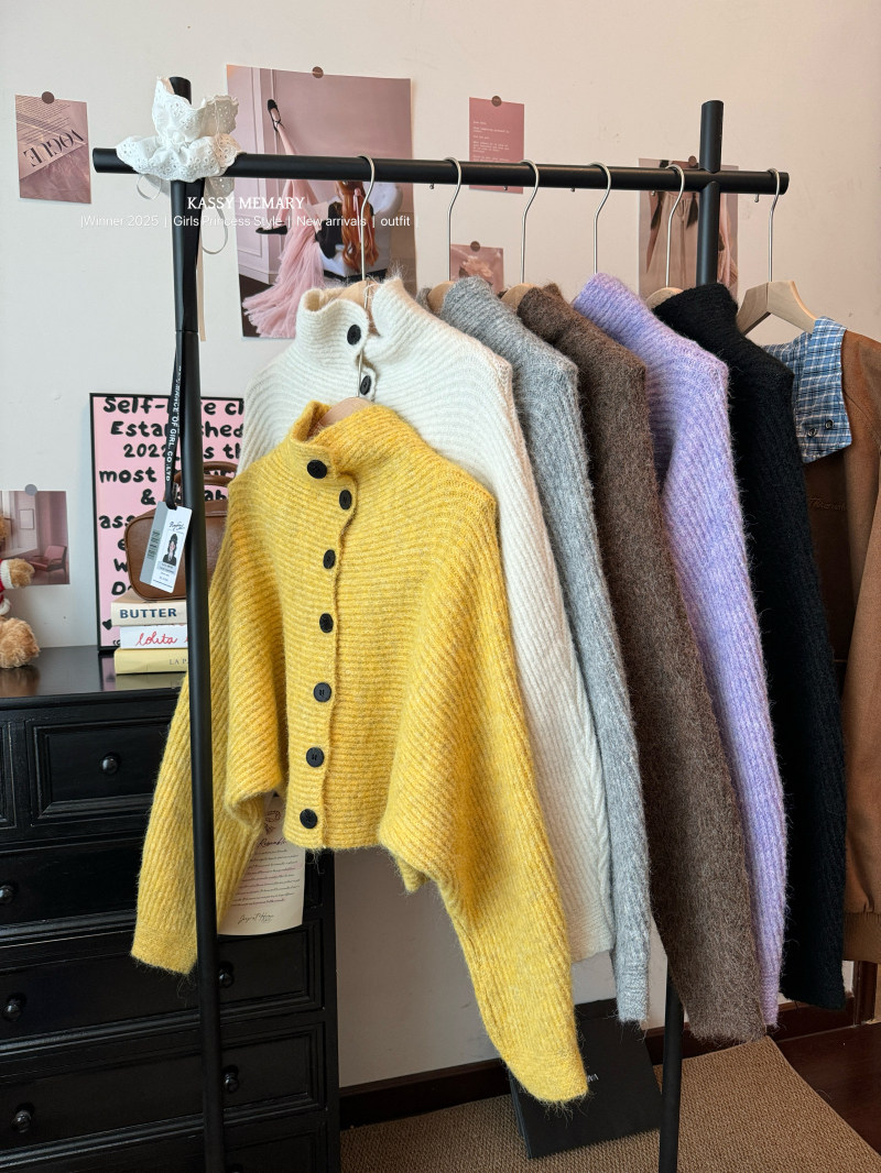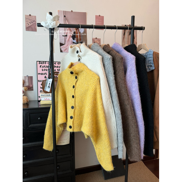 kumikumi慵嬾風純色高領毛衣開衫外套女秋季新款百搭寬鬆顯瘦上衣