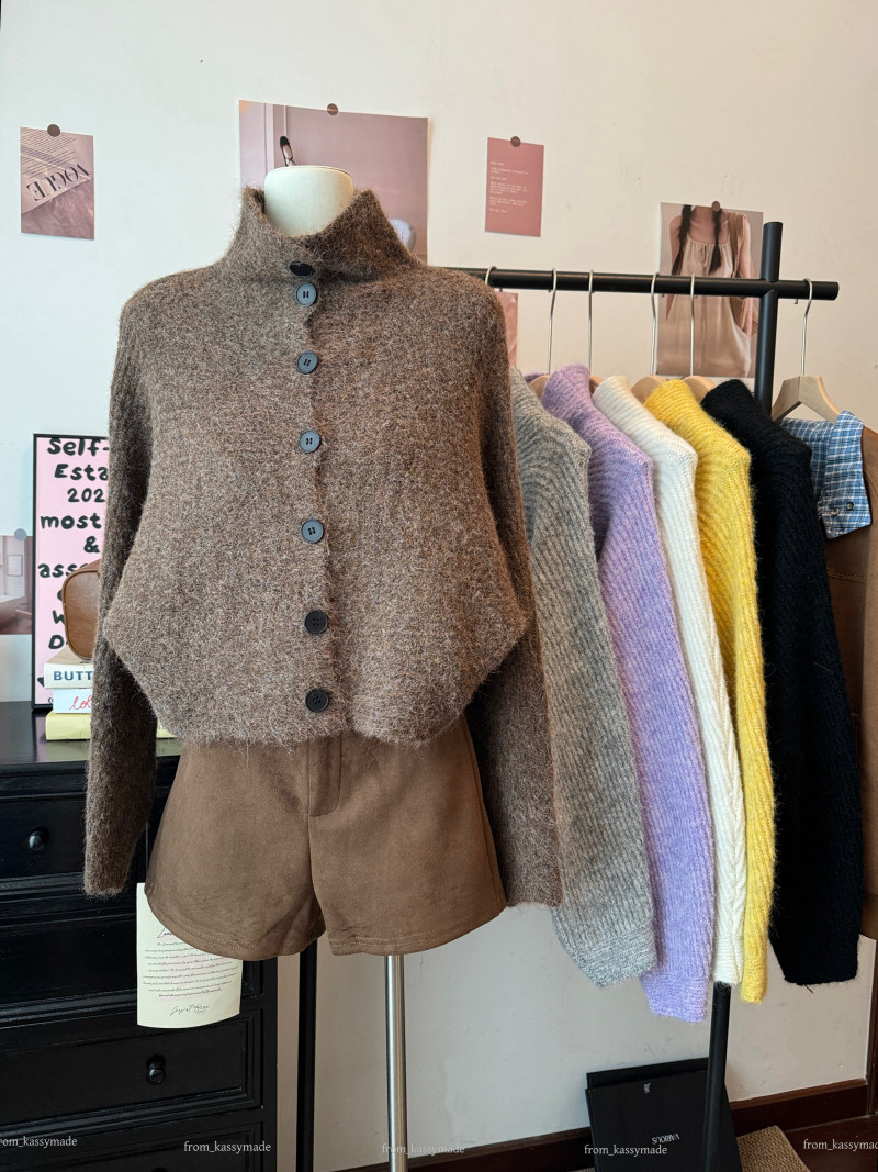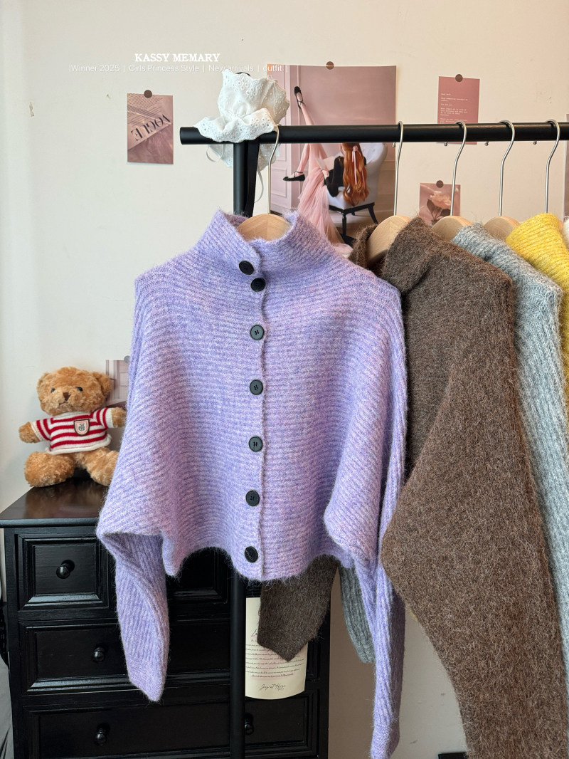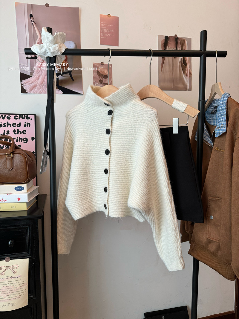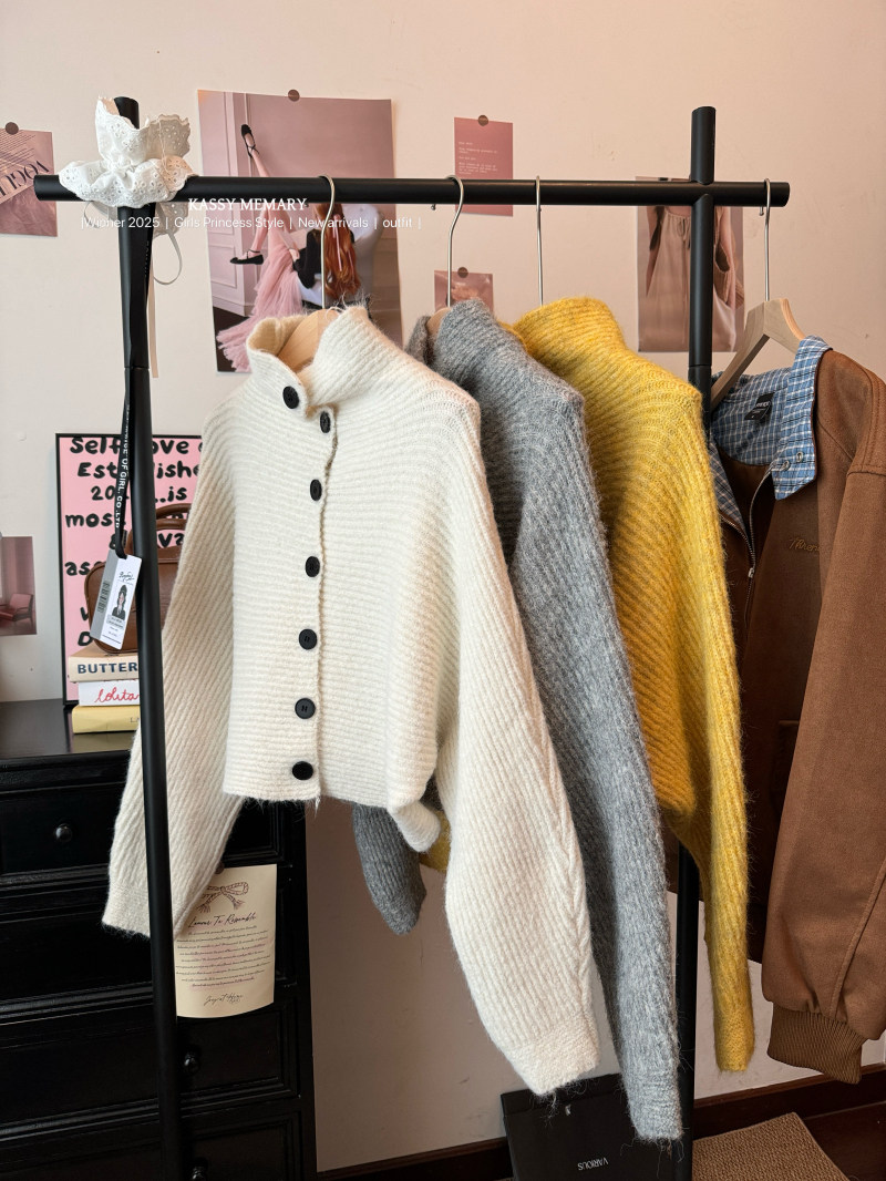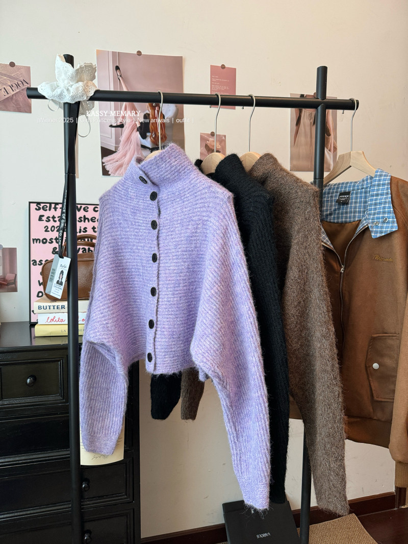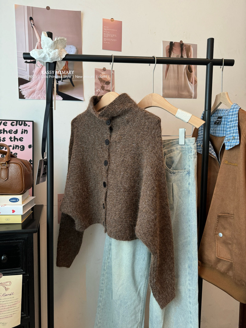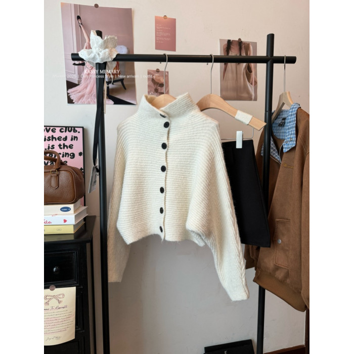 kumikumi慵嬾風純色高領毛衣開衫外套女秋季新款百搭寬鬆顯瘦上衣