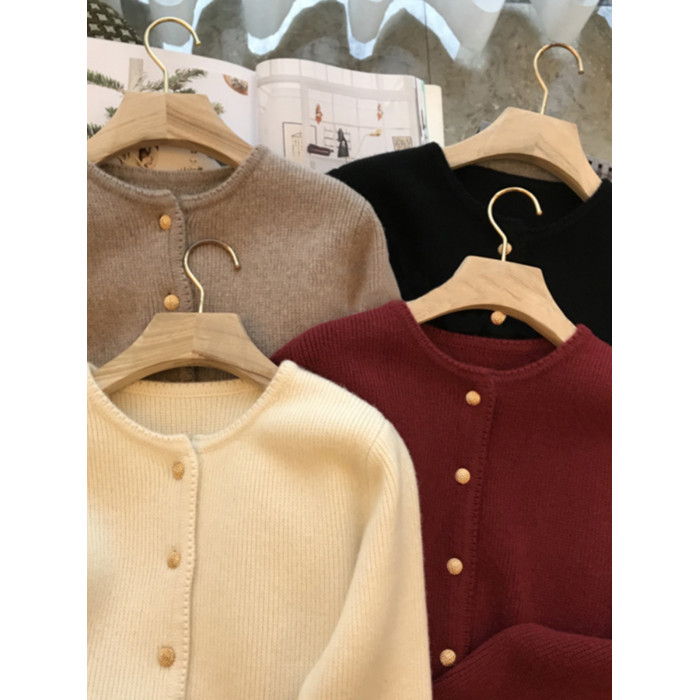 設計感小衆浣熊絨上衣女春季慵嬾風休閒復古針織開衫毛衣外套女