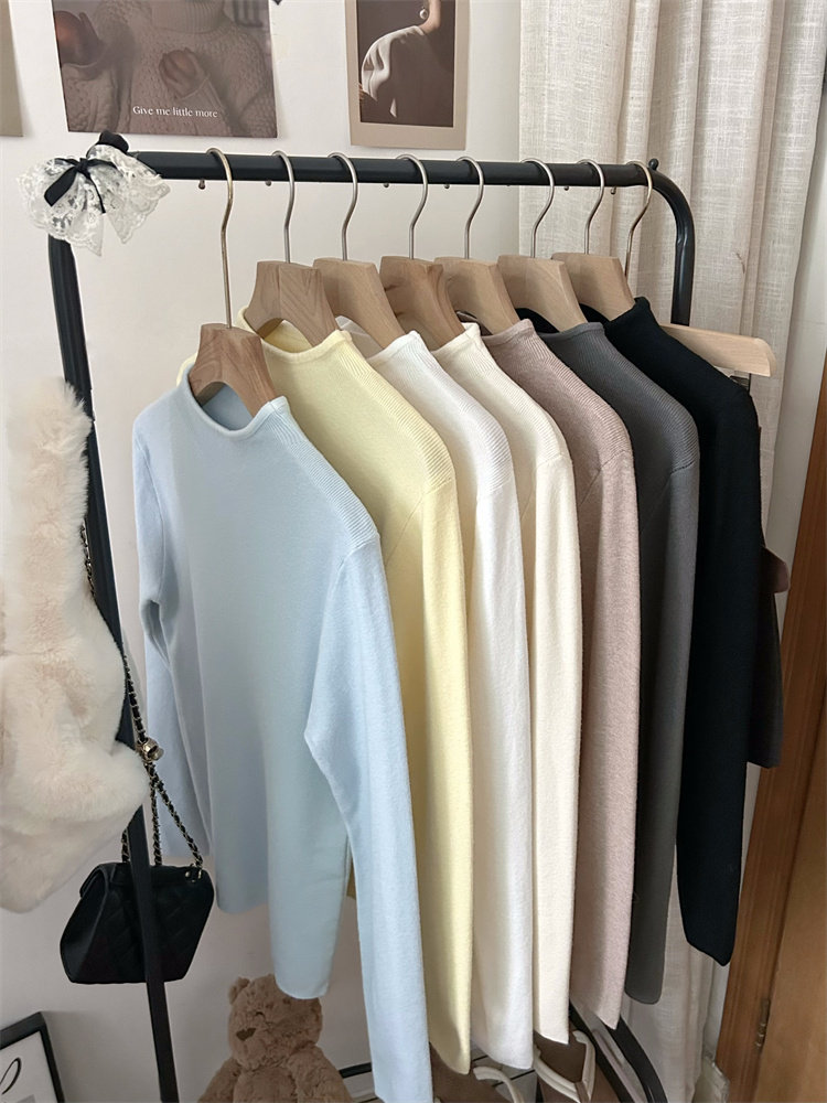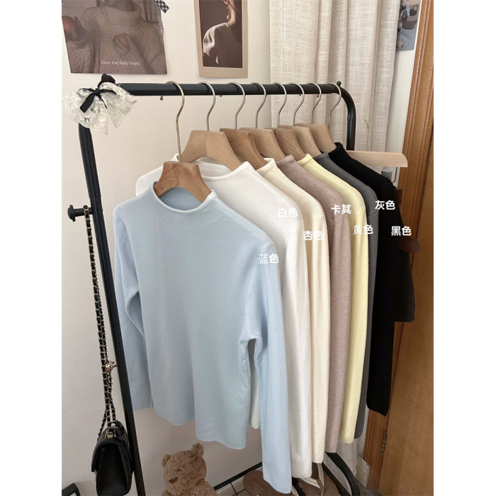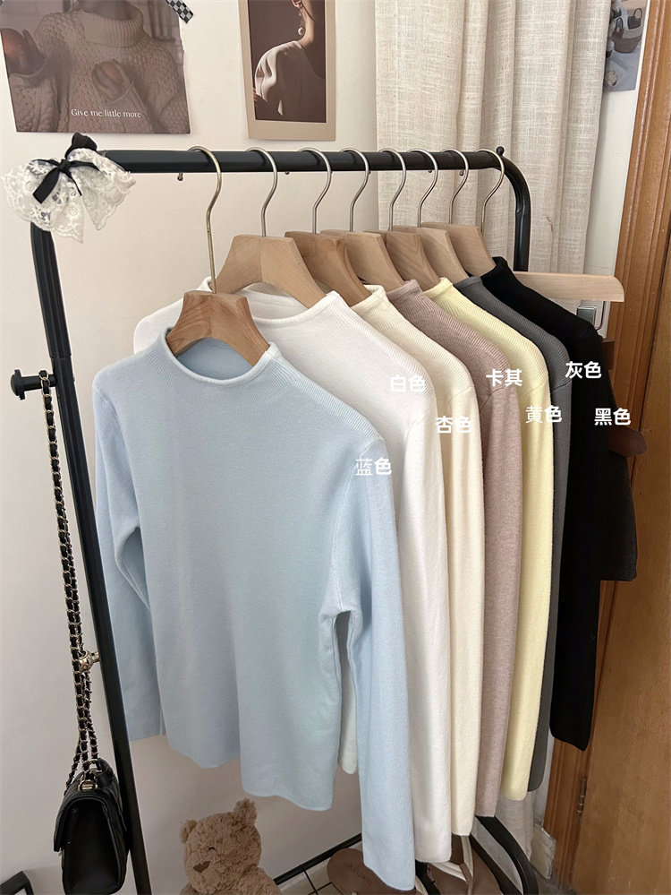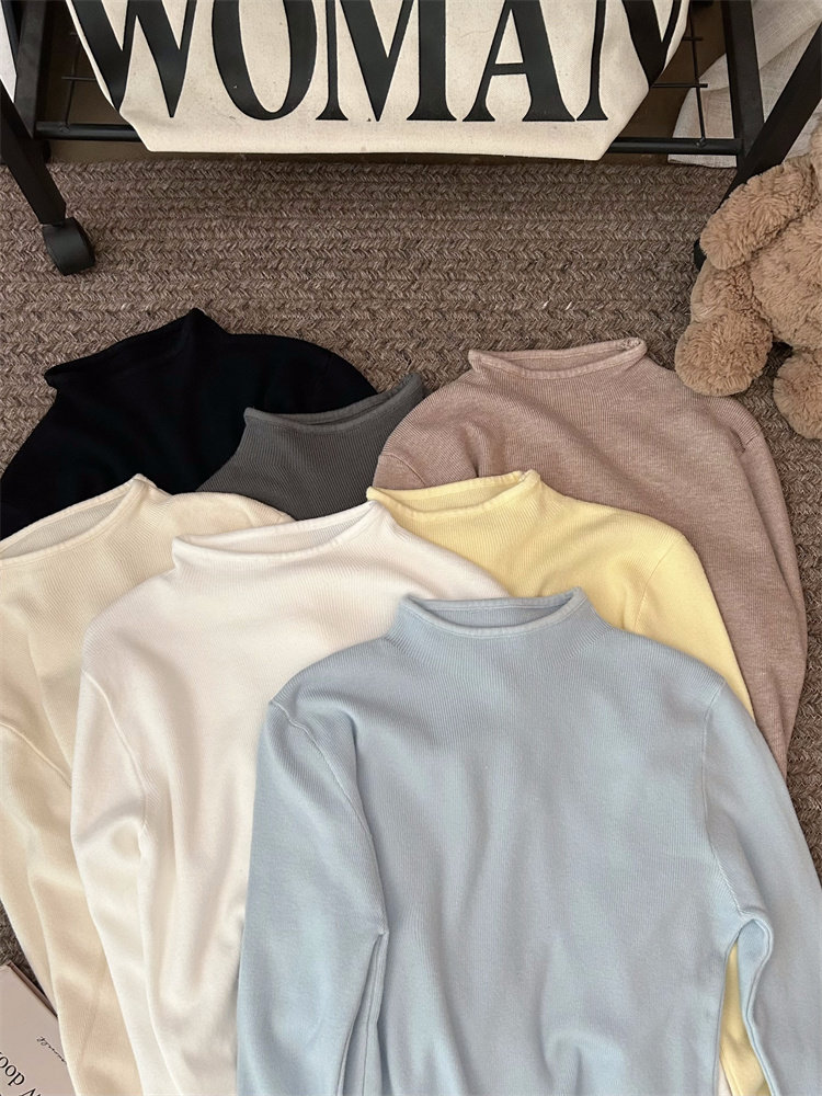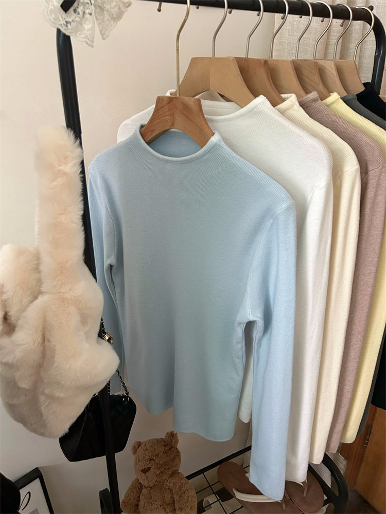 半高領藍色打底衫小衆內搭針織衫毛衣女冬季百搭顯瘦長袖單穿上衣