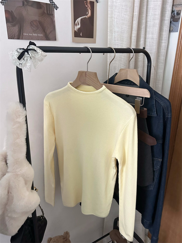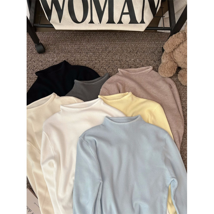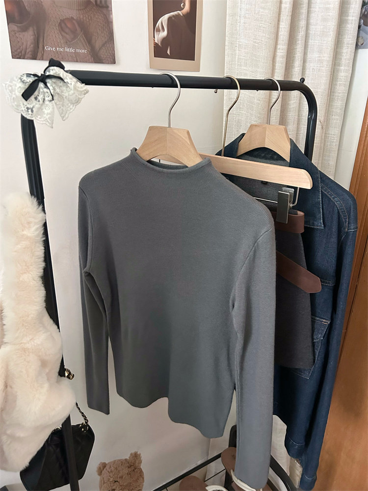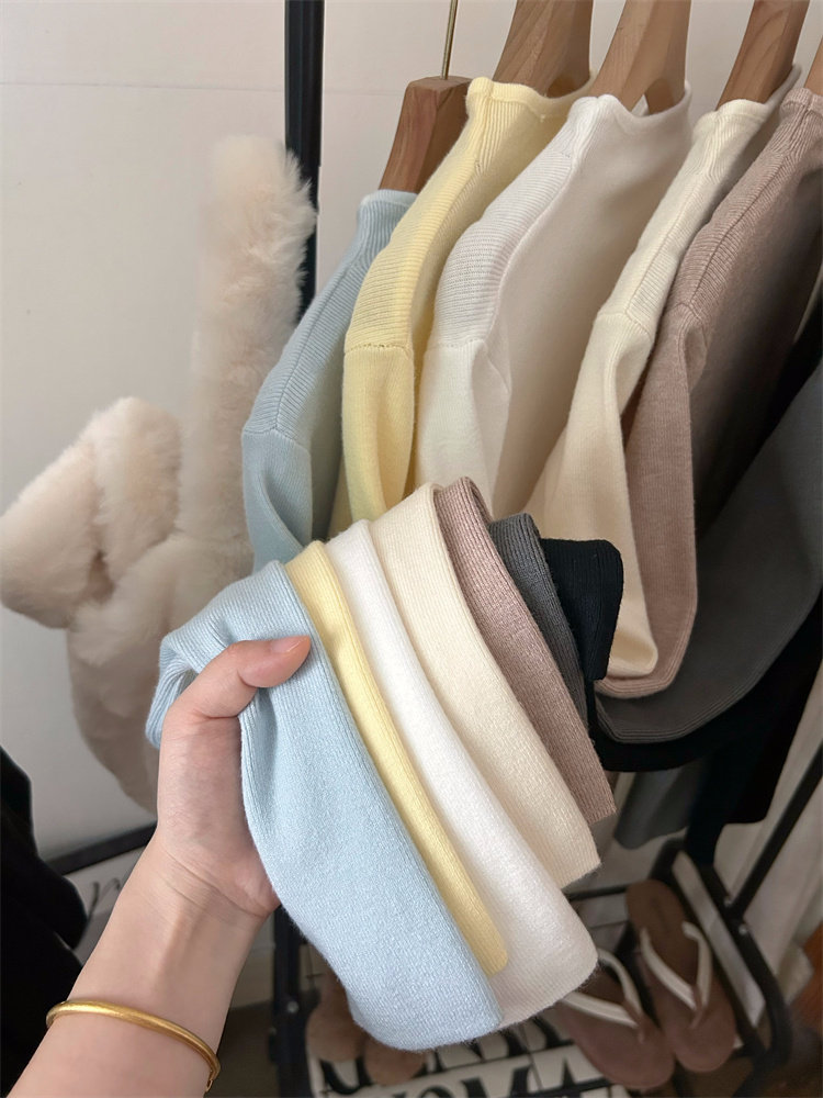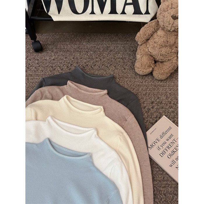 半高領藍色打底衫小衆內搭針織衫毛衣女冬季百搭顯瘦長袖單穿上衣