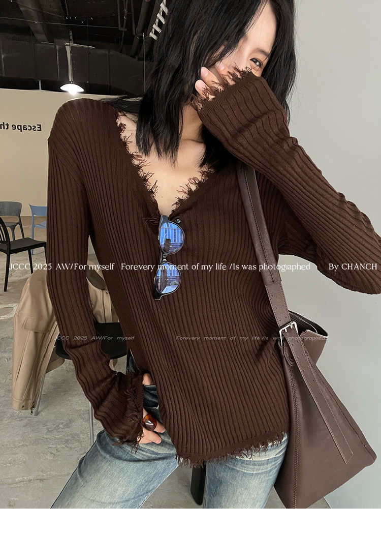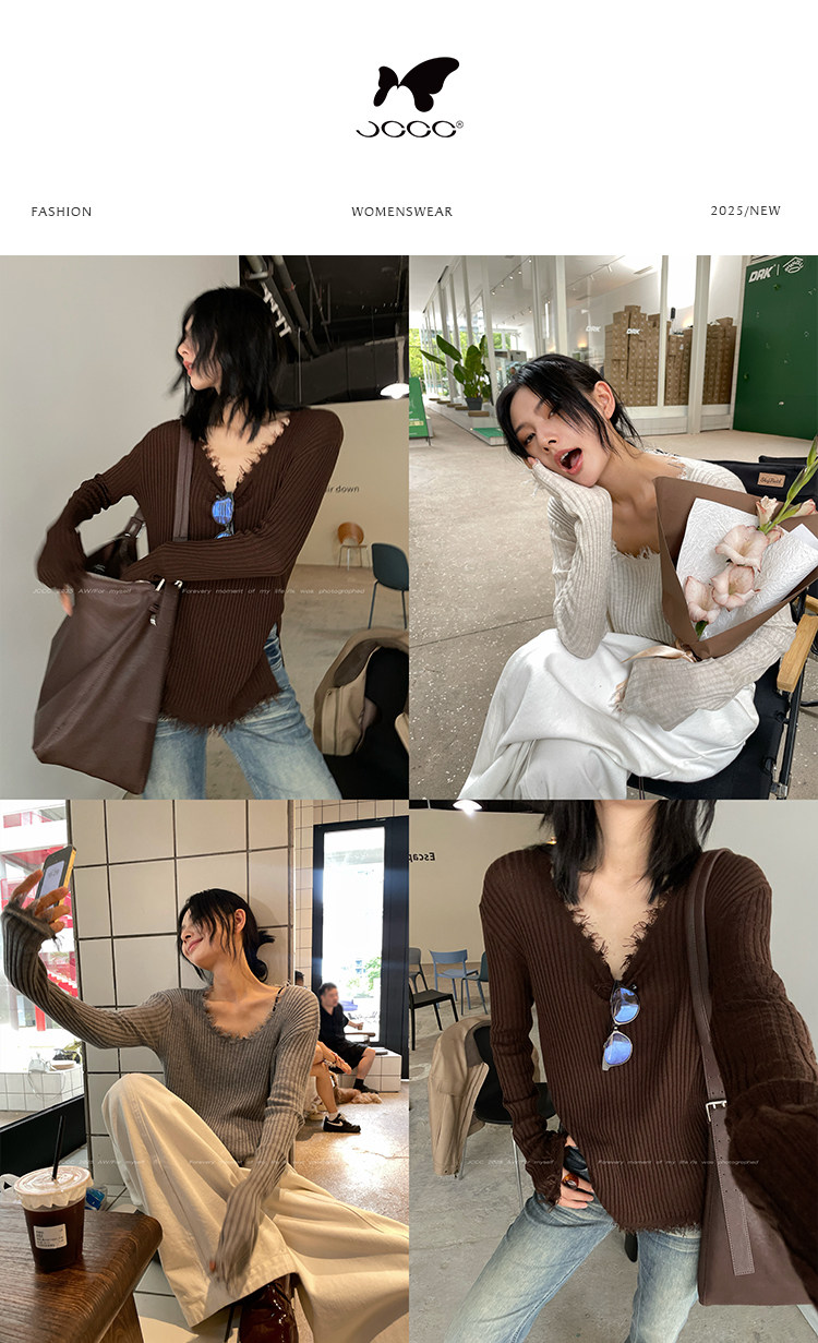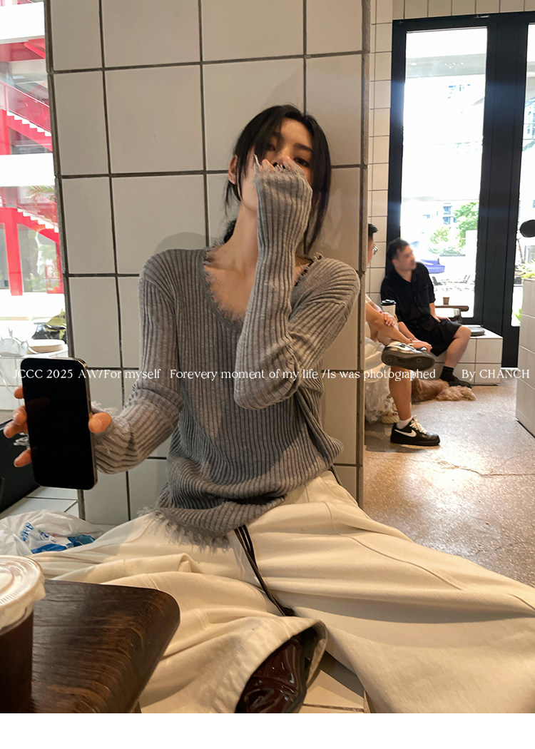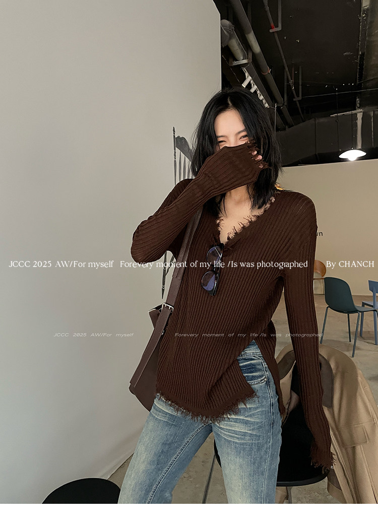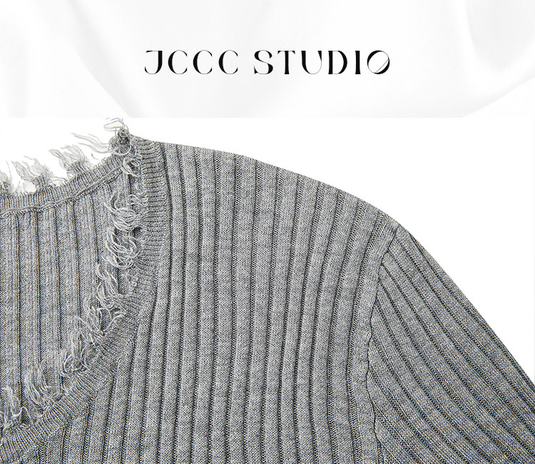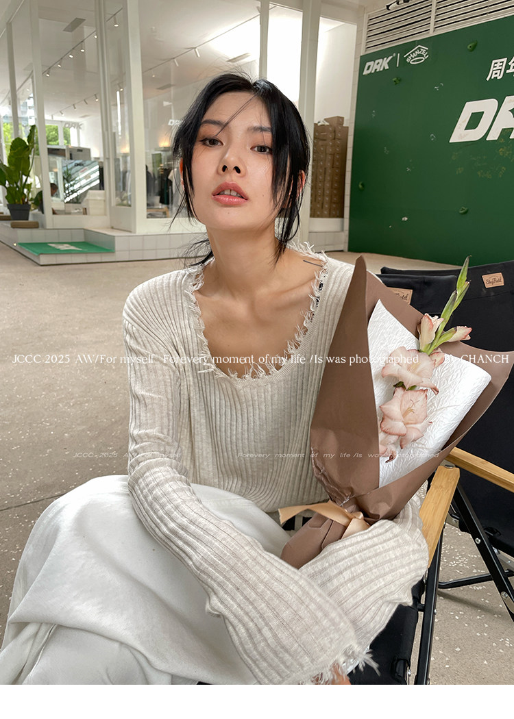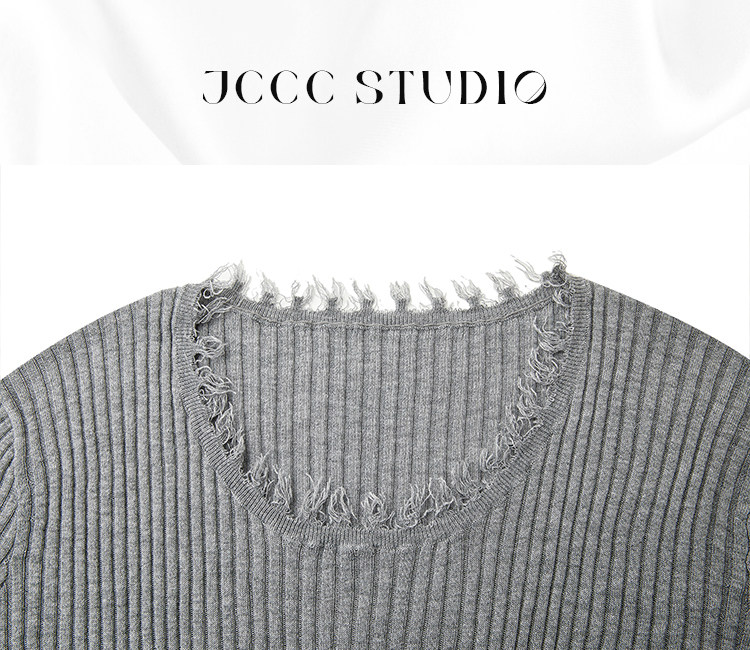 JCCC影子【毛邊肌理衫】四色毛邊竪坑條顯瘦毛邊羊毛針織打底衫