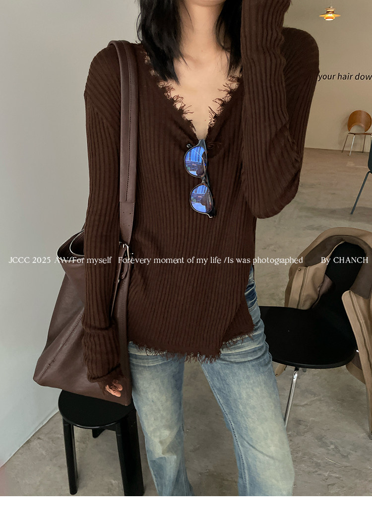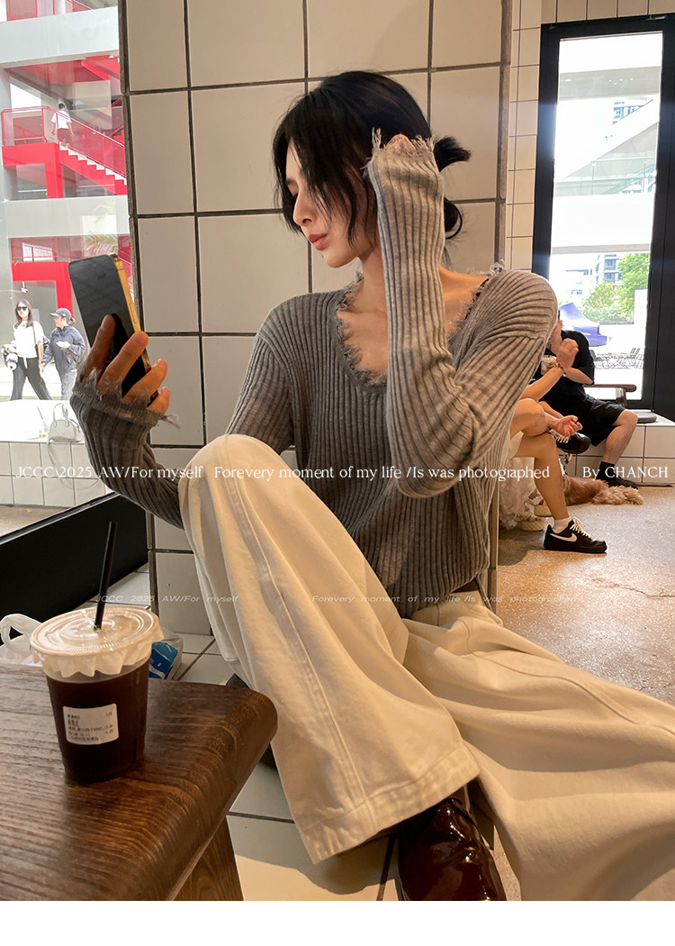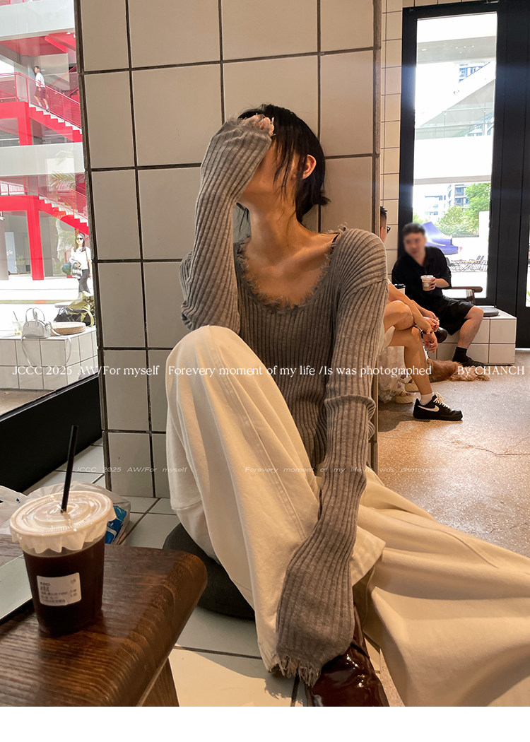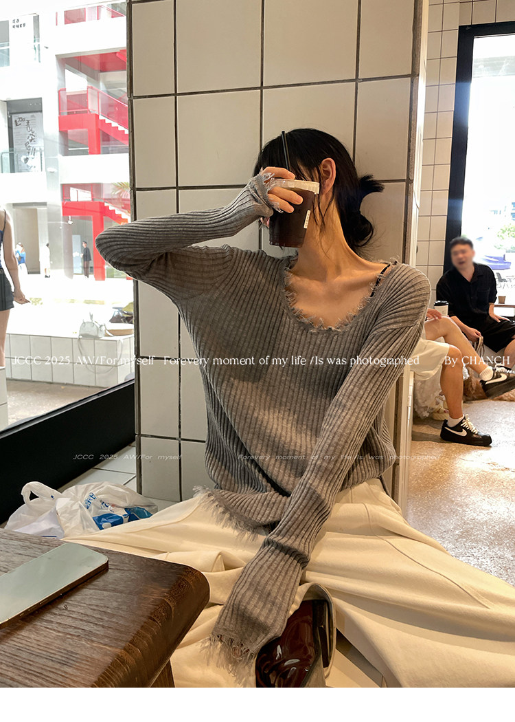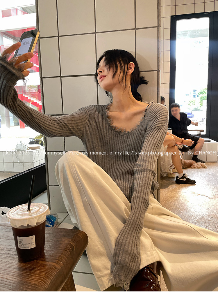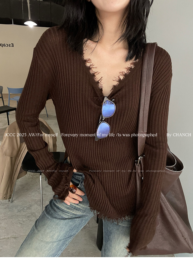 JCCC影子【毛邊肌理衫】四色毛邊竪坑條顯瘦毛邊羊毛針織打底衫