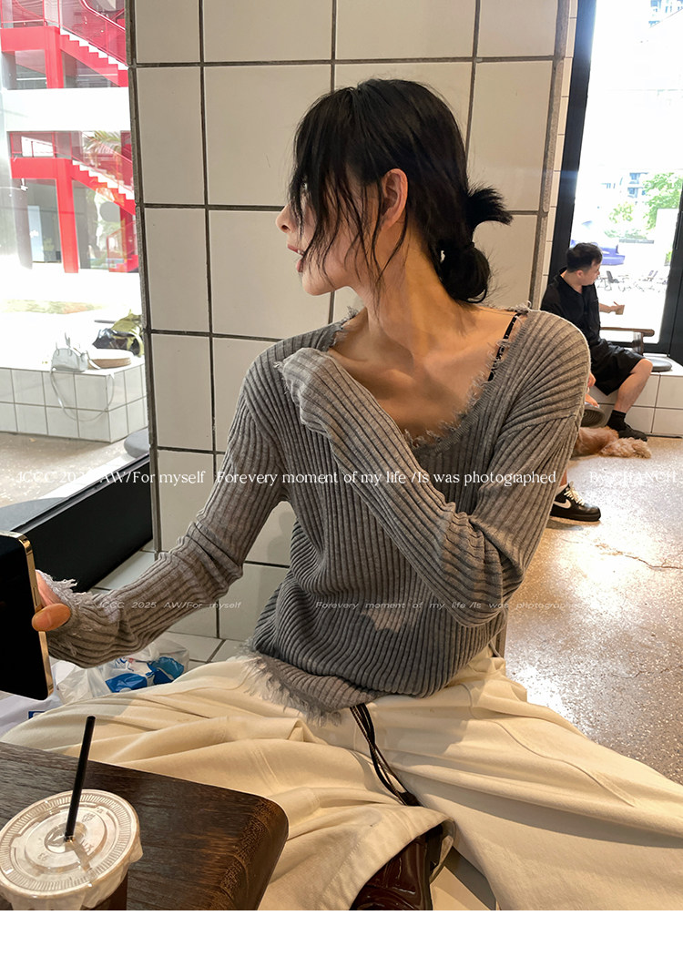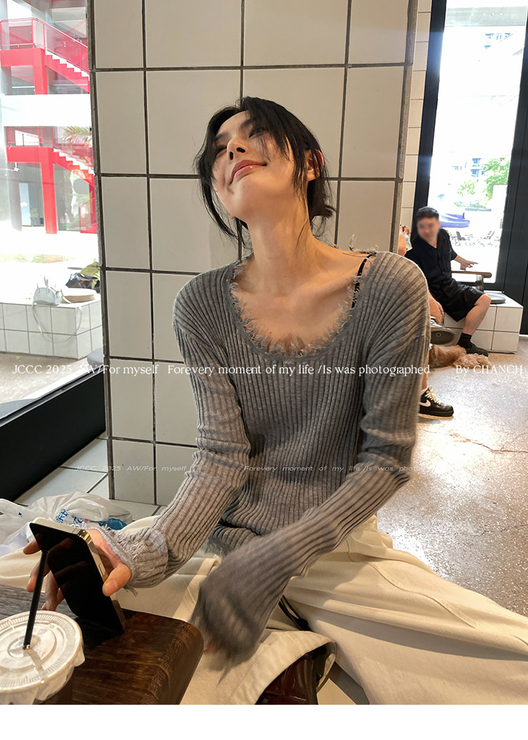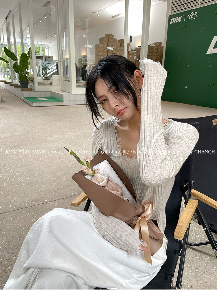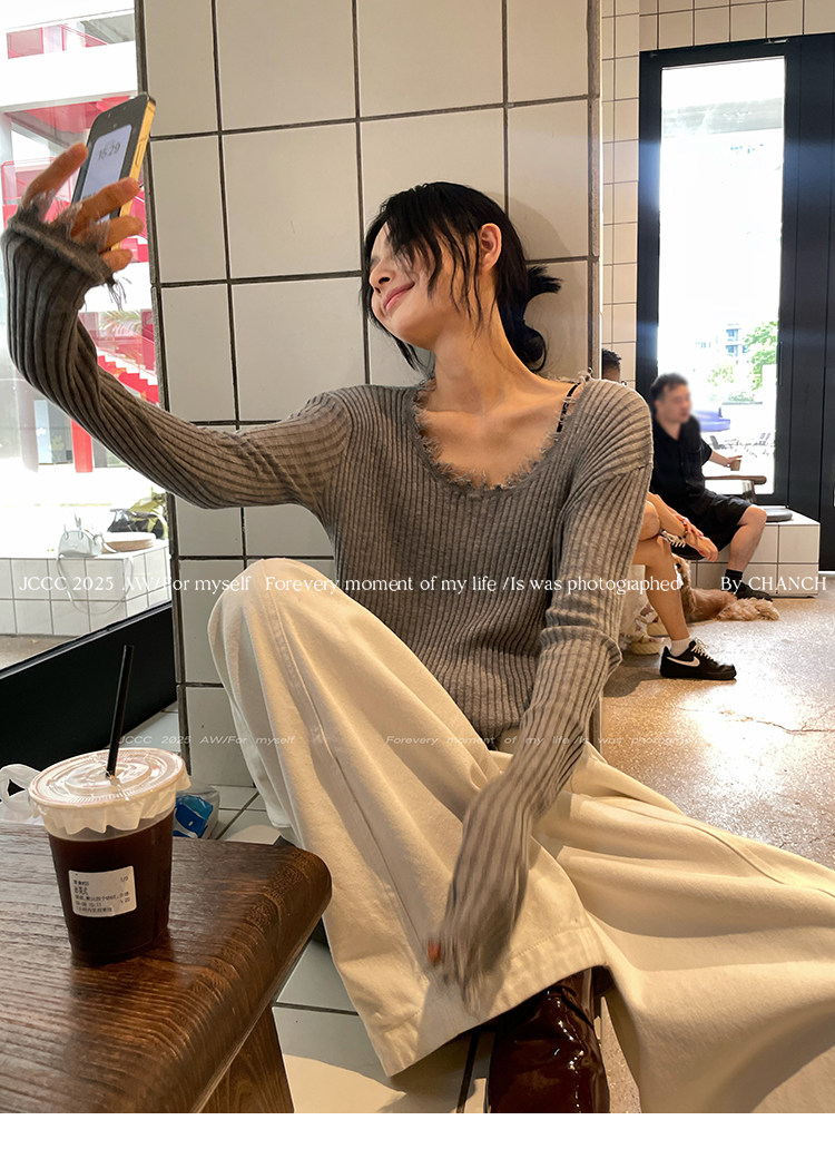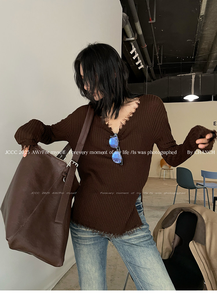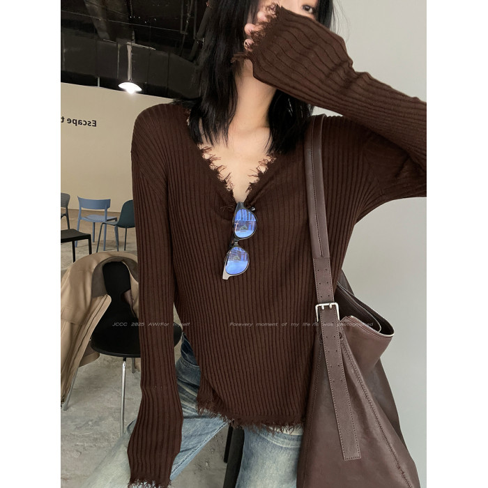 JCCC影子【毛邊肌理衫】四色毛邊竪坑條顯瘦毛邊羊毛針織打底衫