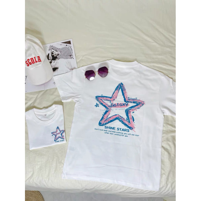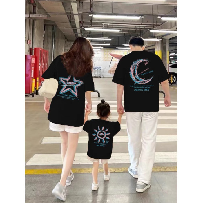 親子裝一家三口四口短袖t恤2025新款夏季寬松半袖體恤衫全家裝潮