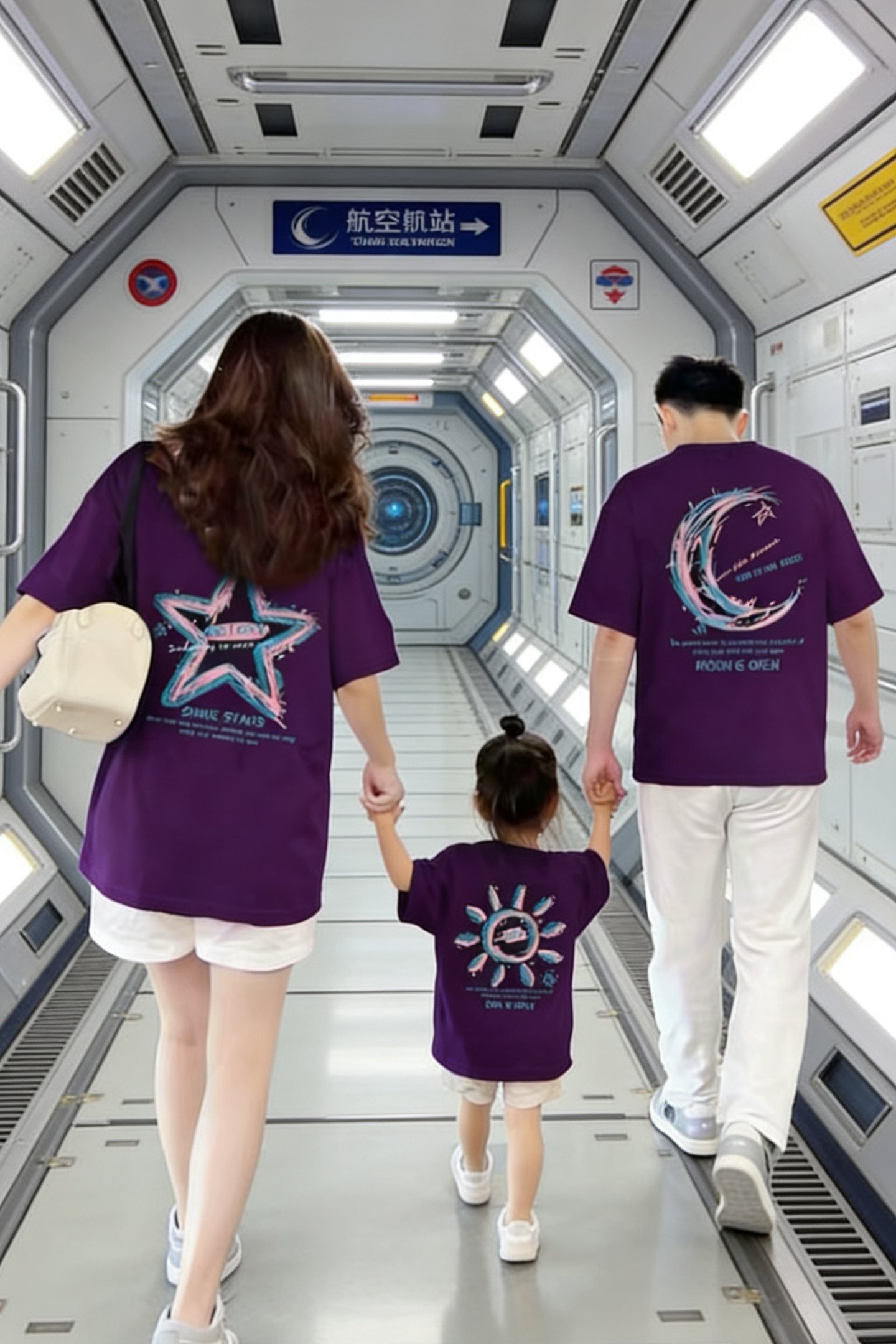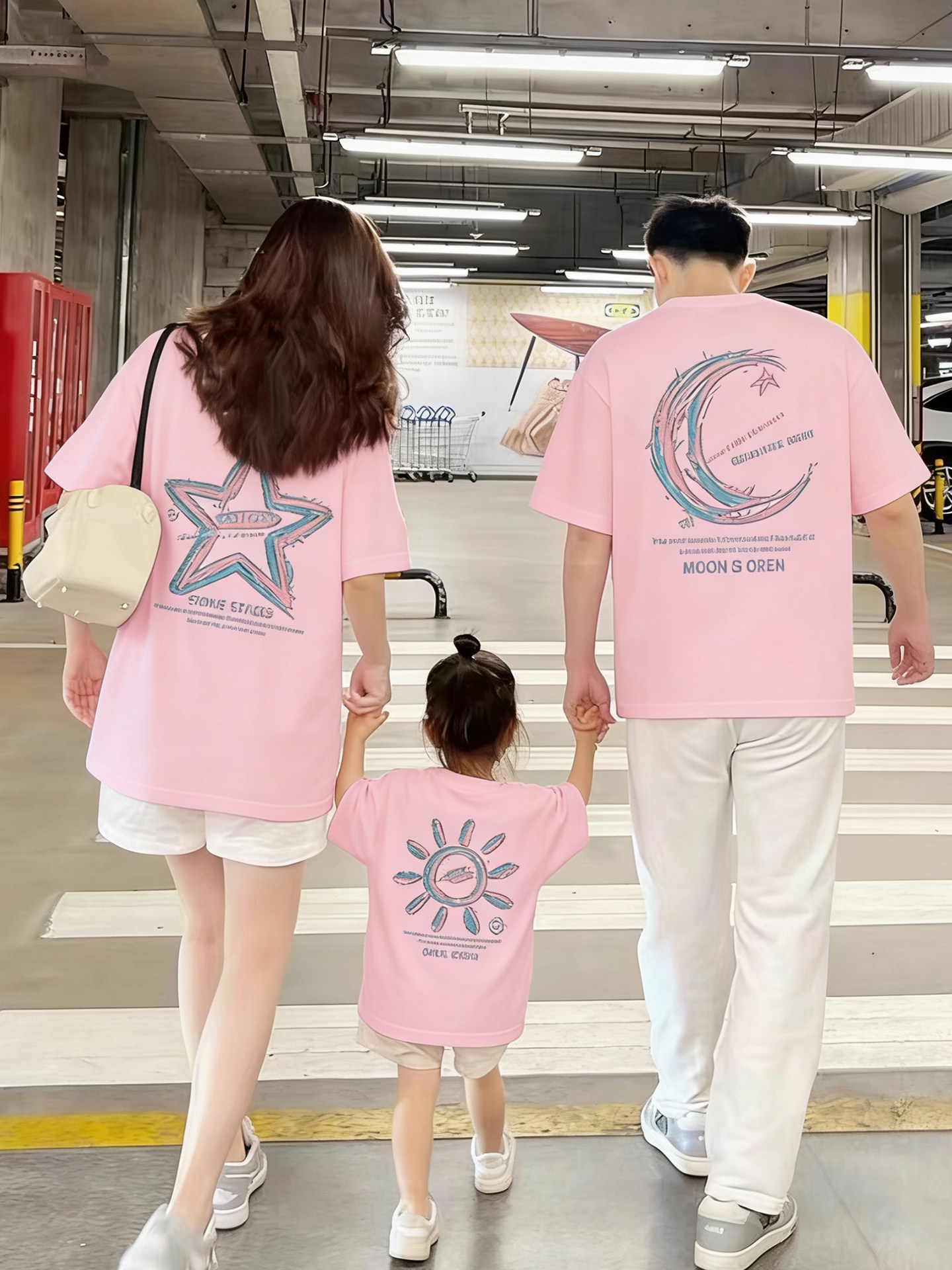 親子裝一家三口四口短袖t恤2025新款夏季寬鬆半袖體恤衫全家裝潮