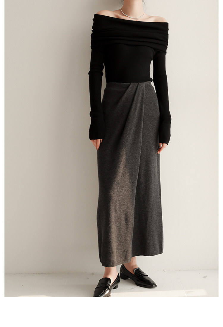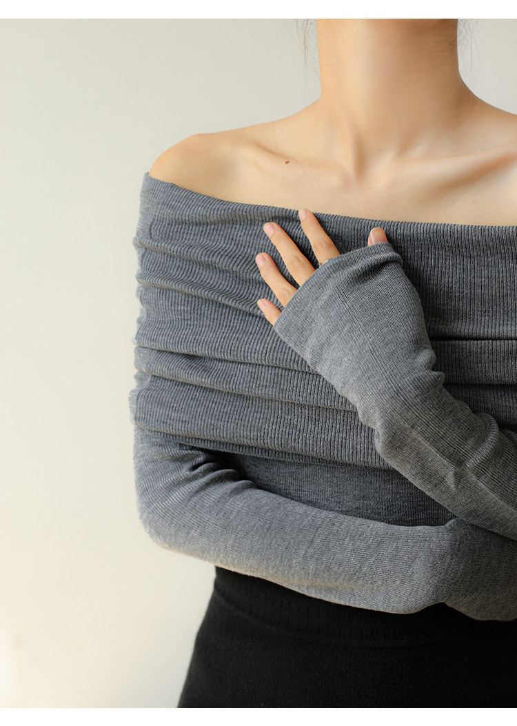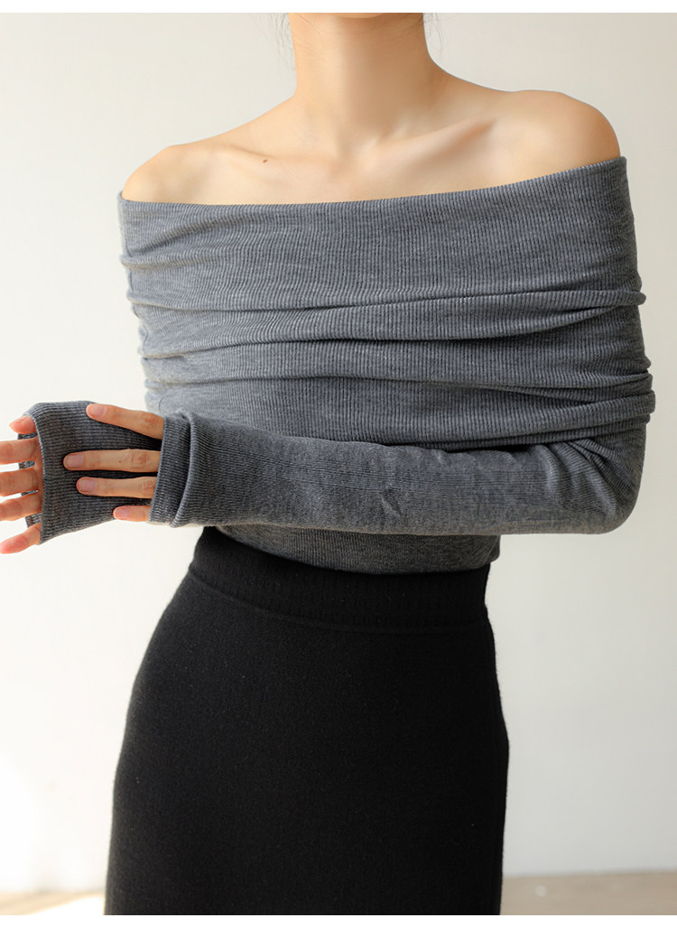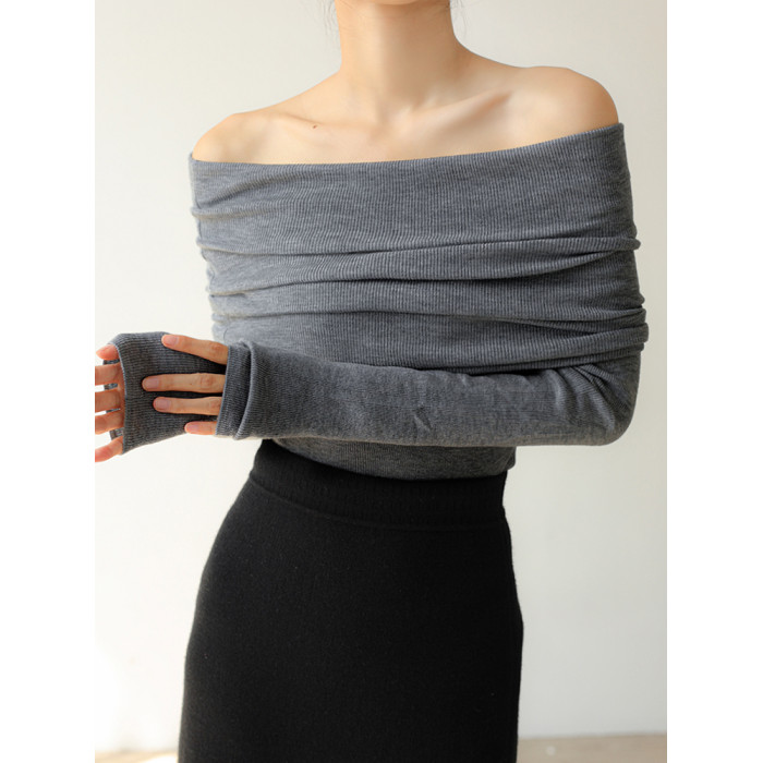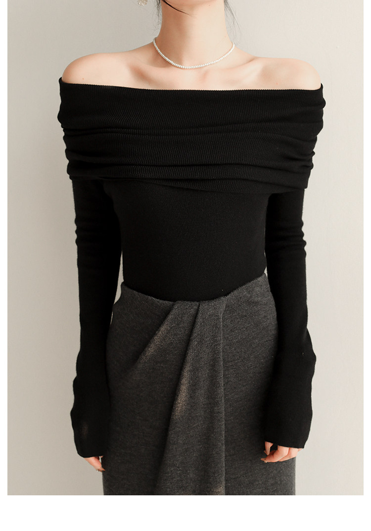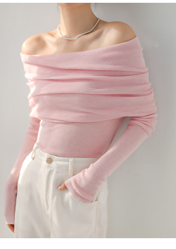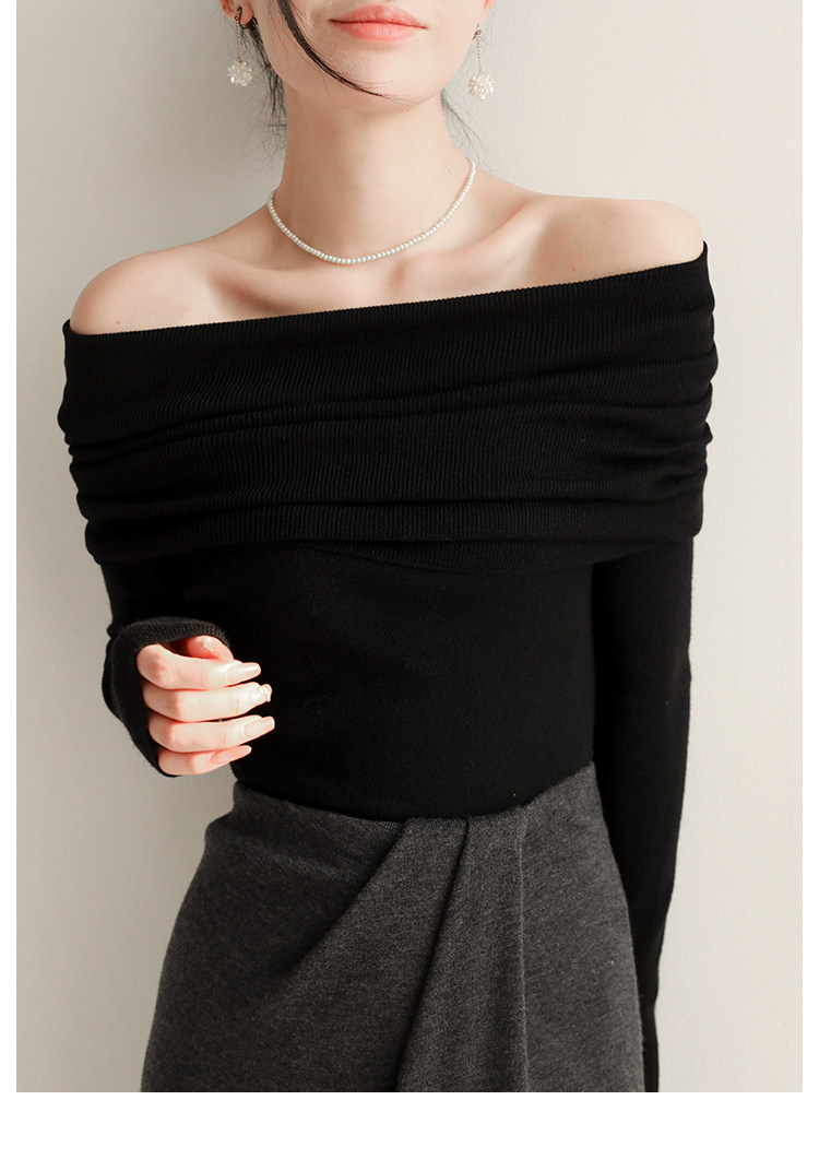 聖誕紅色一字領露肩毛衣女秋冬修身羊毛針織衫設計感內搭外穿上衣
