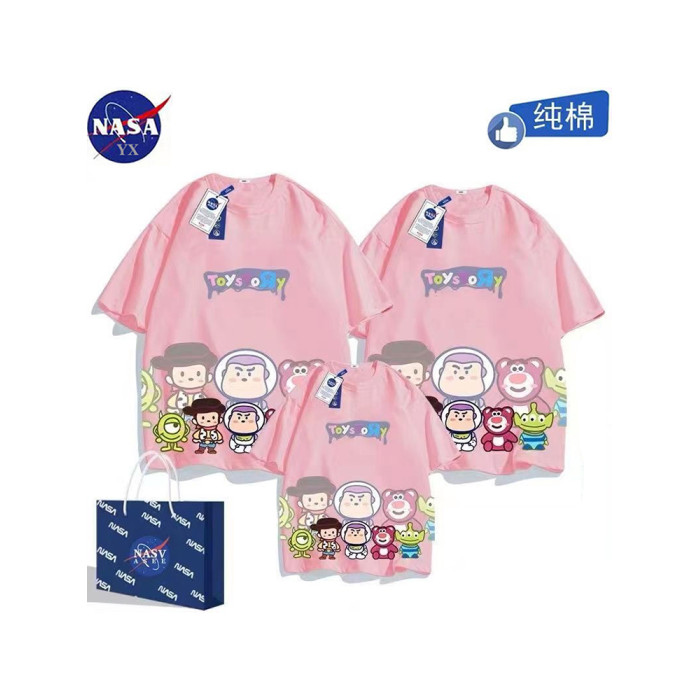 NASA夏季純棉寬松短袖T恤洋氣玩具總動員一家三口四口親子母女裝