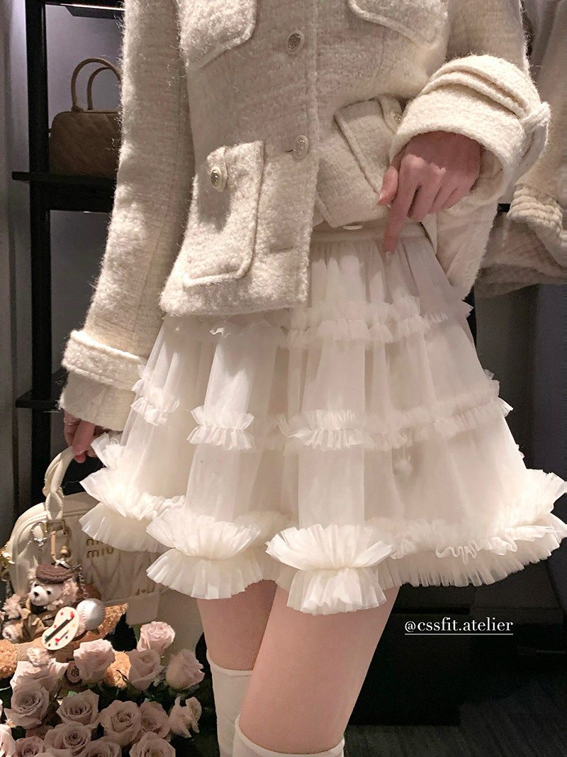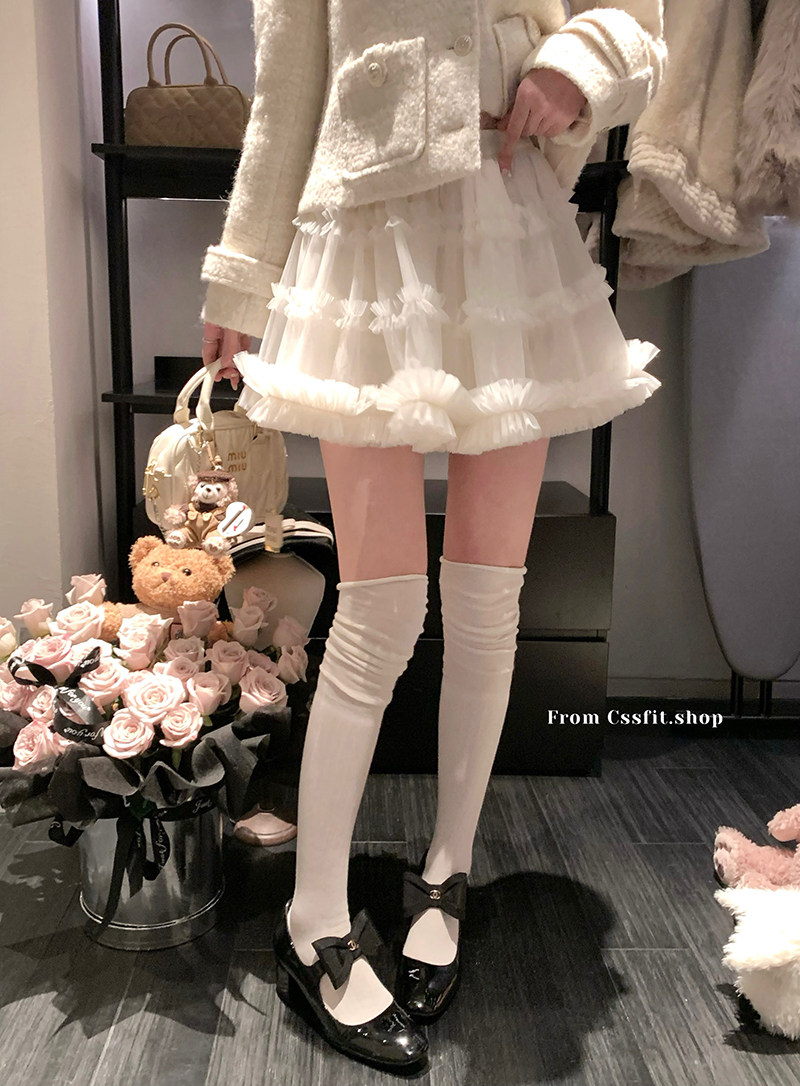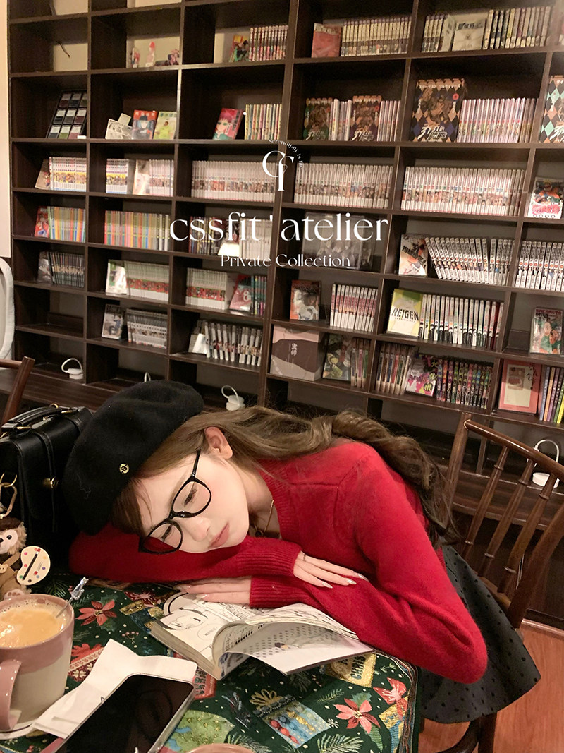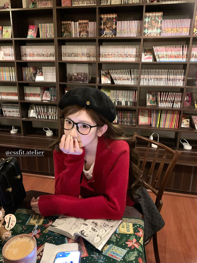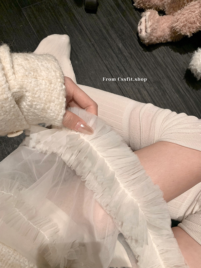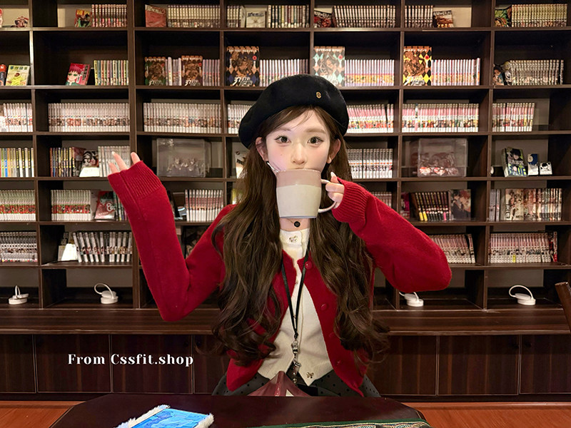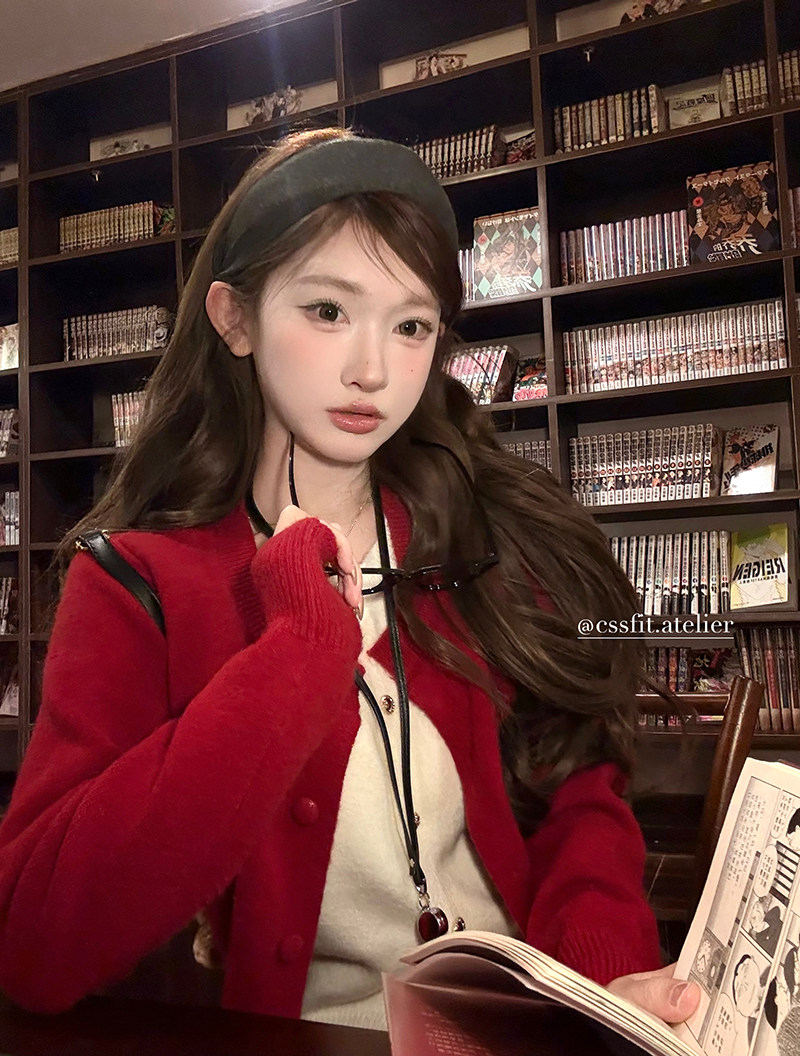 遲繖繖 節日限定番 新年聖誕紅色假兩件曡穿針織開衫白色紗裙短裙