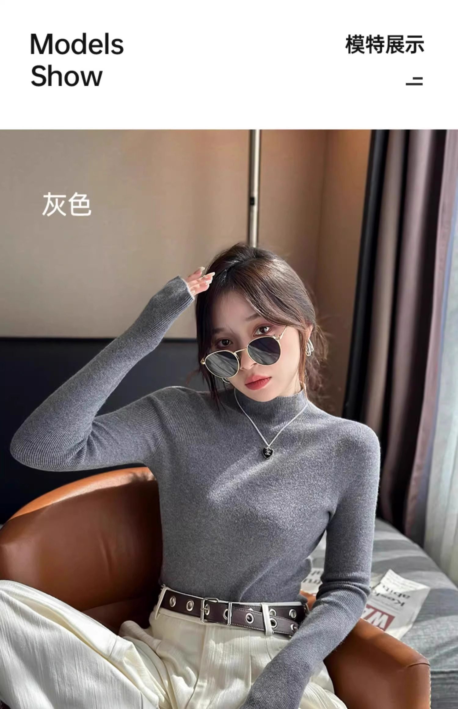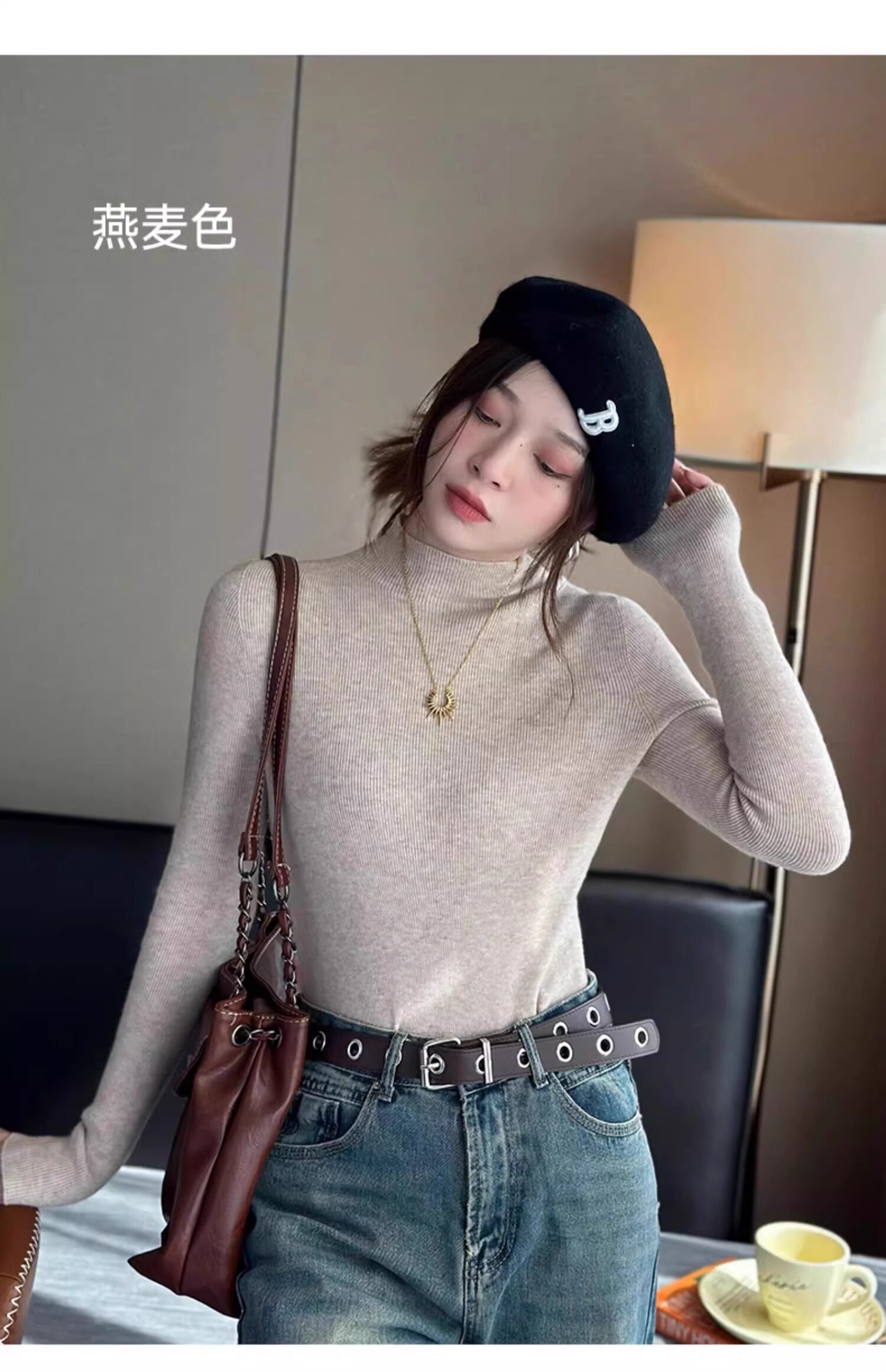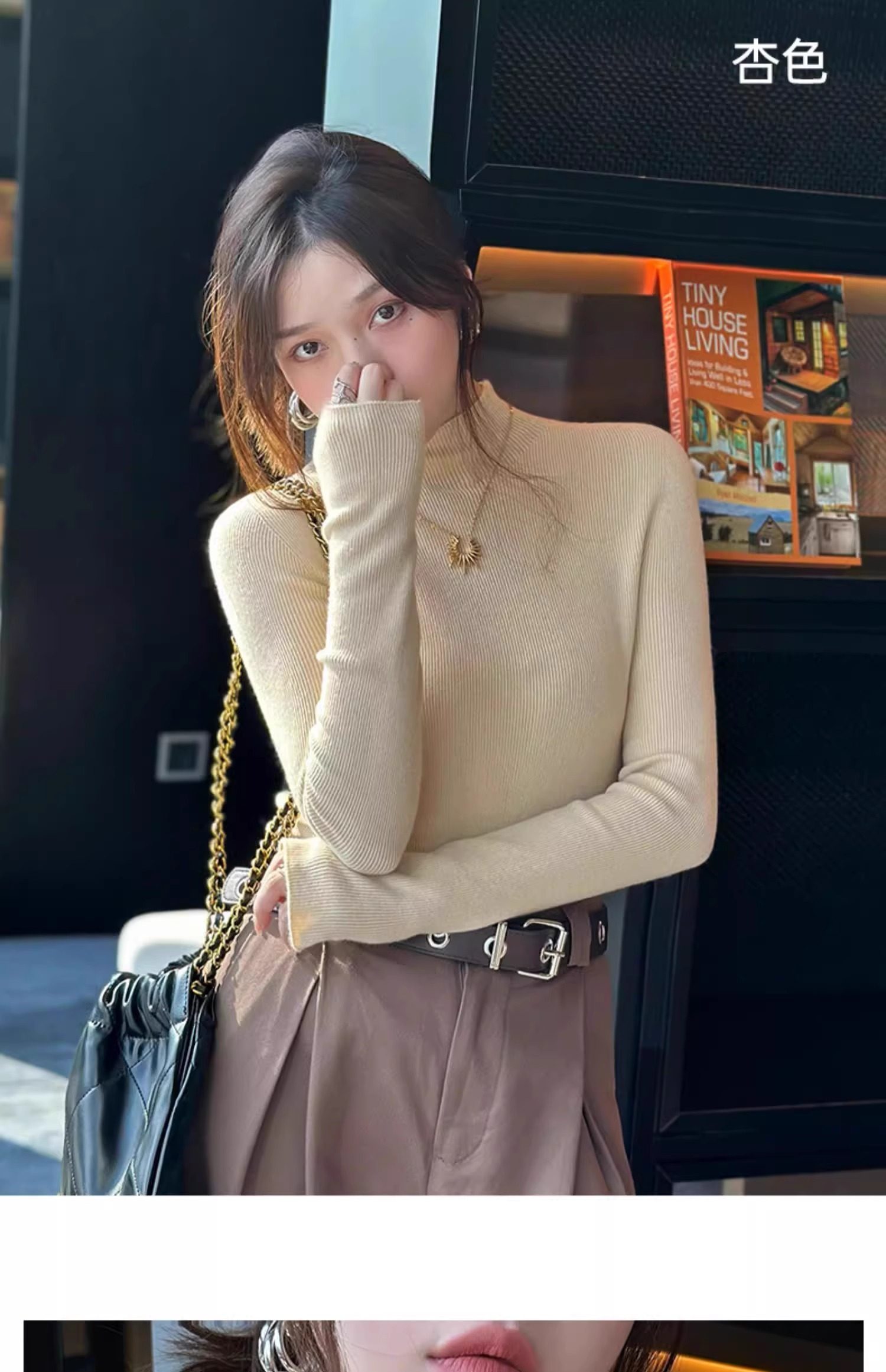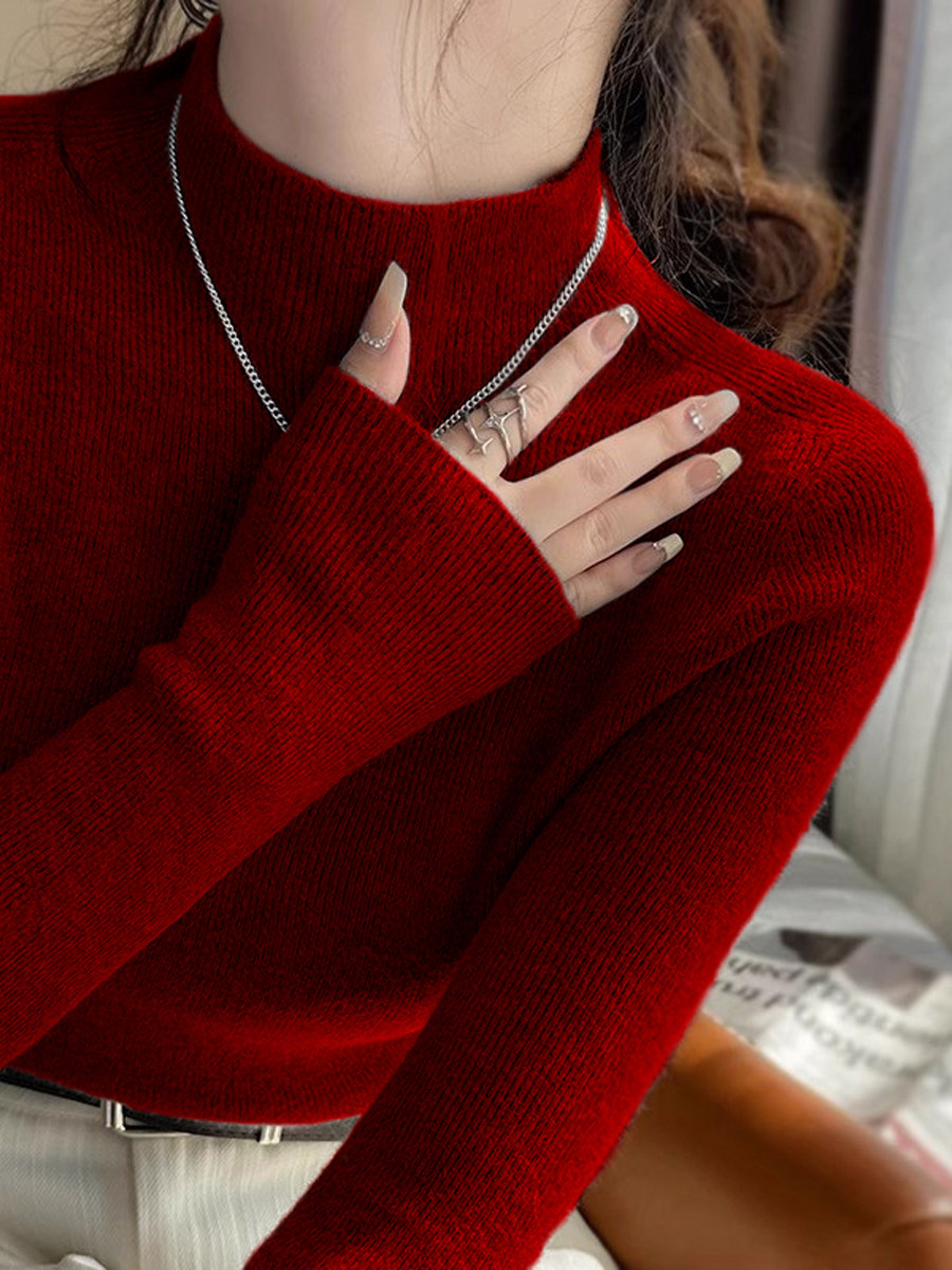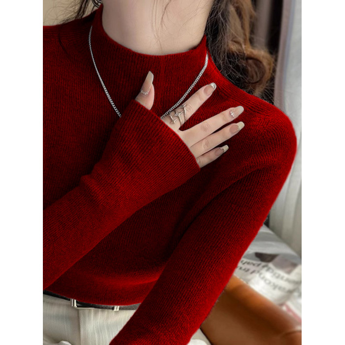 新年紅半高領軟糯羊毛打底衫女內搭針織衫聖誕紅復古中領紅色毛衣