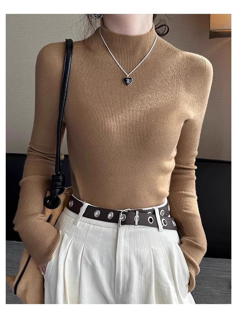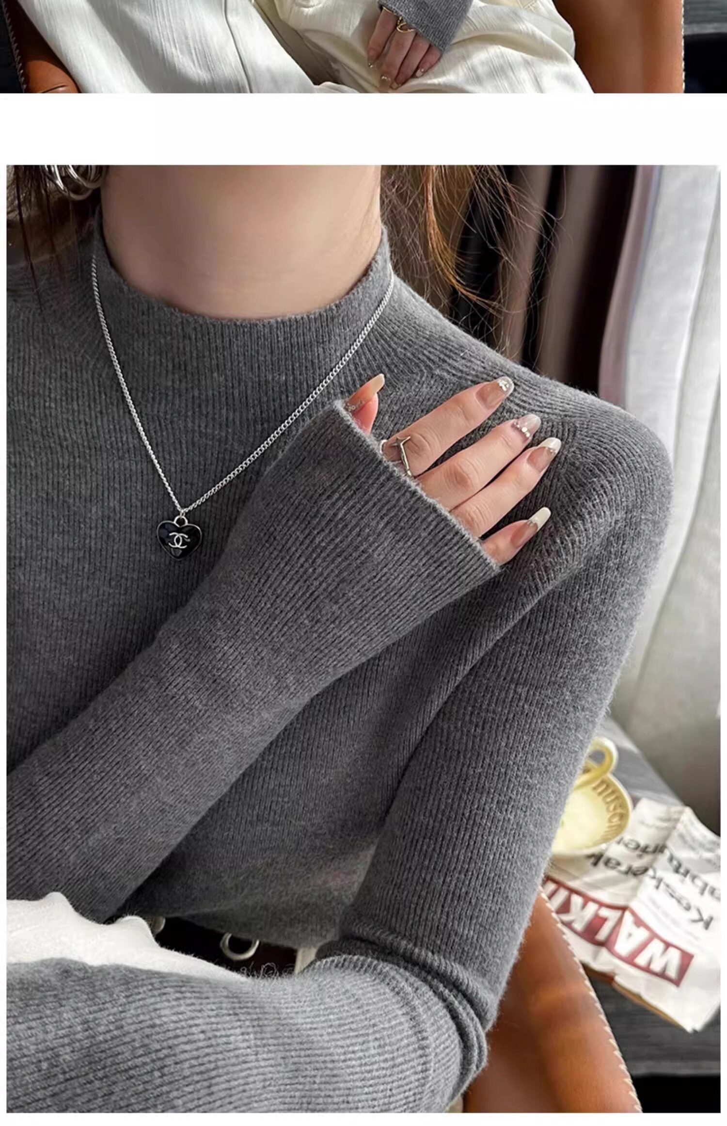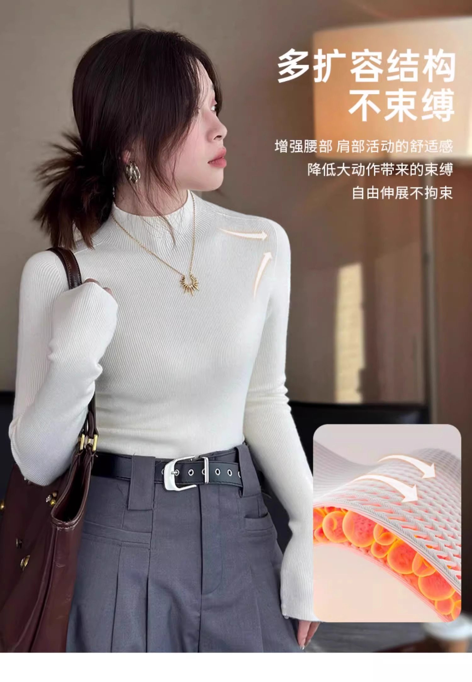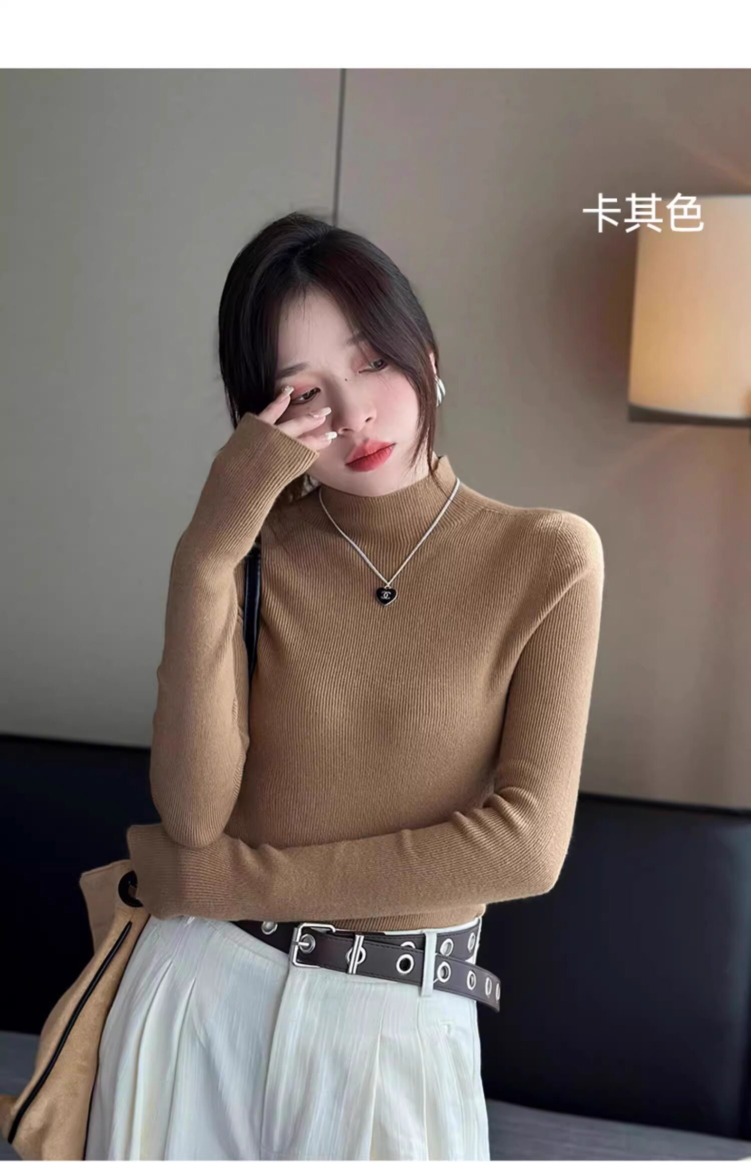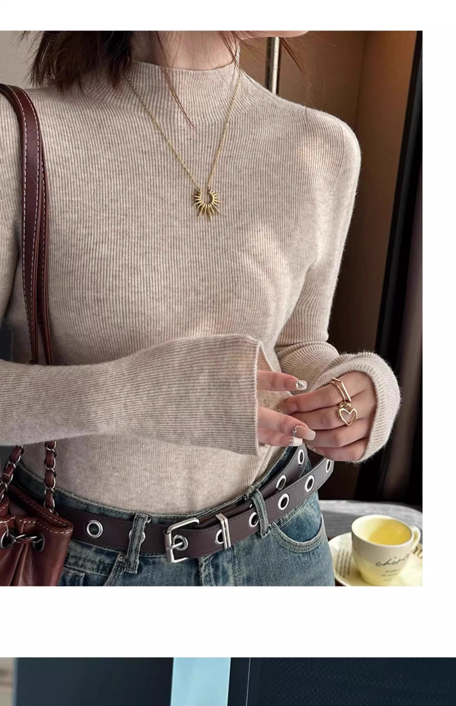 新年紅半高領軟糯羊毛打底衫女內搭針織衫聖誕紅復古中領紅色毛衣