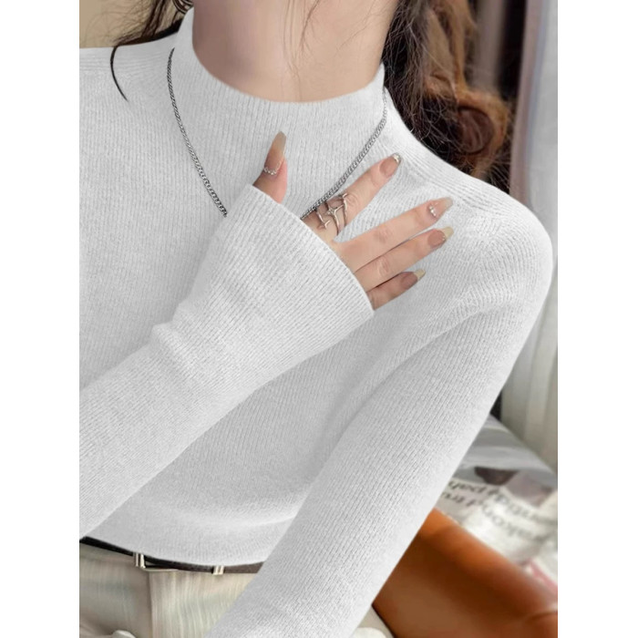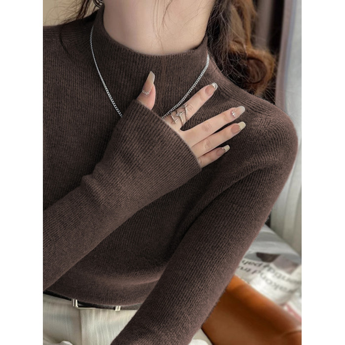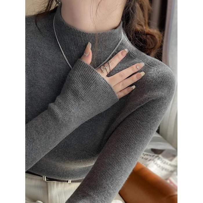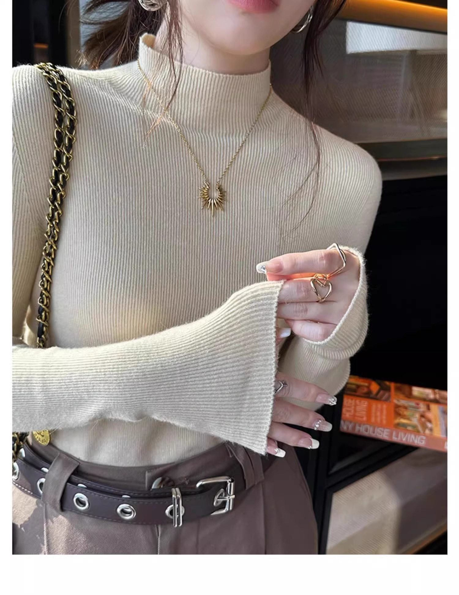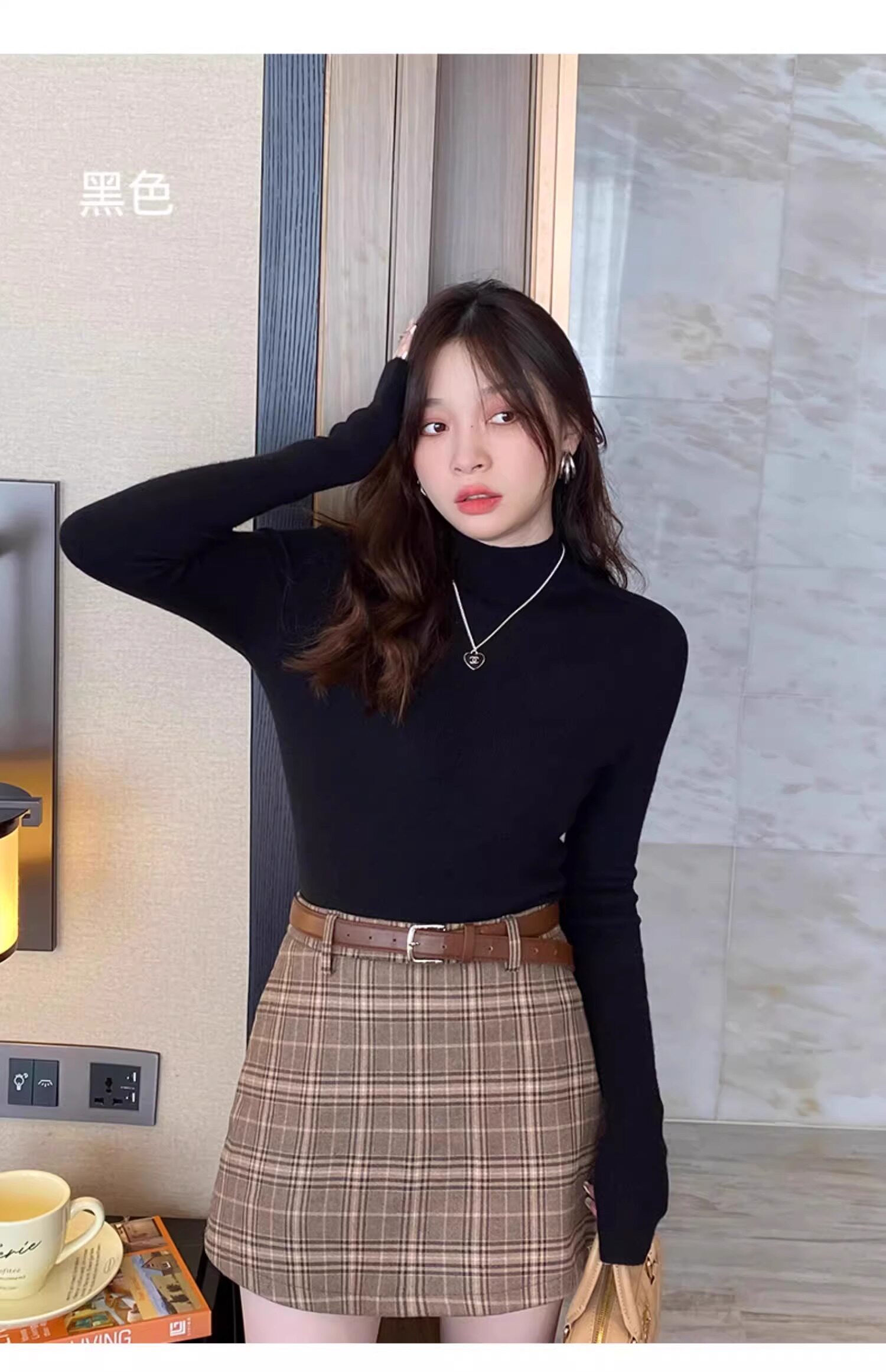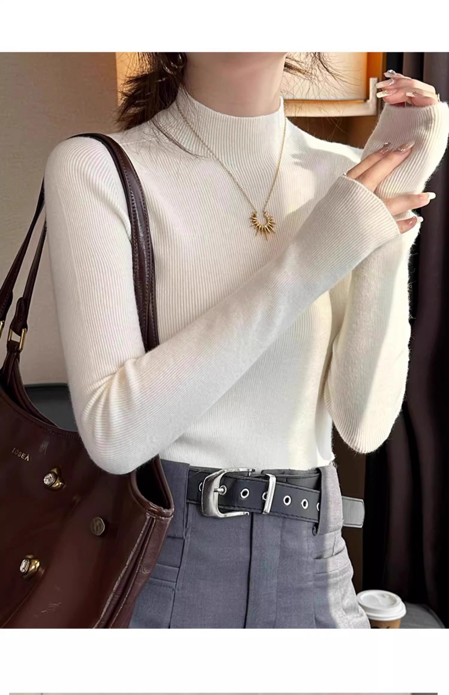 新年紅半高領軟糯羊毛打底衫女內搭針織衫聖誕紅復古中領紅色毛衣