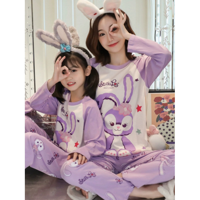 洋氣母女睡衣純棉長袖親子裝春秋季可愛女孩中大童卡通兒童家居服