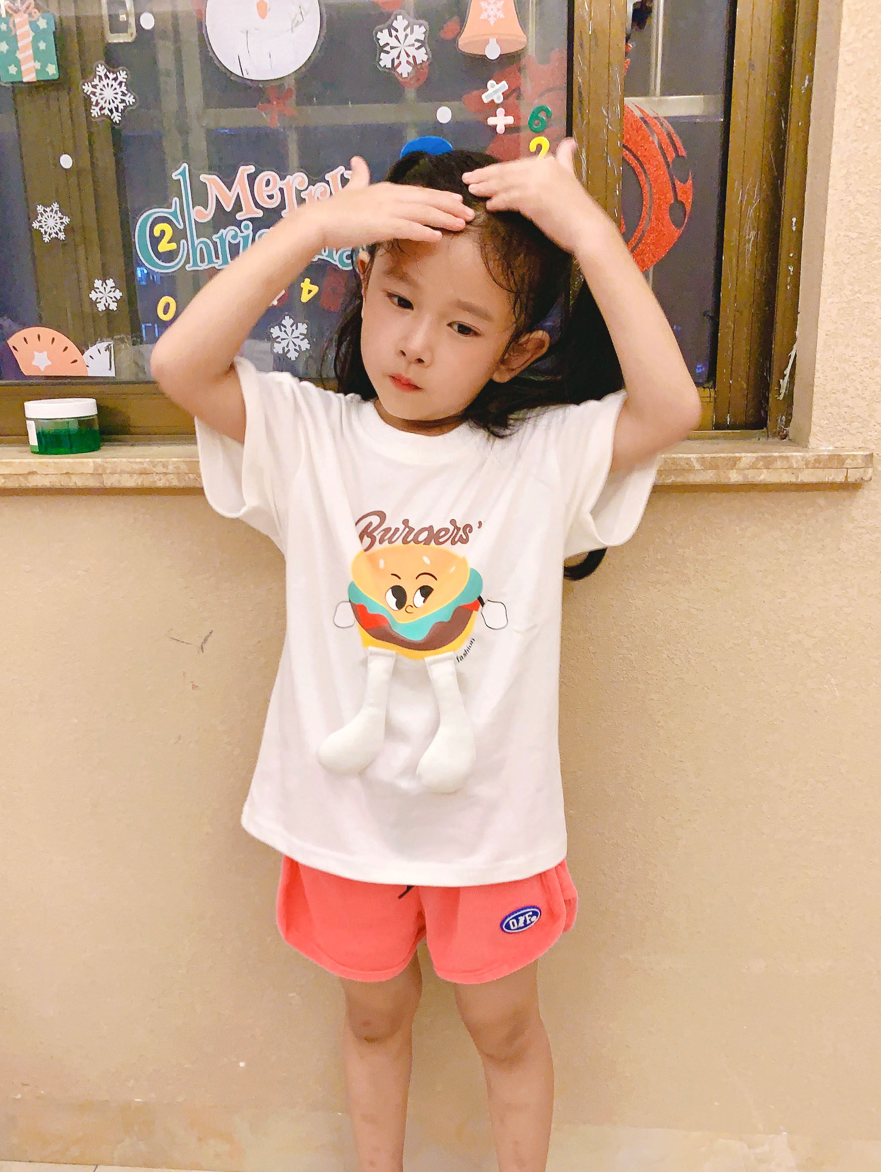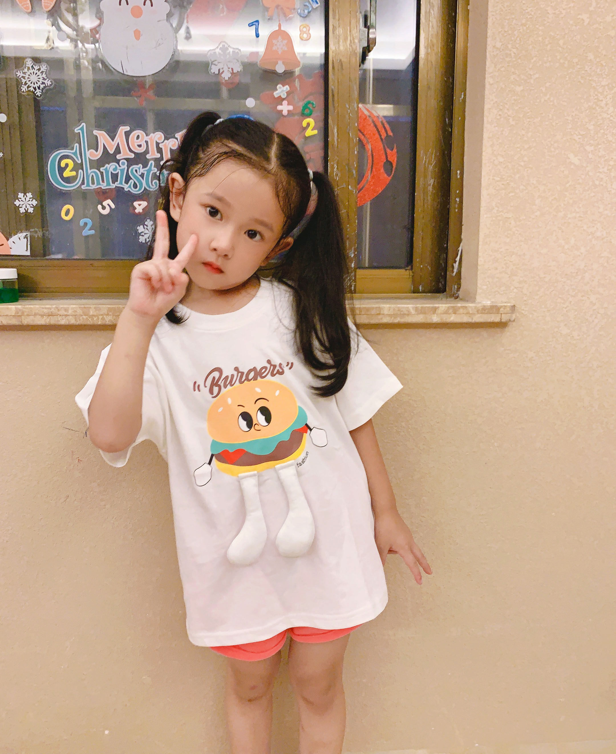 小月齡親子裝一家三口夏季漢堡短袖t恤炸街高級嬰兒母子母女款潮