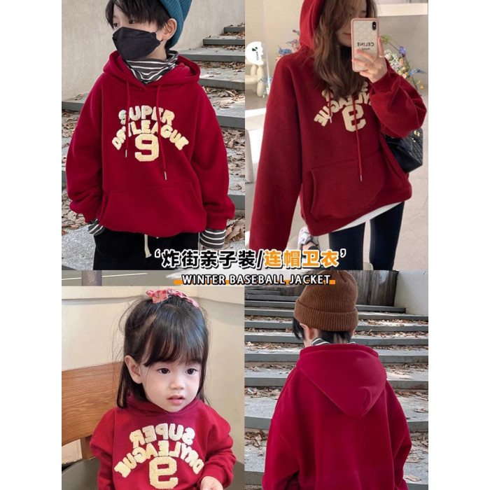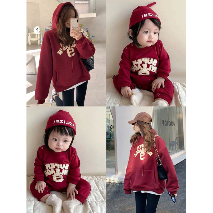 親子裝2025秋冬裝新款過年一家三四口年服衛衣兒童連帽加絨爬服
