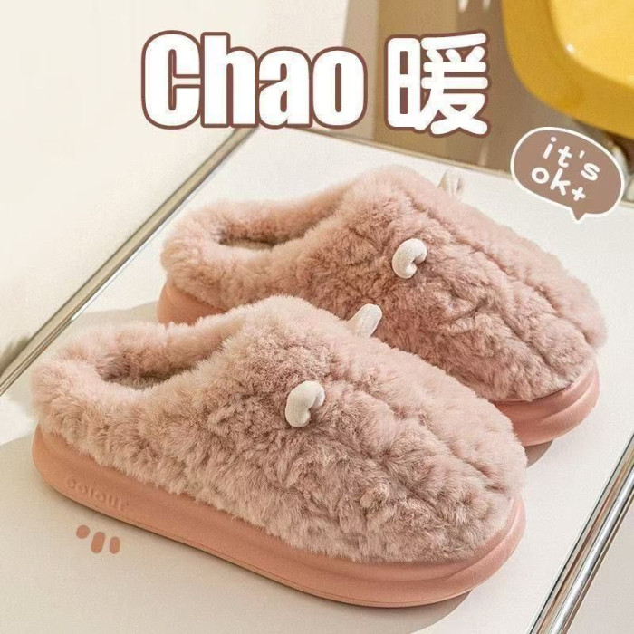 2025小耳朵新款棉拖鞋男女時尚情侶厚底加絨保暖秋冬季地板拖