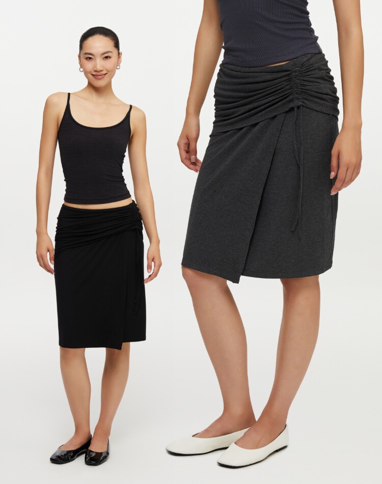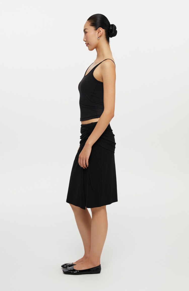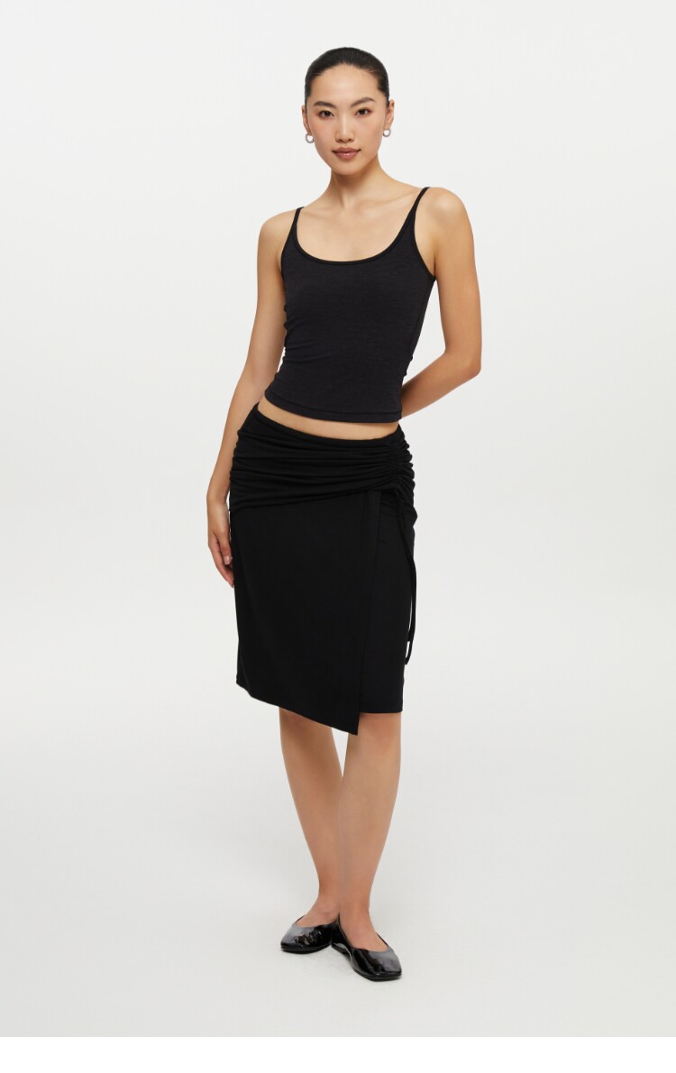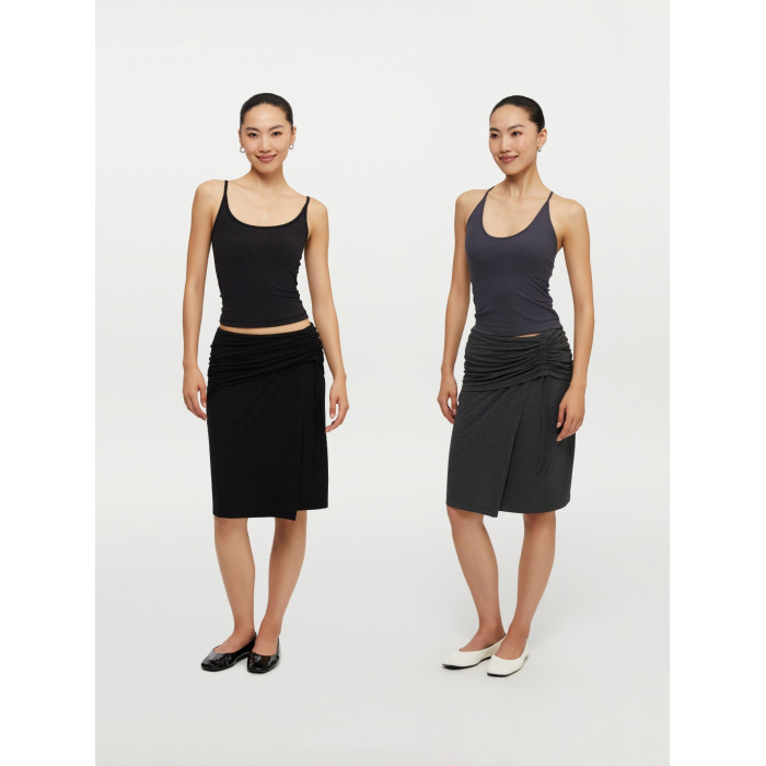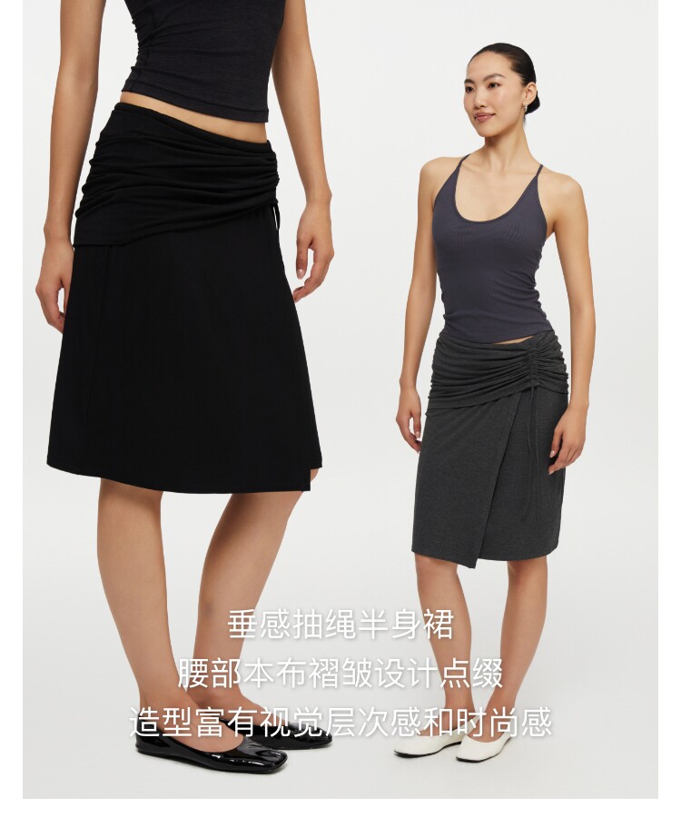oneup垂感黑色半身裙女秋季小個子抽繩半裙高級感小衆中長款裙子