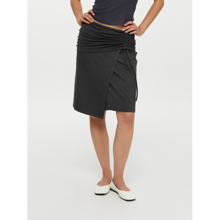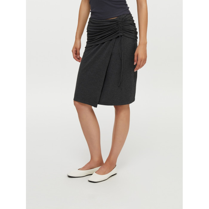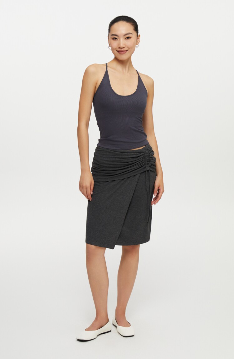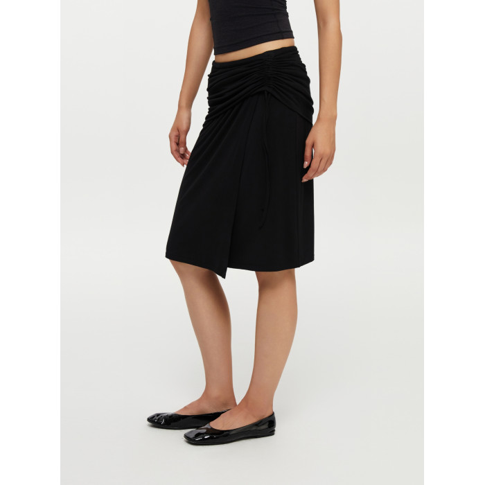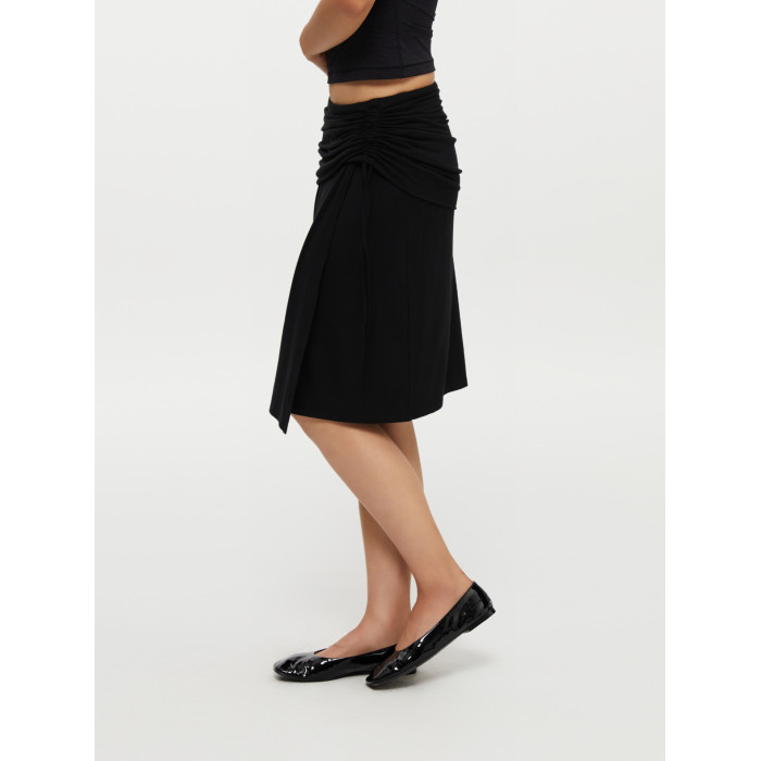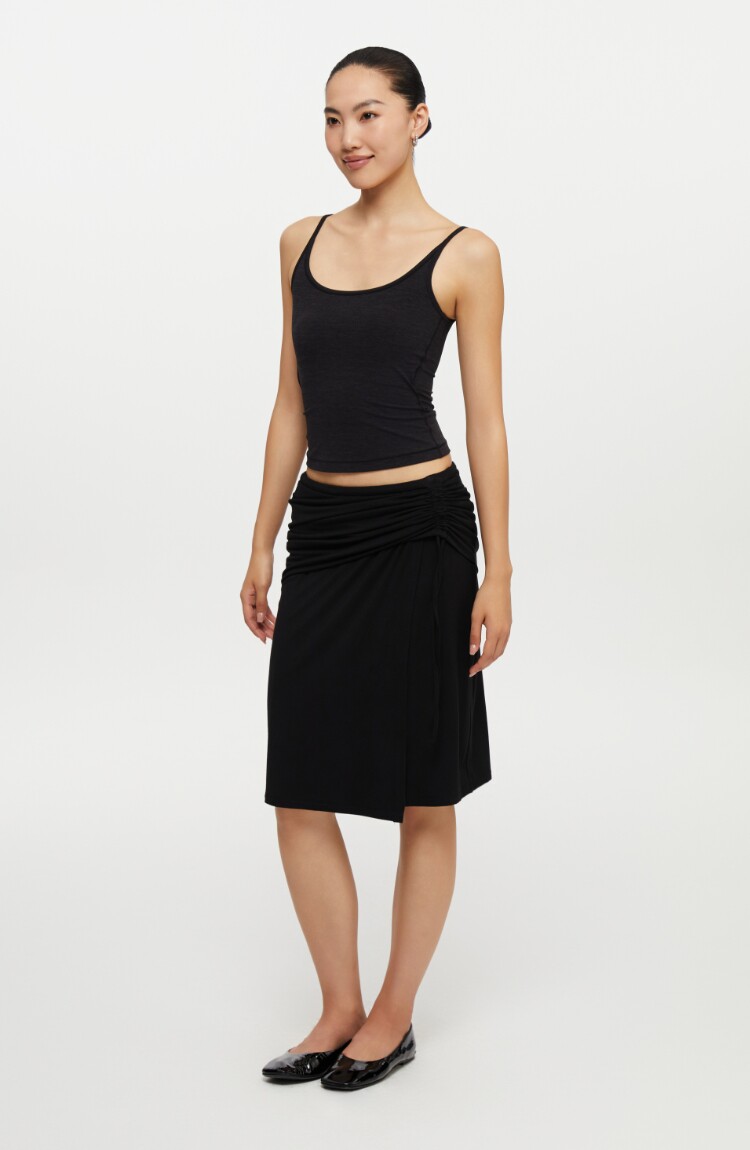 oneup垂感黑色半身裙女秋季小個子抽繩半裙高級感小衆中長款裙子