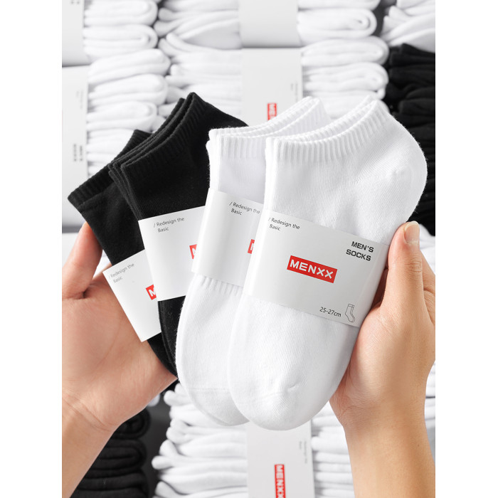 MENXX襪子男純棉船襪黑色秋冬運動防臭吸汗毛巾底白色男生短襪