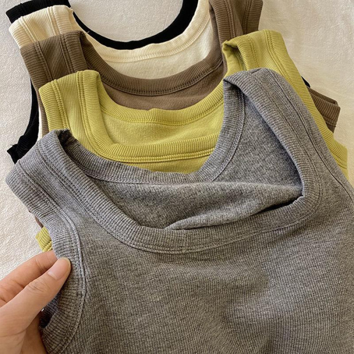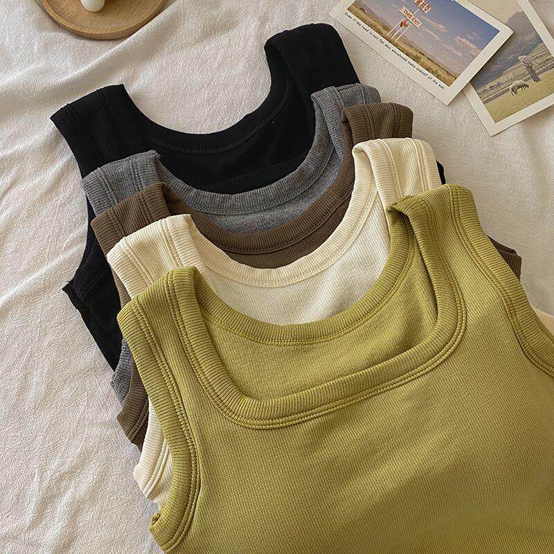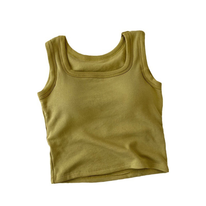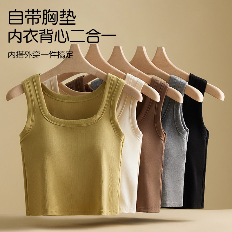 女瑜珈寬肩方領吊帶背心帶胸墊內衣文胸一體內搭外穿高彈運動上衣
